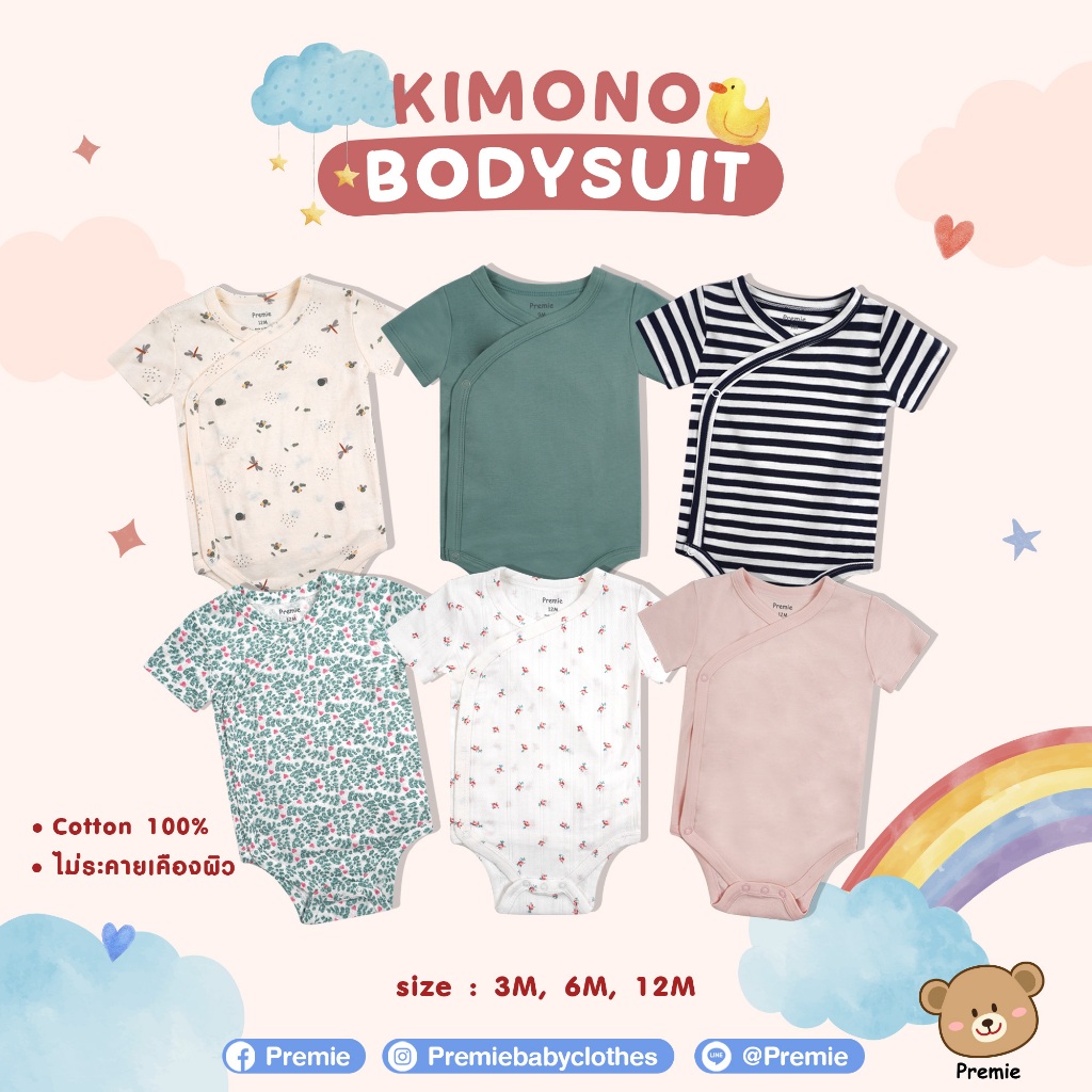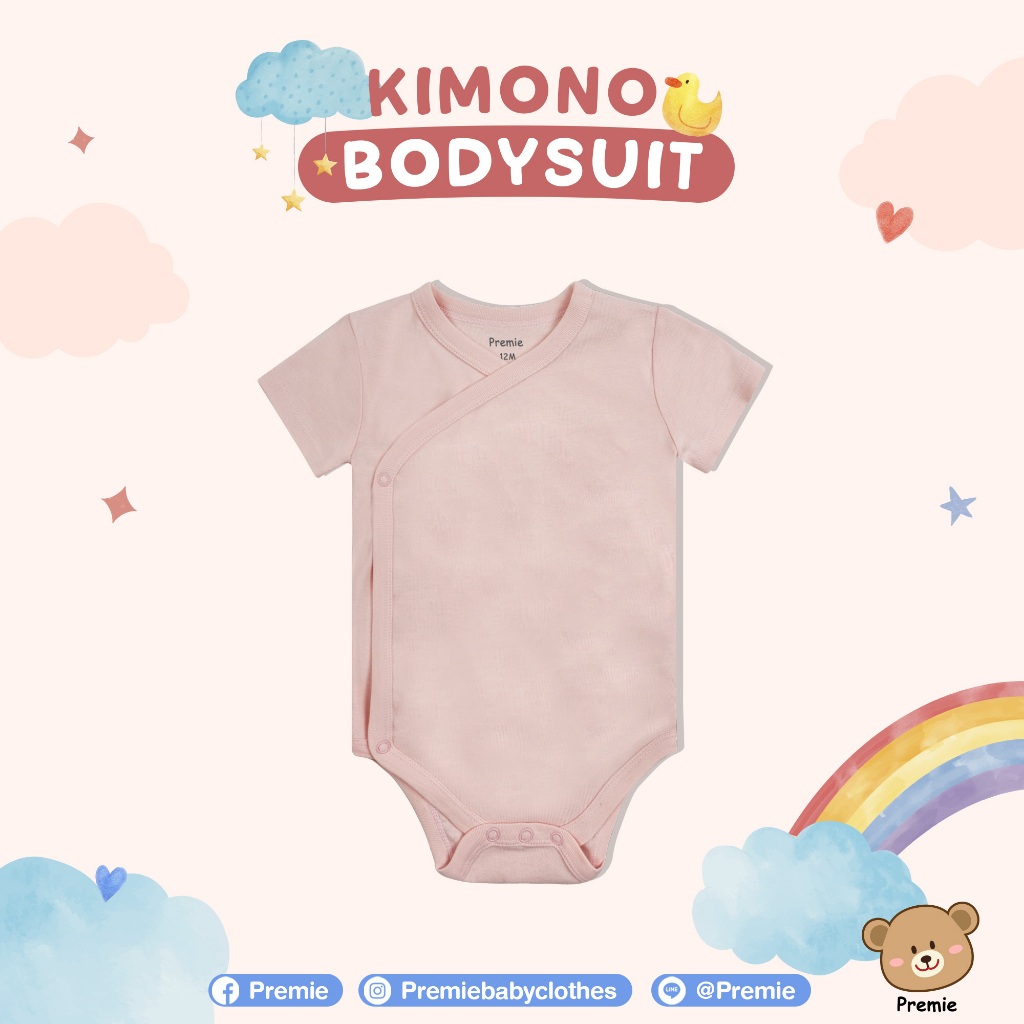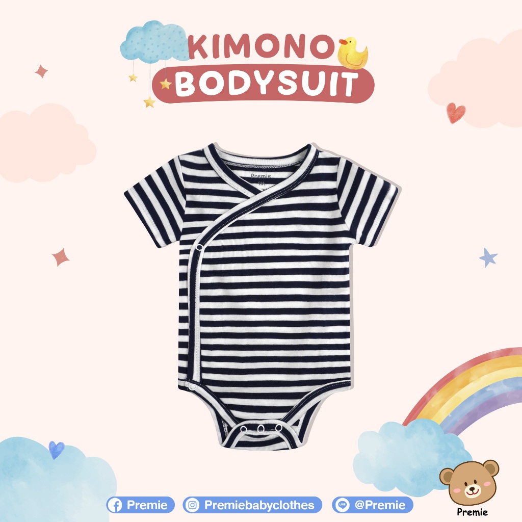 (Premie) Kimono Bodysuit บอดี้สูทแบบป้ายไขว้ สำหรับเด็กเล็ก ลวดลายน่ารัก สวมใส่สบาย