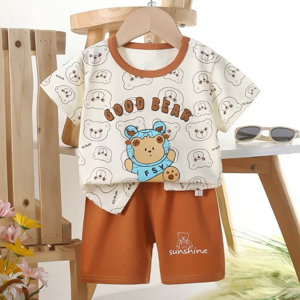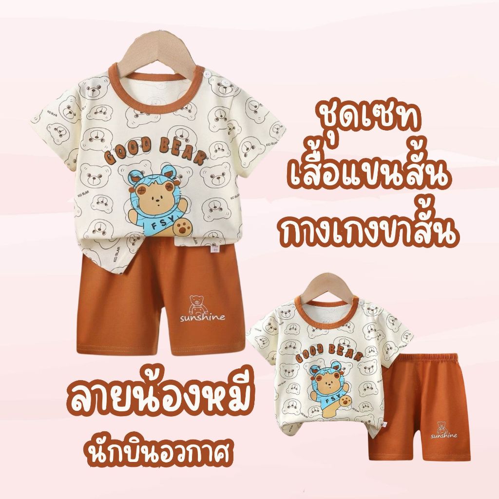 MooDeng_Baby ลายน้องหมี นักบินอวกาศ ชุดเซทเสื้อแขนสั้น+กางเกงขาสั้น เสื้อผ้าเด็กเด็ก ลายการ์ตูน น่ารักๆ cotton