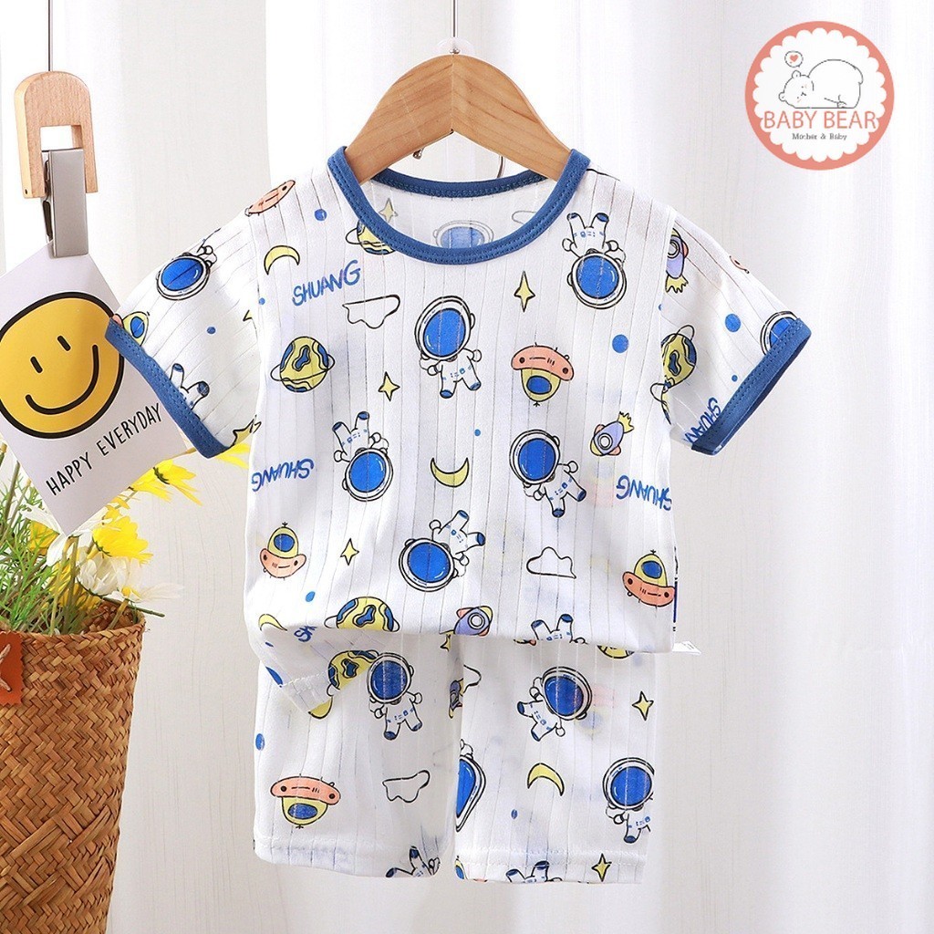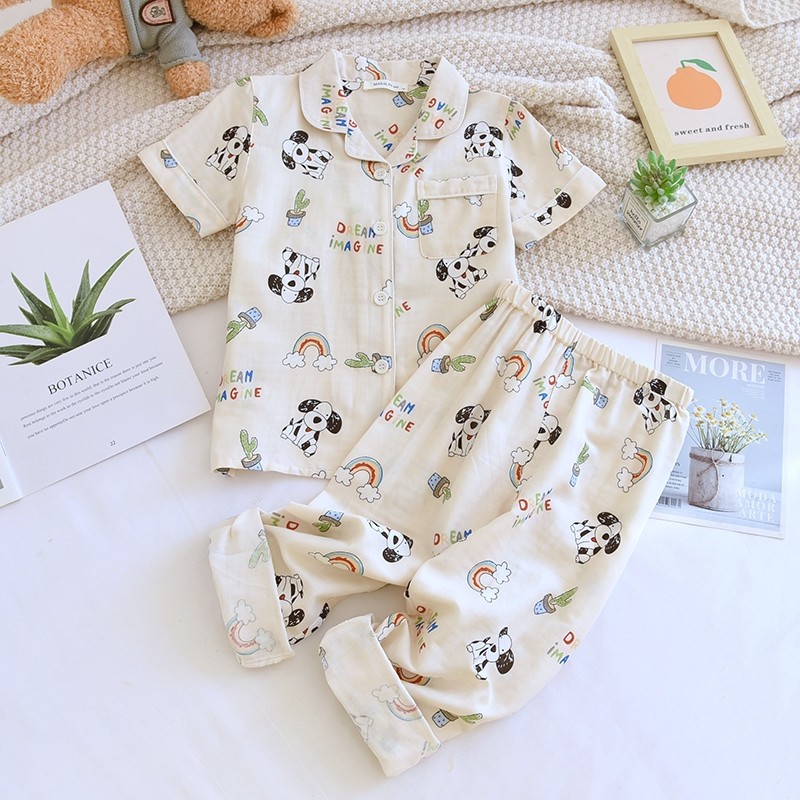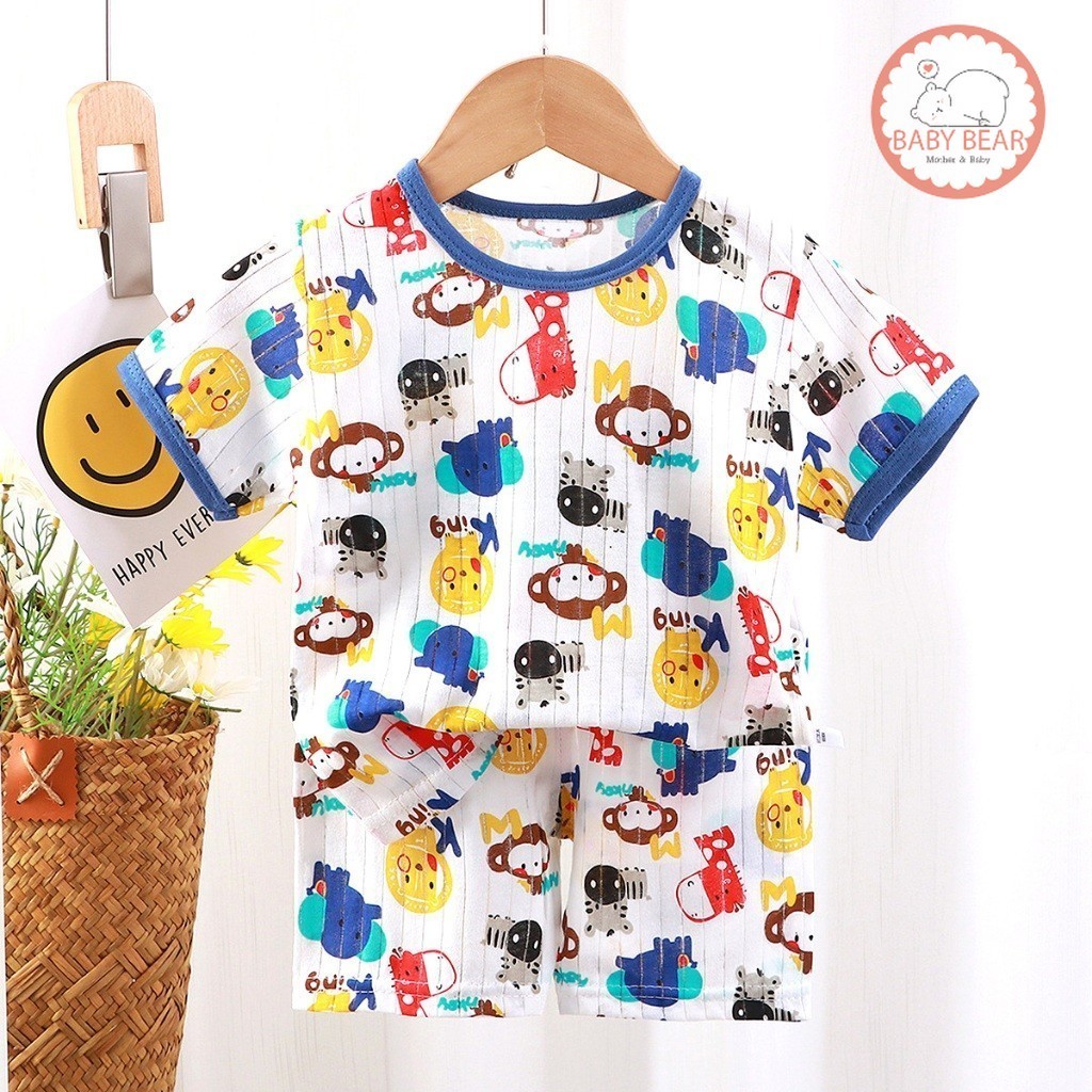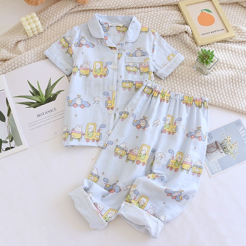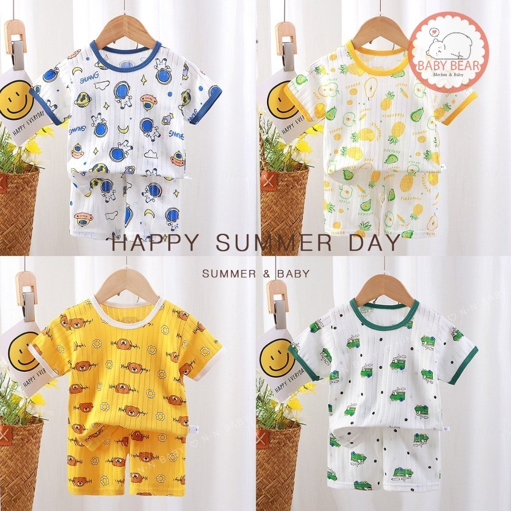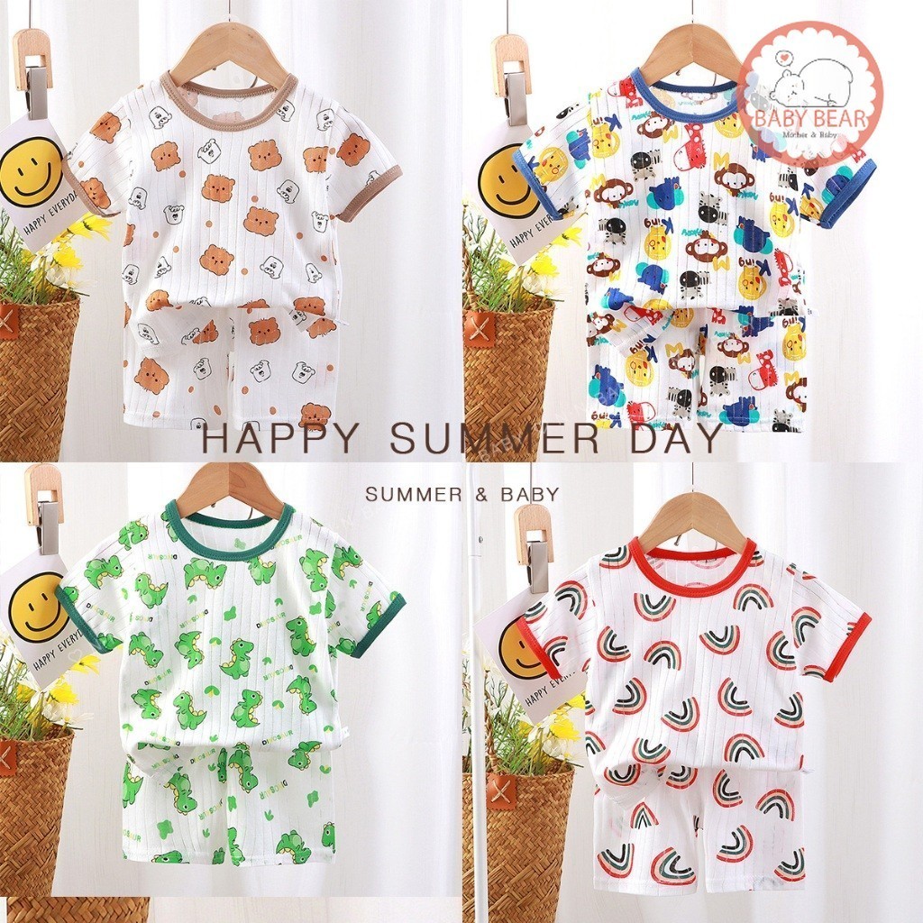 ชุดนอนเซท 2 ชิ้น ชุดนอนเด็กผ้าใยไผ่ เสื้อผ้าเด็ก เสื้อแขนสั้น+กางเกงขาสั้น Size80-110 cm