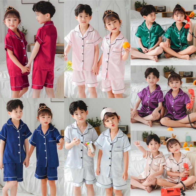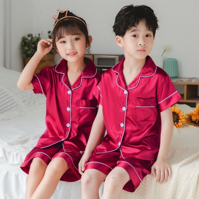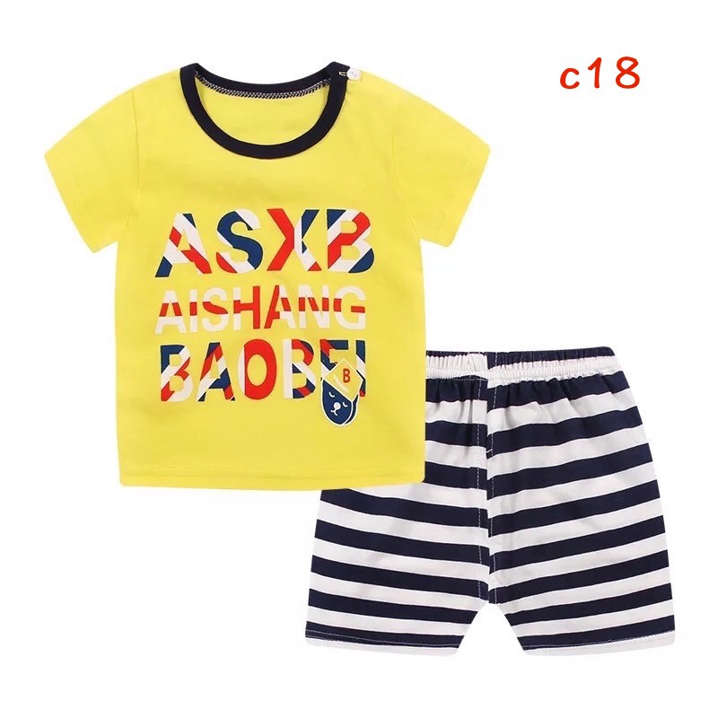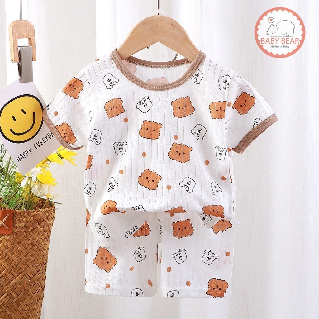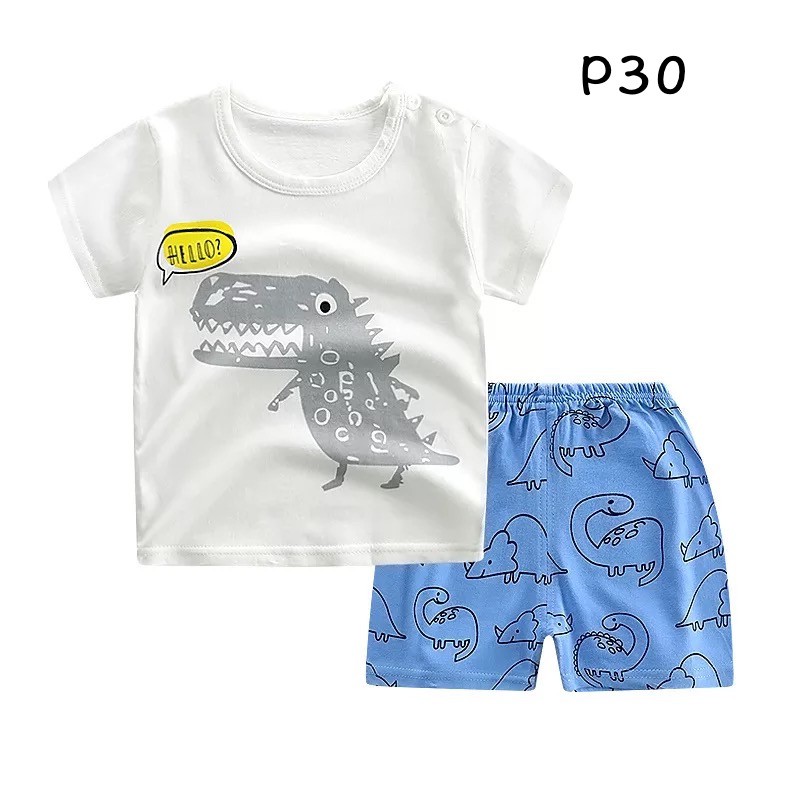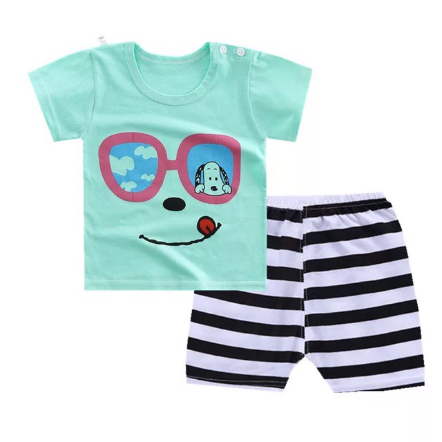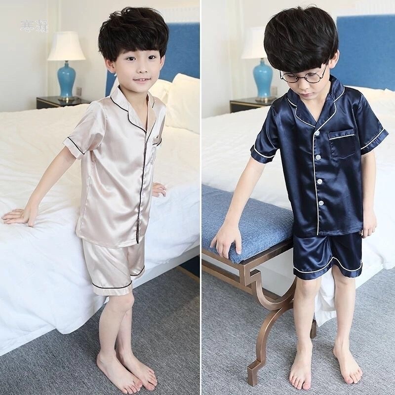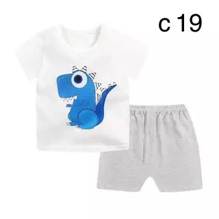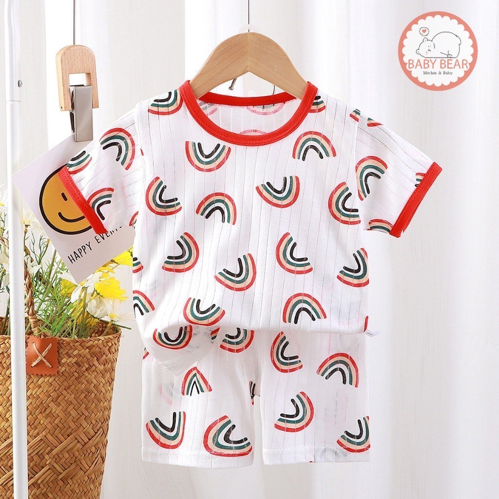 ชุดนอนเซท 2 ชิ้น ชุดนอนเด็กผ้าใยไผ่ เสื้อผ้าเด็ก เสื้อแขนสั้น+กางเกงขาสั้น Size80-110 cm