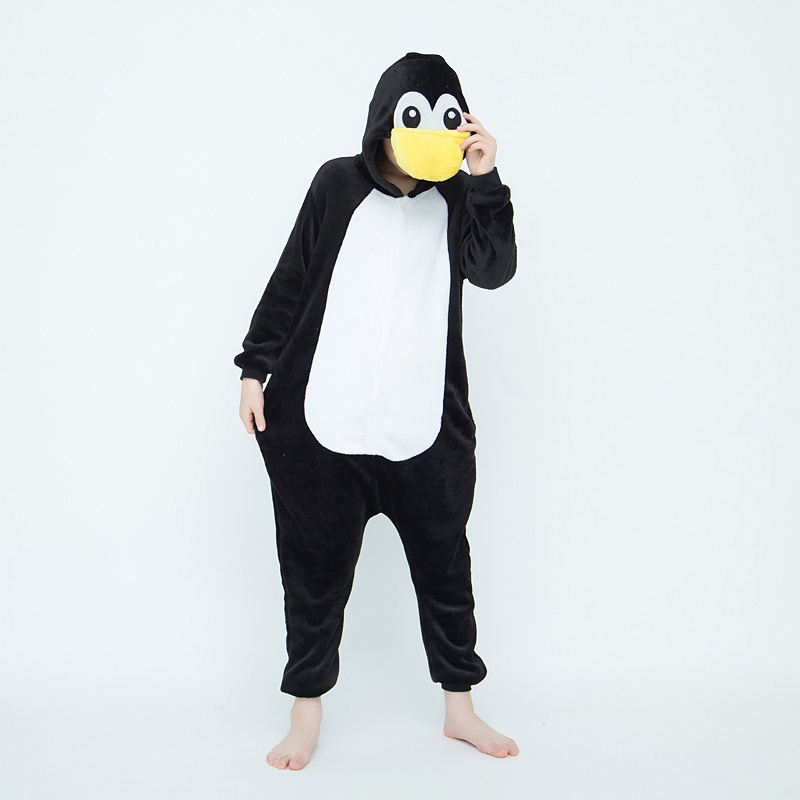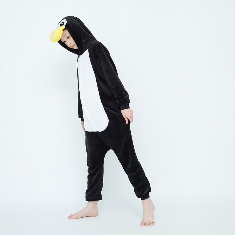 การ์ตูนเด็กสีดําเพนกวินสัตว์สักหลาดชุดนอนเด็กชุดนอนเด็กชุดนอนพรรคคอสเพลย์เครื่องแต่งกาย ชุด