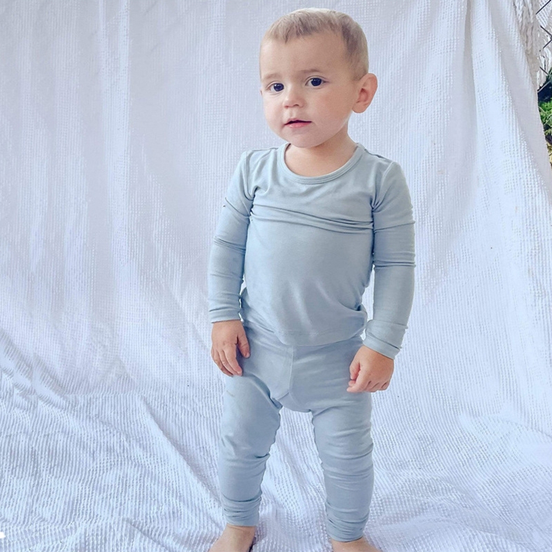 ชุดนอน เสื้อแขนยาว และกางเกง เส้นใยไม้ไผ่ สีพื้น แฟชั่นฤดูใบไม้ผลิ สําหรับเด็กผู้ชาย และเด็กผู้หญิง