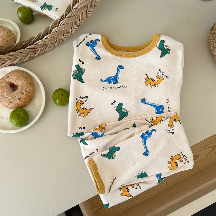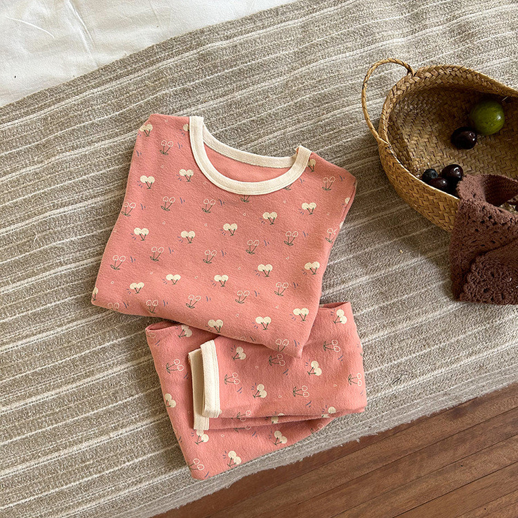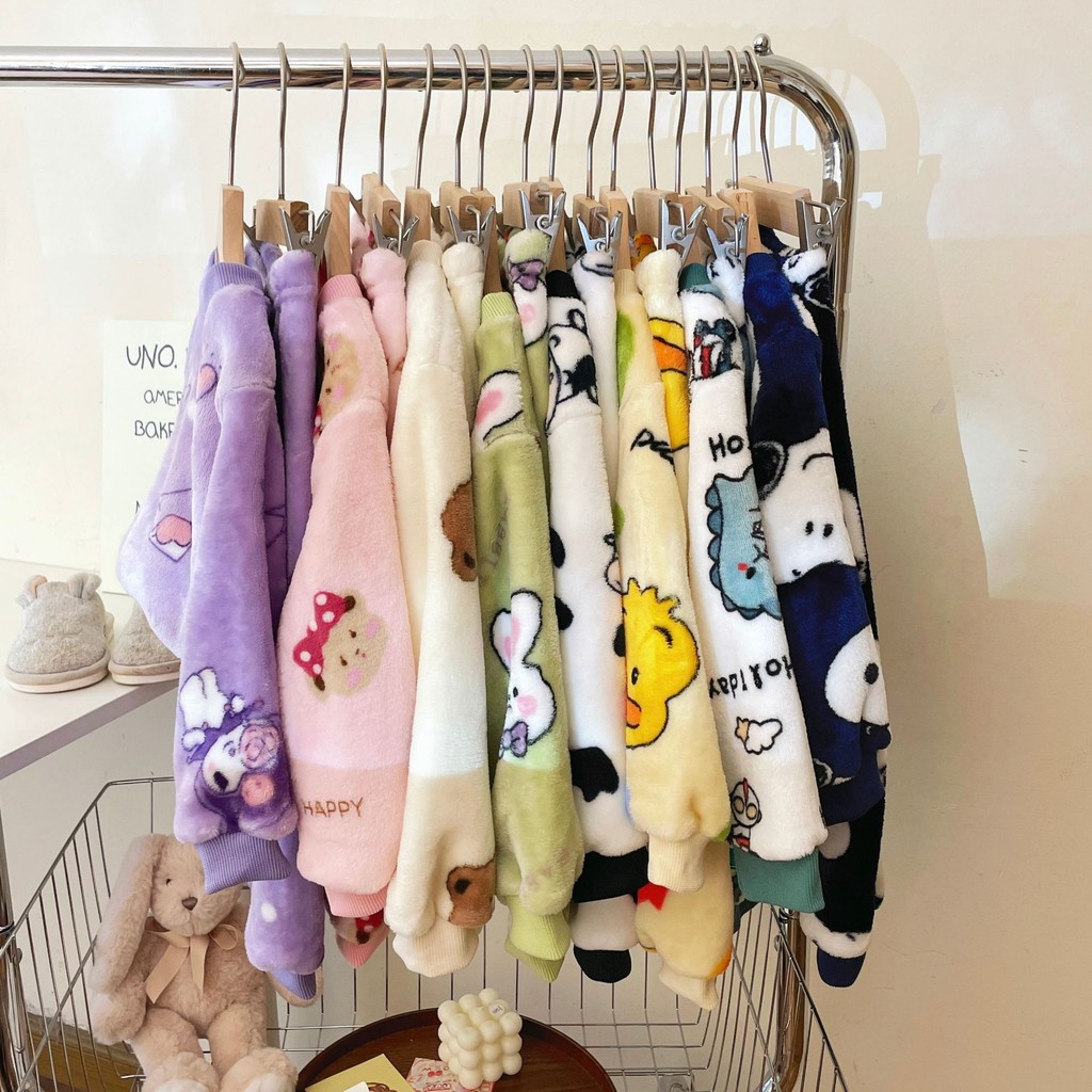 ชุดนอนผ้าสักหลาดใหม่เด็กขนแกะปะการังเด็กชายและเด็กหญิงชุดนอนเด็กการ์ตูนคอกลมชุดใส่ในบ้านเพิ่มความหนา