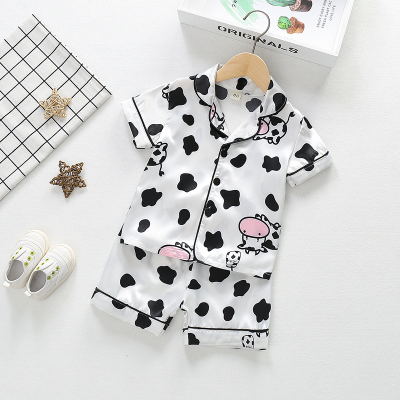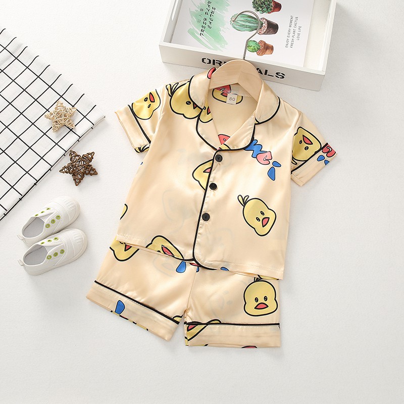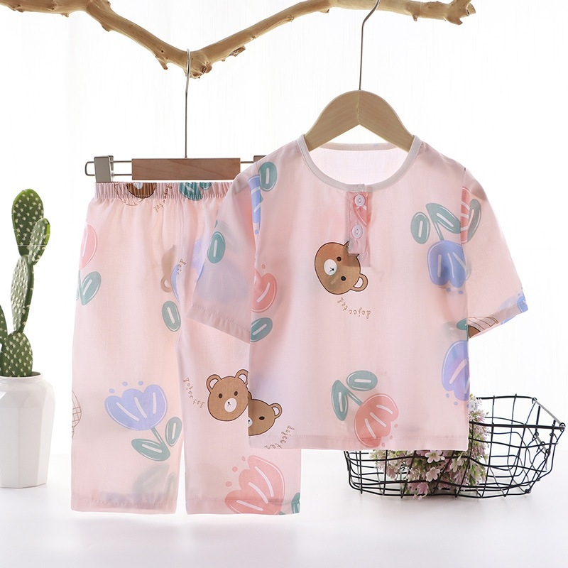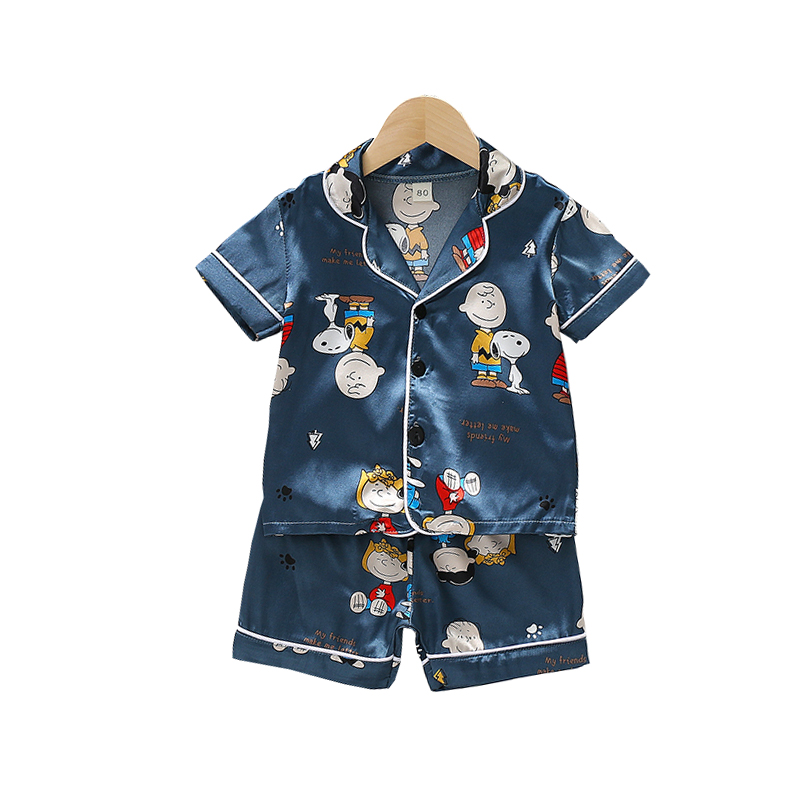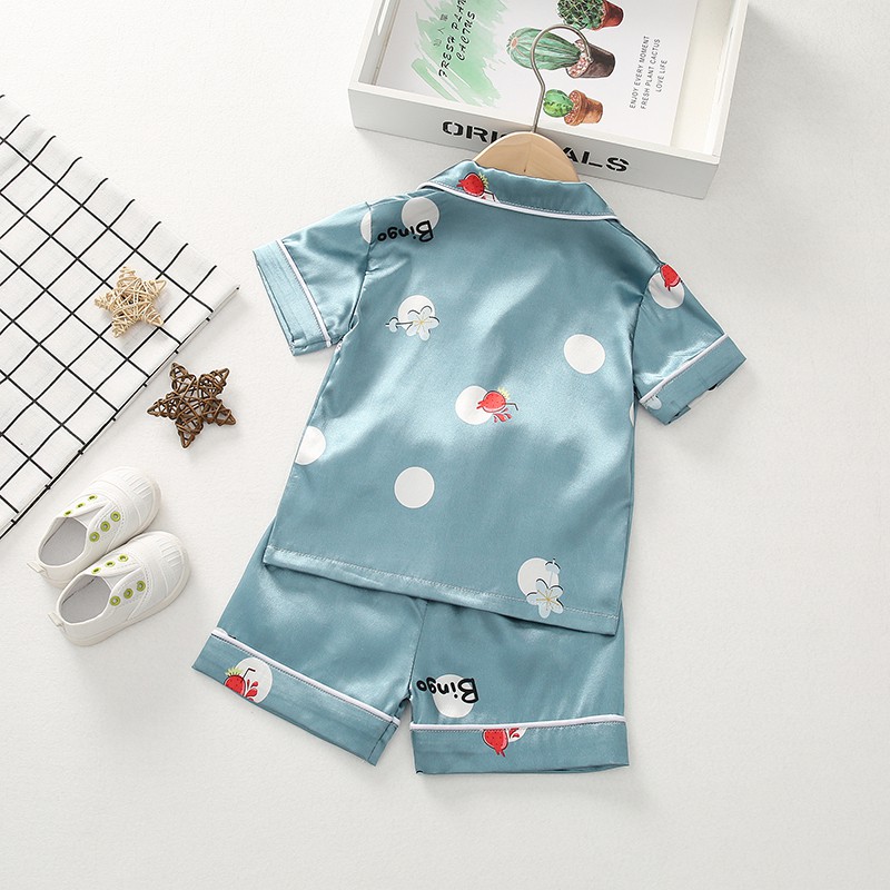 ชุดนอนเด็กผู้ชาย/เด็กผู้หญิงฤดูร้อนซาตินหมีชุดนอนบ้านแขนสั้นชุดผ้าไหมน้ําแข็งบาง