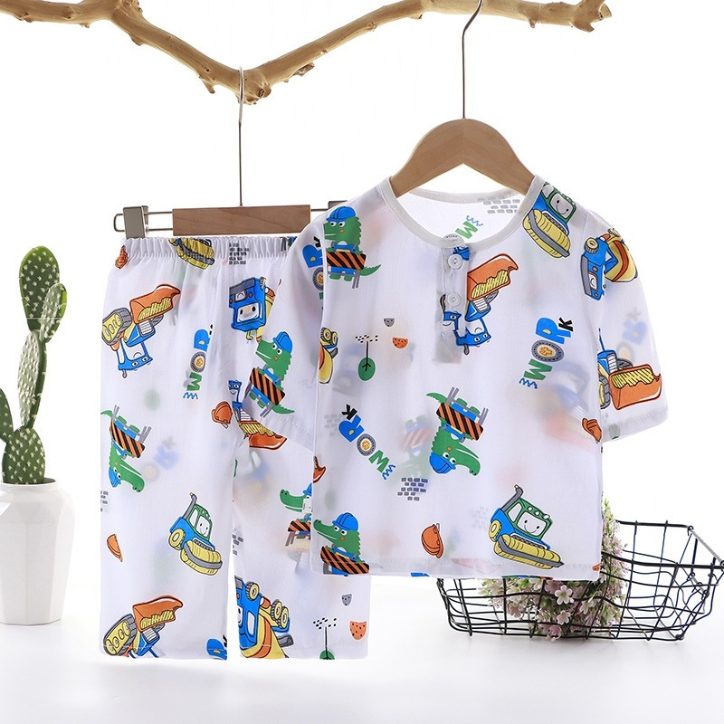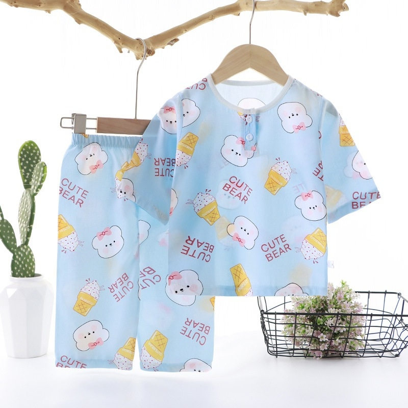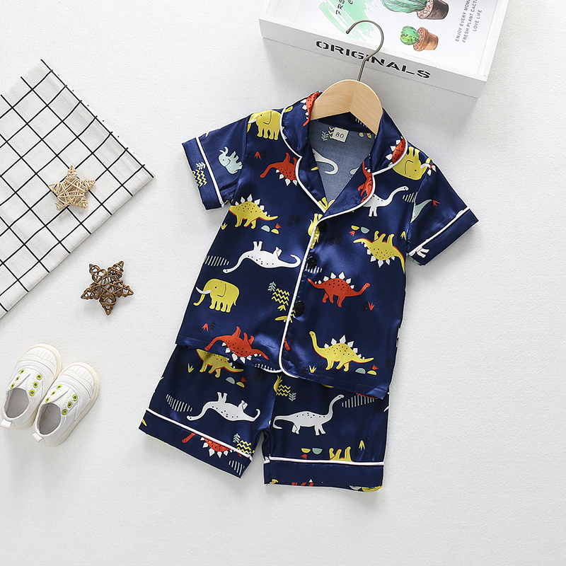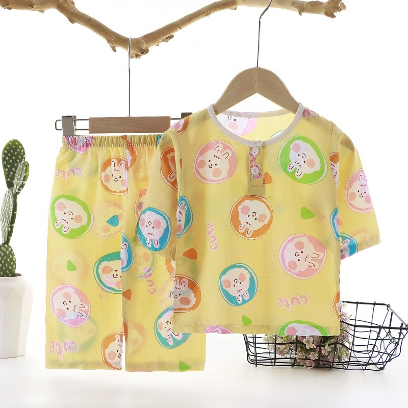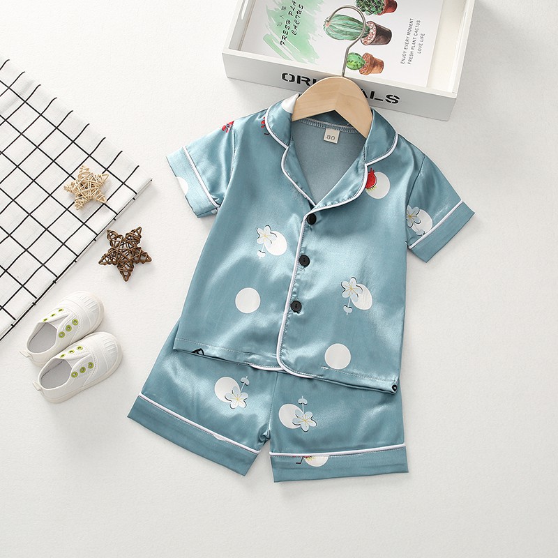 ชุดนอนเด็กผู้ชาย/เด็กผู้หญิงฤดูร้อนซาตินหมีชุดนอนบ้านแขนสั้นชุดผ้าไหมน้ําแข็งบาง