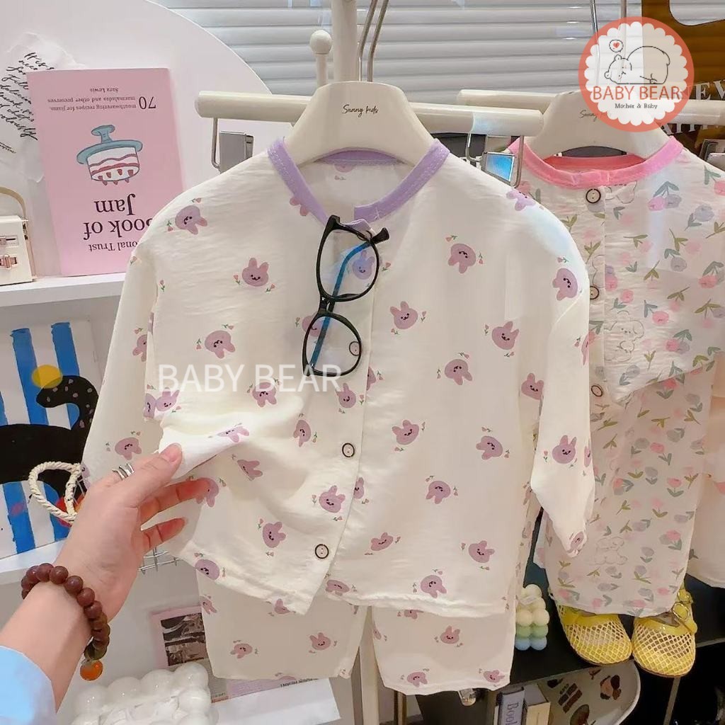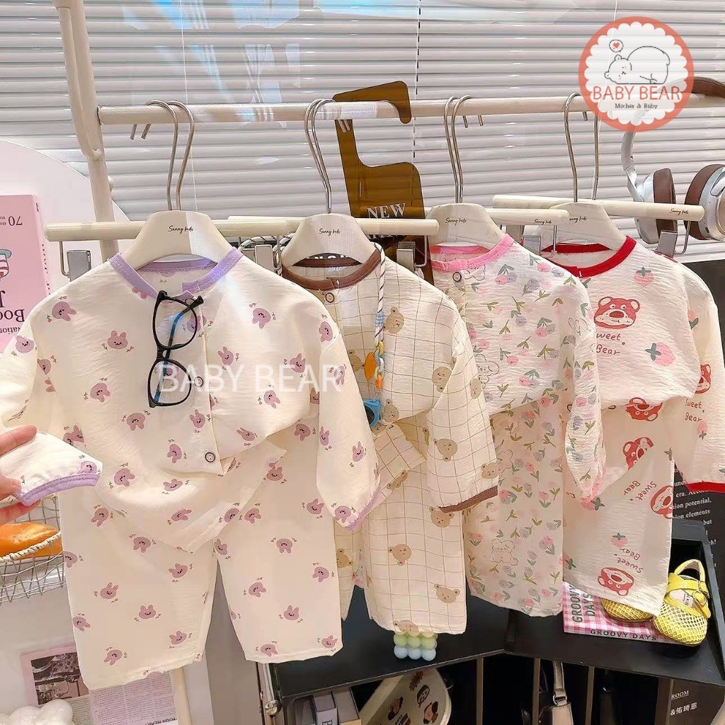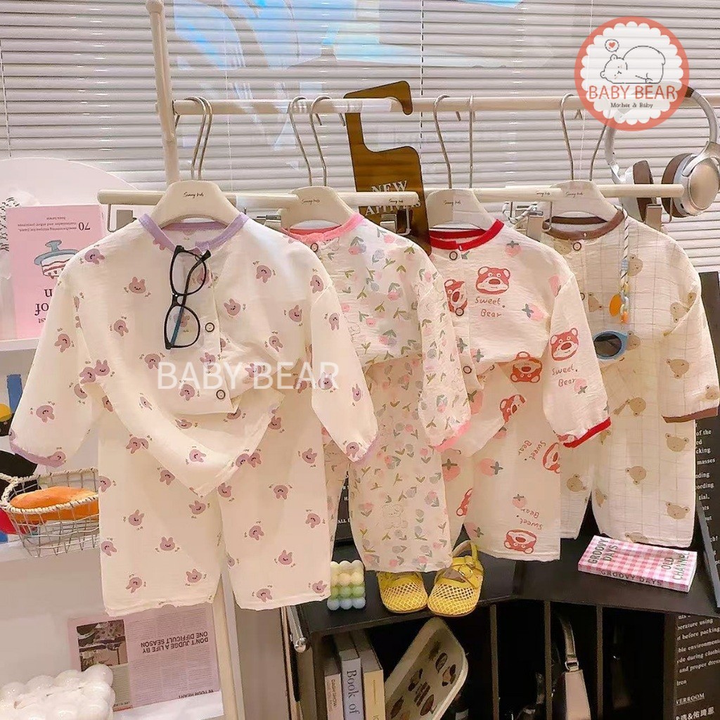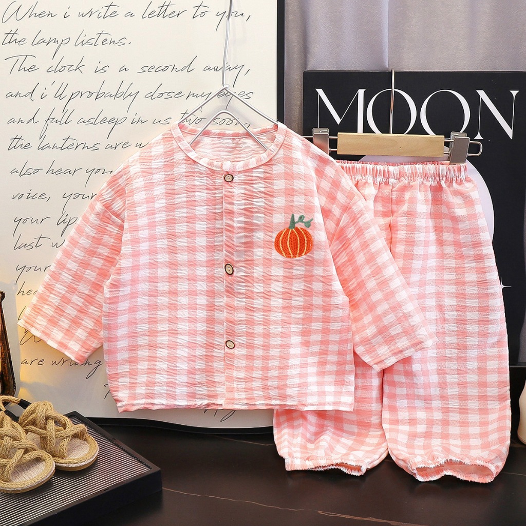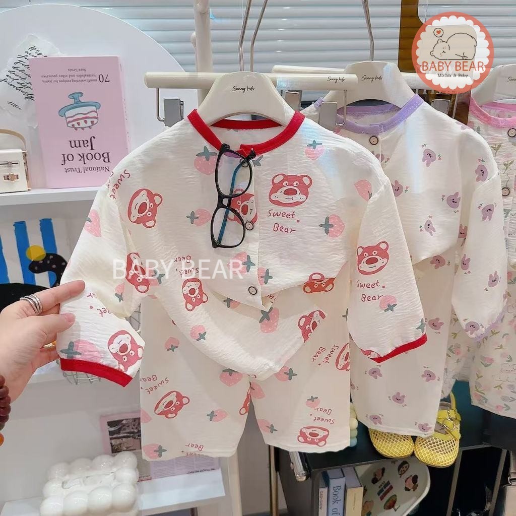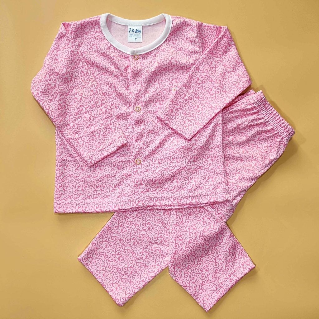 ชุดนอนเด็ก เสื้อแขนยาวกางเกงขายาว ชุดลำลองเด็ก กระดุมหน้า ผ้าบางเบา ใส่สบาย Size 80-120 cm