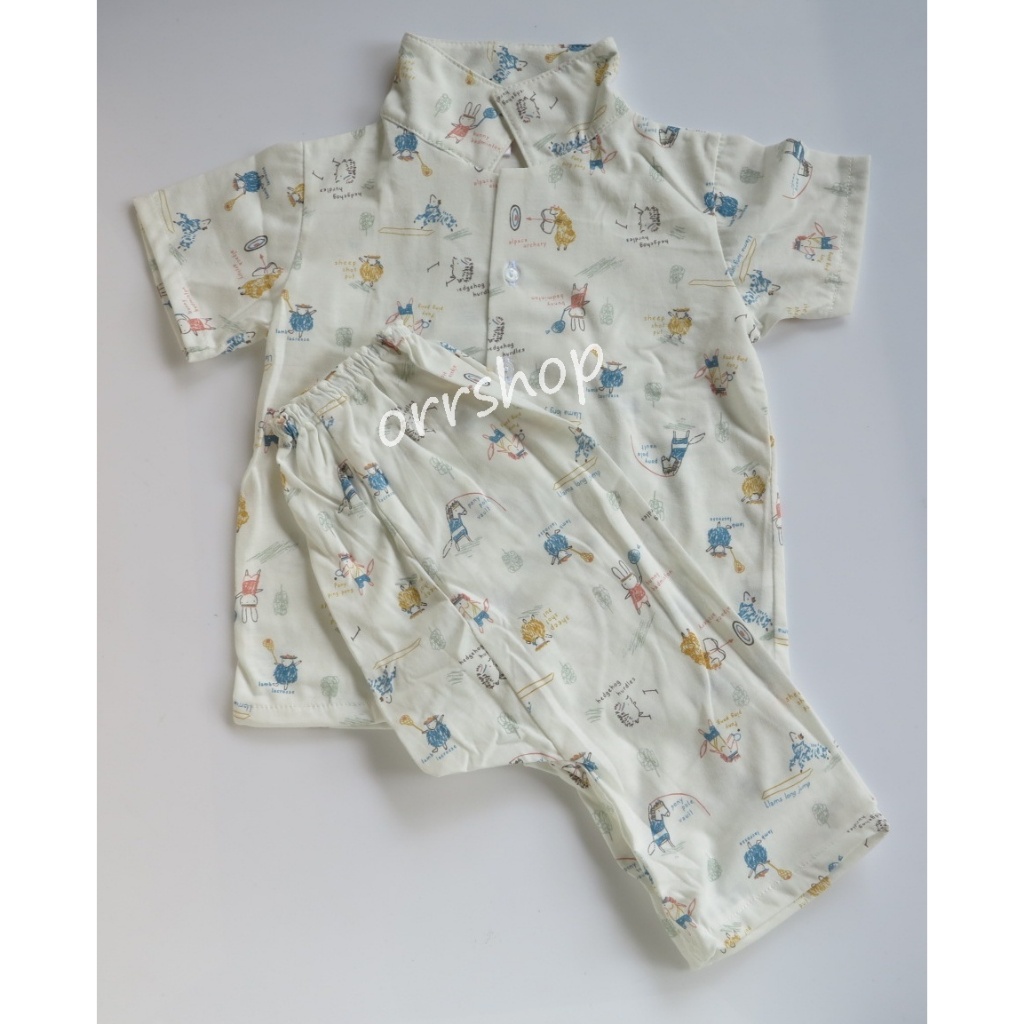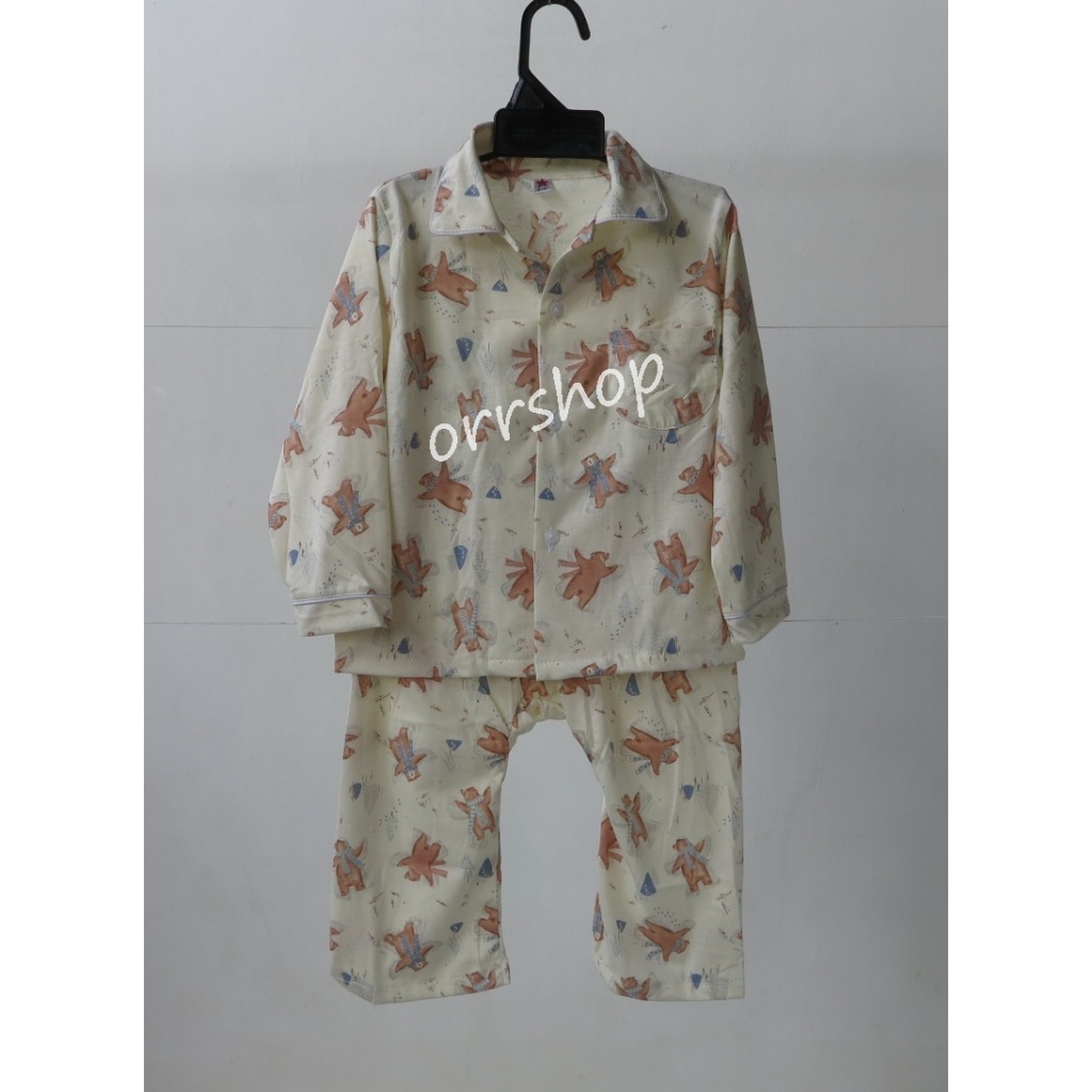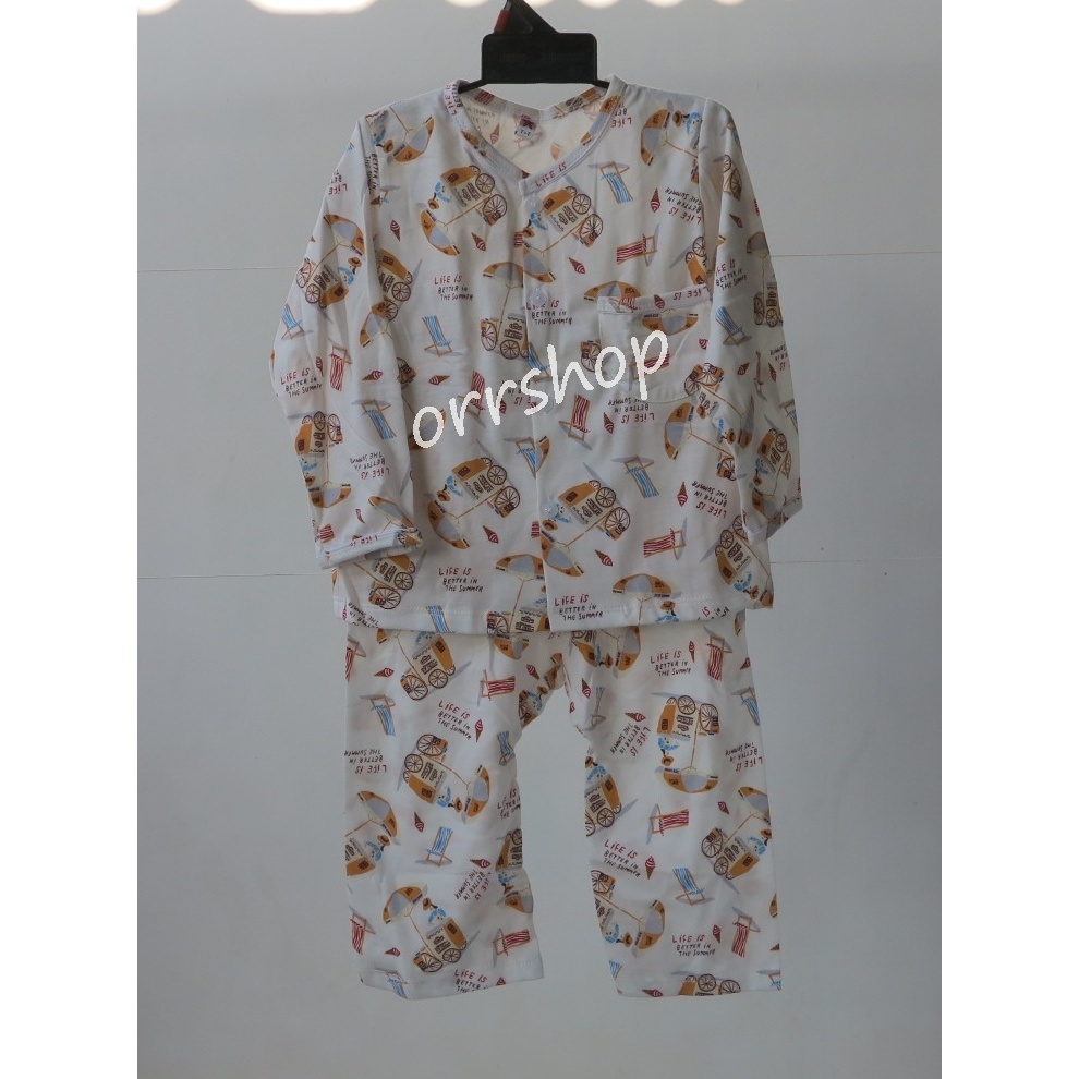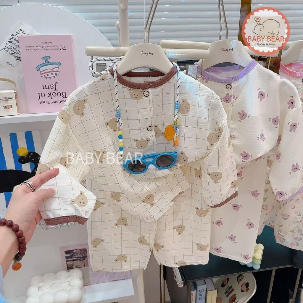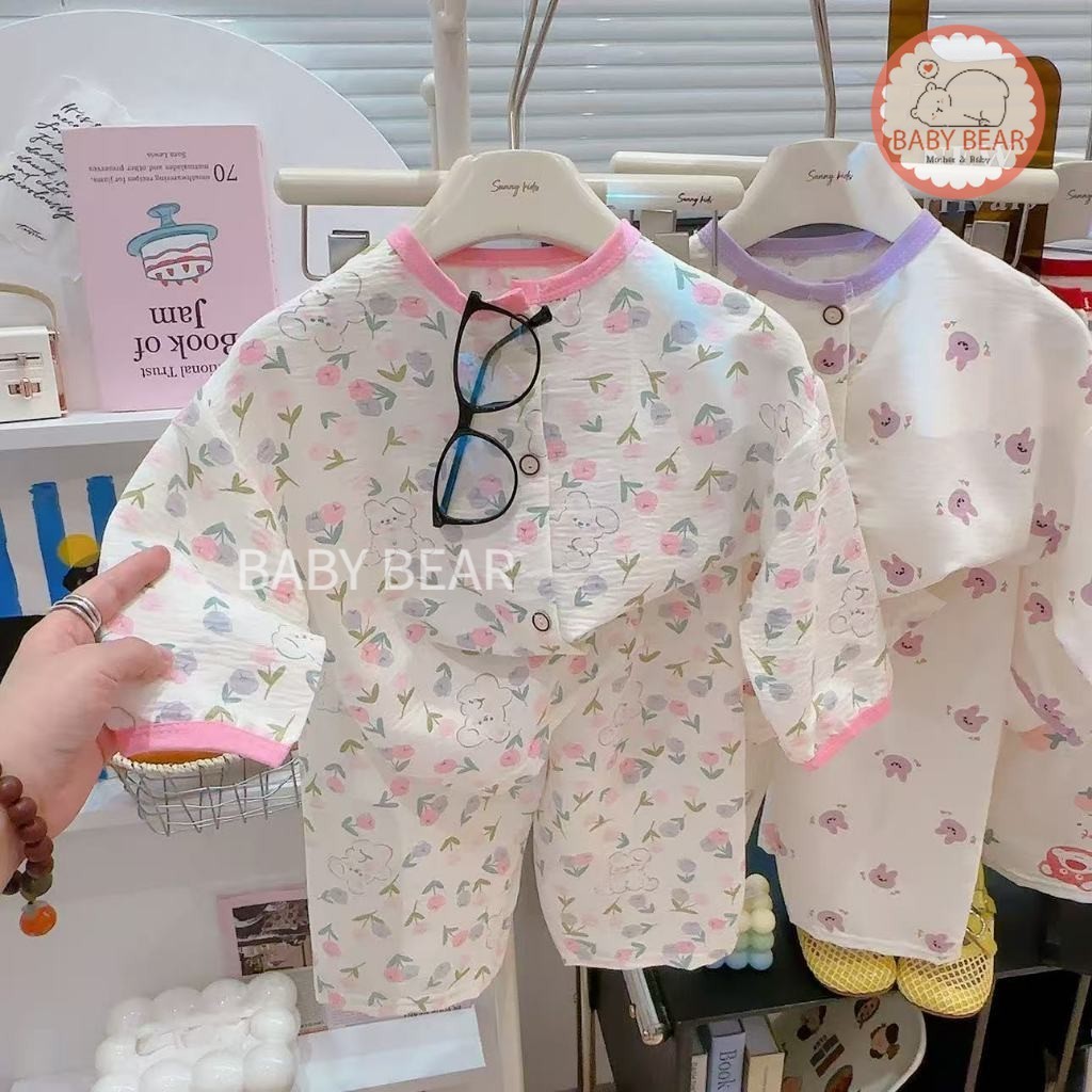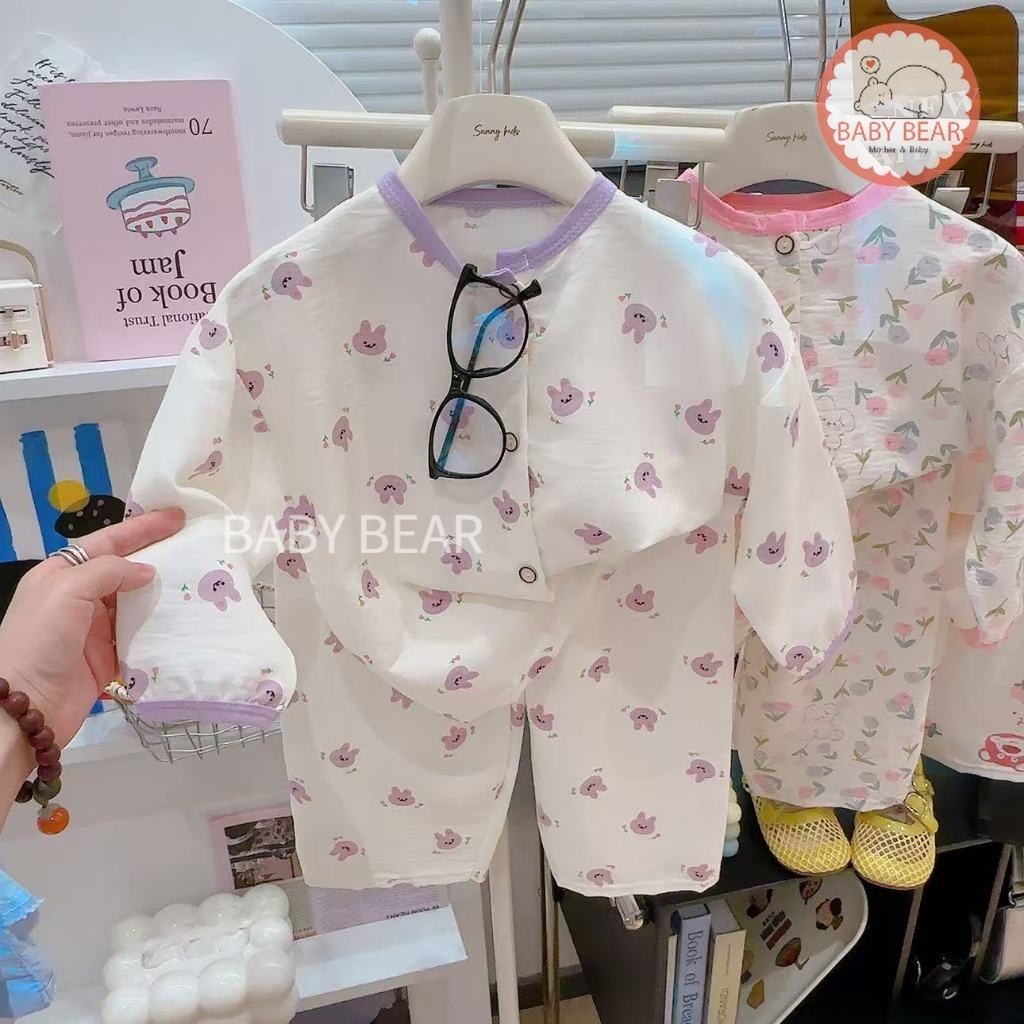 ชุดนอนเด็ก เสื้อแขนยาวกางเกงขายาว ชุดลำลองเด็ก กระดุมหน้า ผ้าบางเบา ใส่สบาย Size 80-120 cm