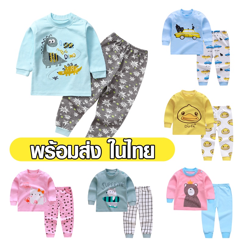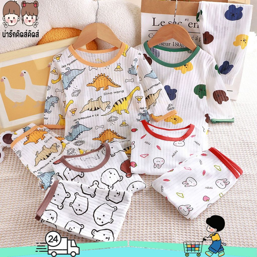 ชุดเด็กผ้าร่อง ชุดนอนเด็กผ้าเด้ง ชุดแขนยาวขายาวเด็ก ชุดนอนเด็ก พร้อมส่งจากไทย ไซส์80-150