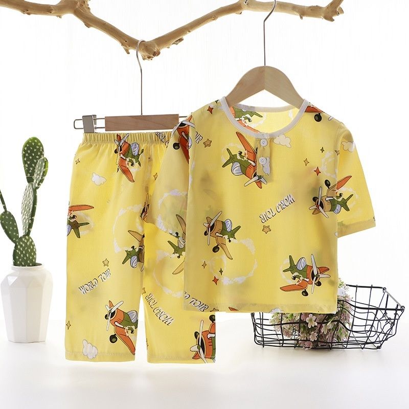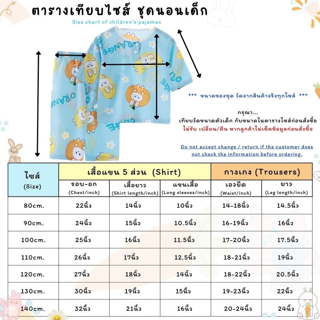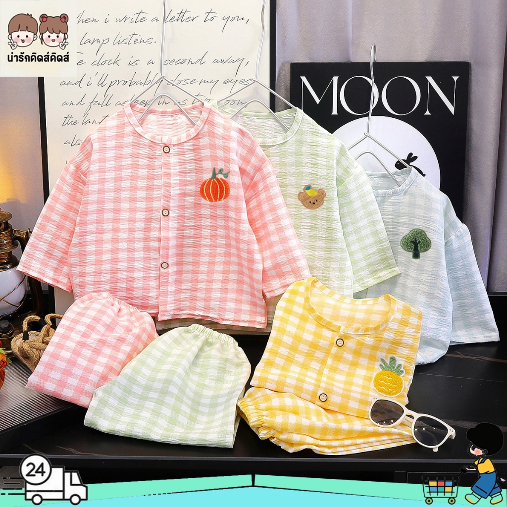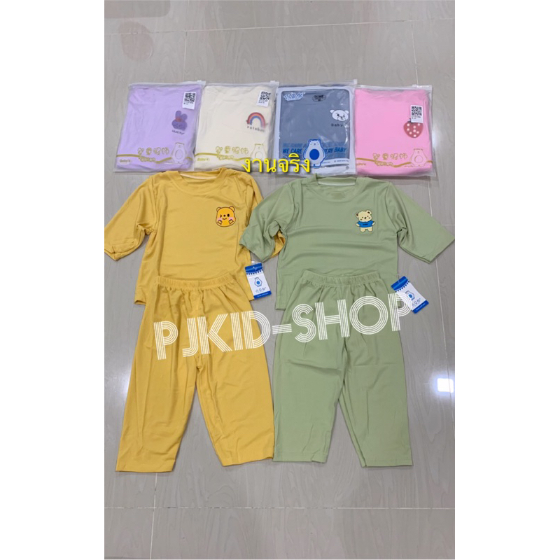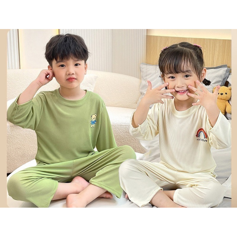 ชุดนอนเด็ก ชุดเซ็ทเด็ก เสื้อ 7ส่วน+กางเกงขายาว ผ้าใยไผ่ นิ่มๆใส่สบาย เสื้อผ้าเด็ก #T13141