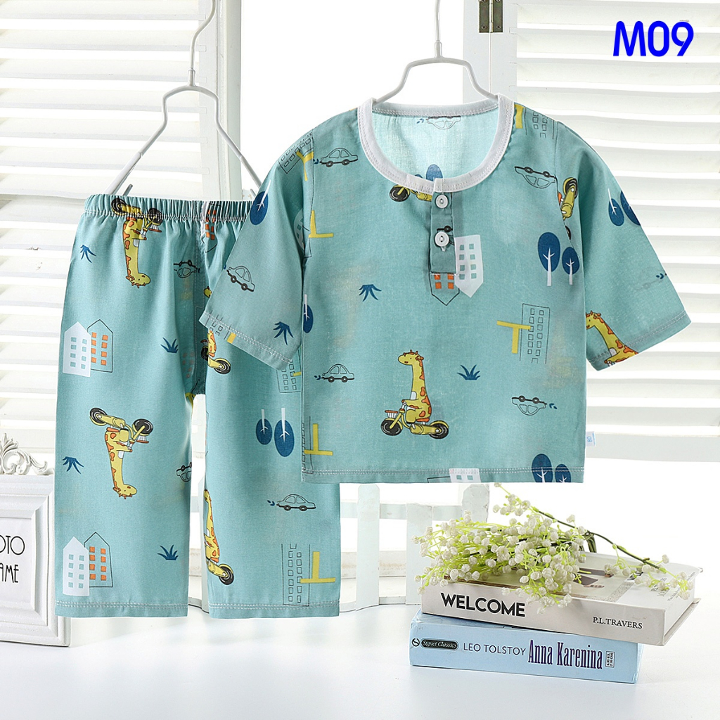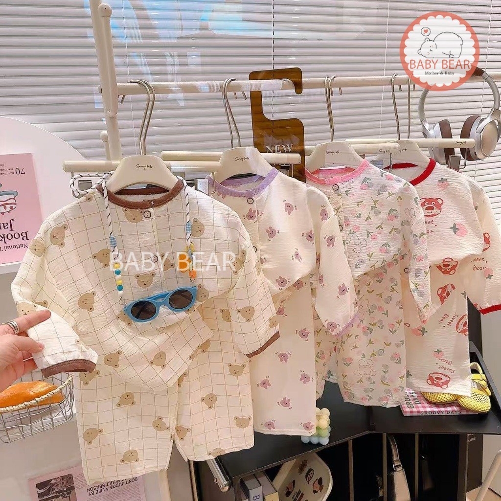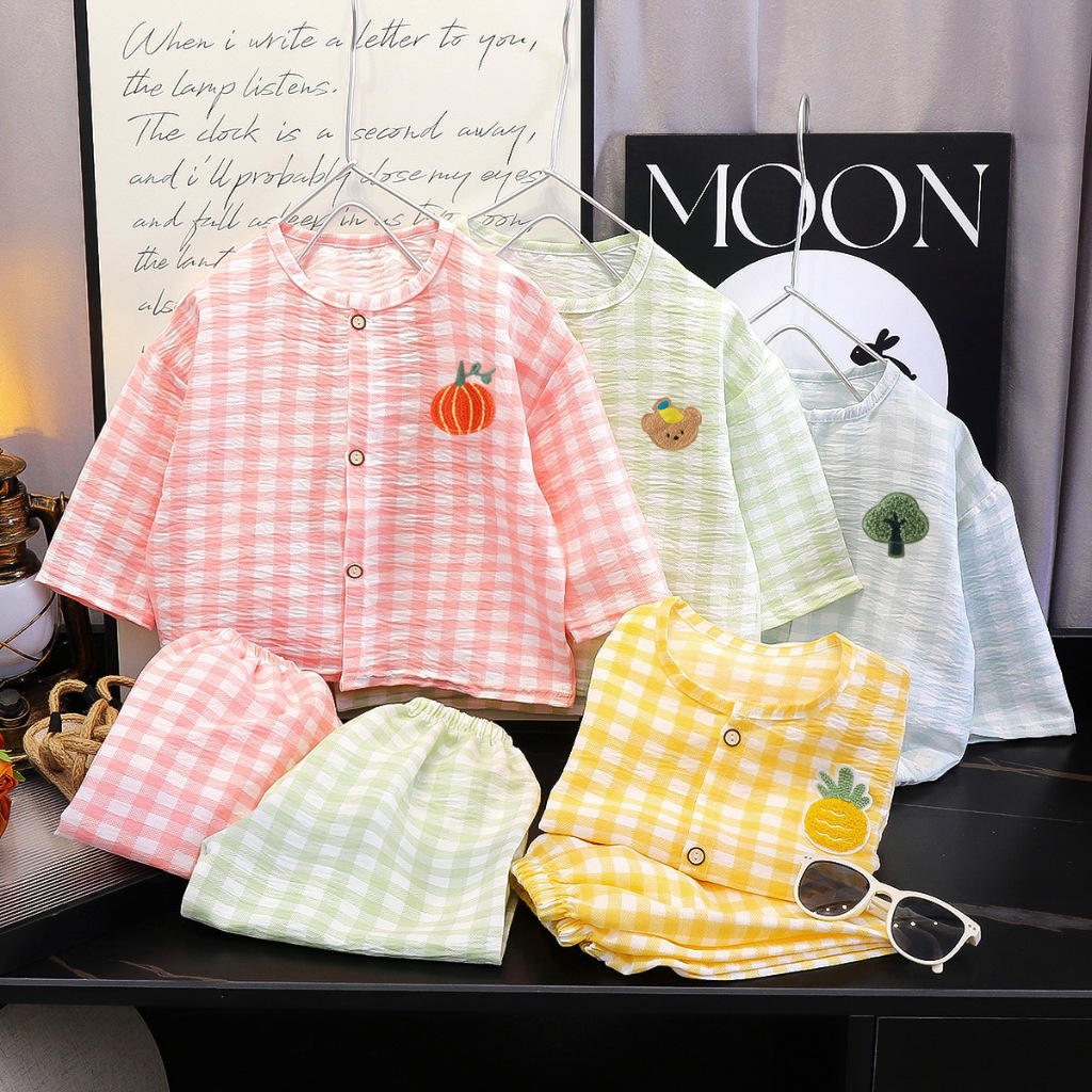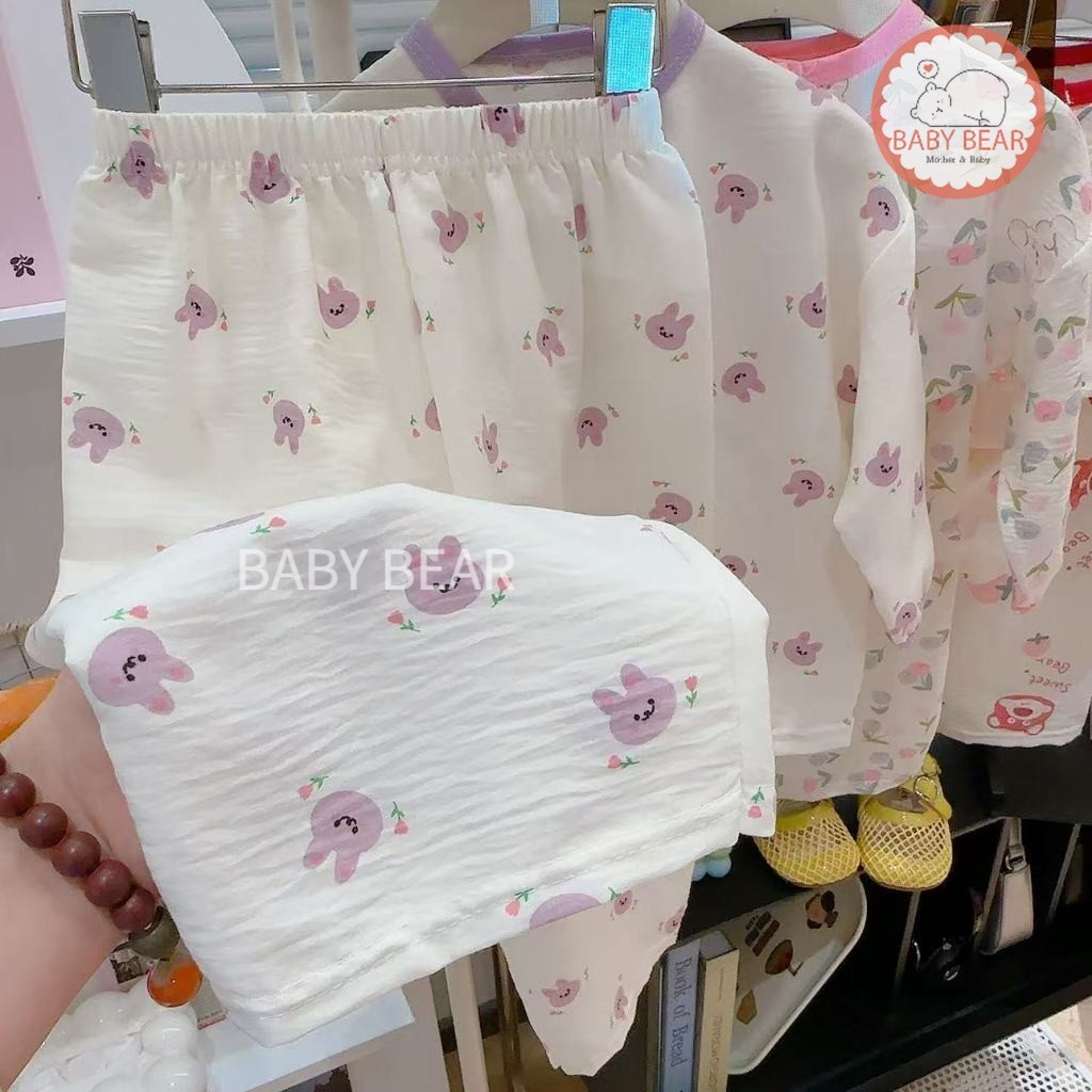 ชุดนอนเด็ก ชุดเซ็ทเด็ก เสื้อ 7ส่วน+กางเกงขายาว ผ้าใยไผ่ นิ่มๆใส่สบาย เสื้อผ้าเด็ก #T13141