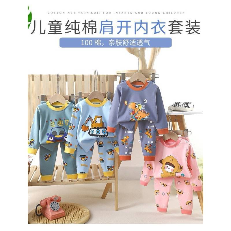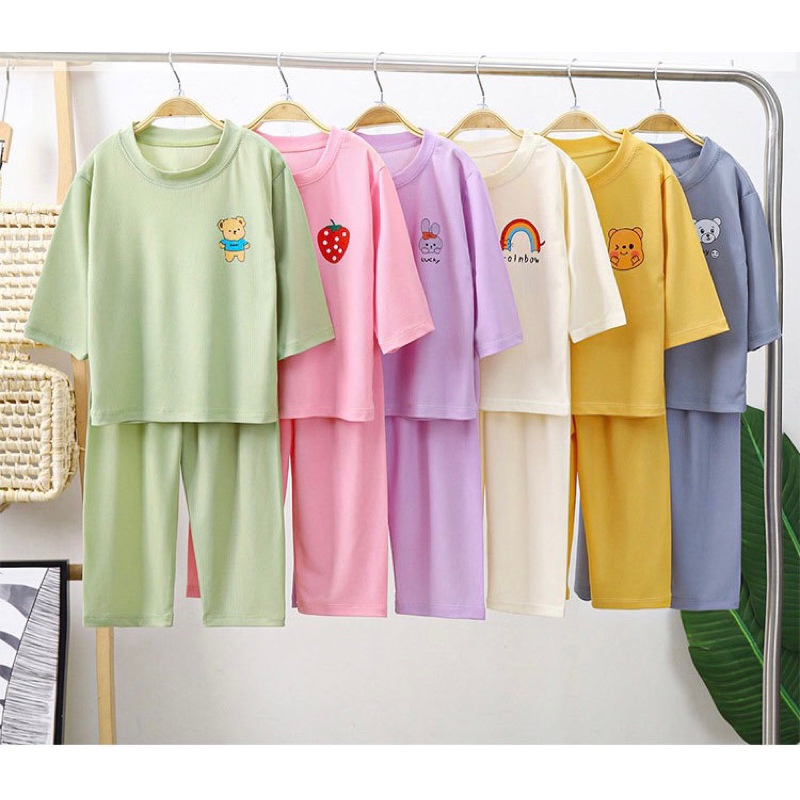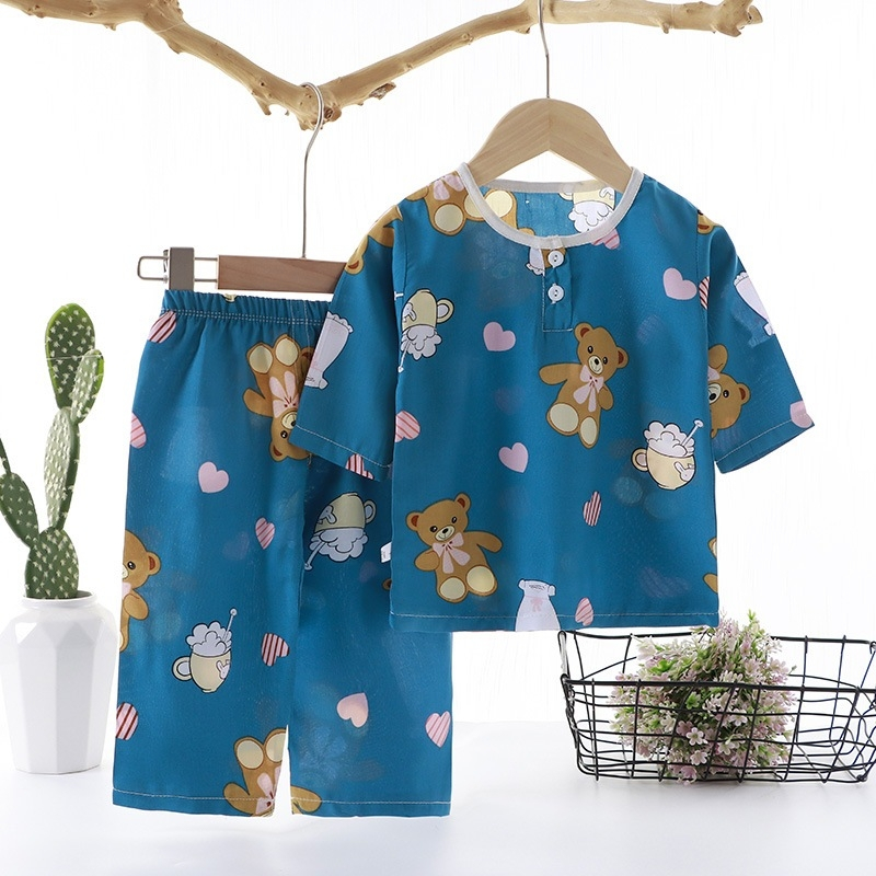 ชุดนอนเด็กเซ็ต 2ชิ้น เสื้อแขน5ส่วน+กางเกงขายาว ผ้าพิมพ์ลายการ์ตูนน่ารัก ผ้าฝ้าย ใส่สบาย (พร้อมส่ง)