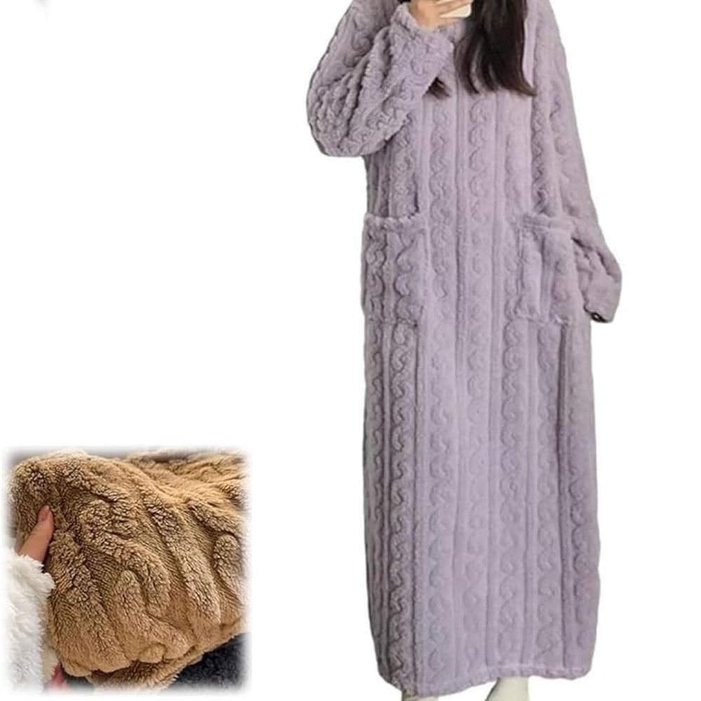 ชุดราตรีกํามะหยี่ปะการังพิมพ์ลายตุ๊กตา สวมใส่ง่ายสำหรับงานเลี้ยงหรือนอน ในเนื้อผ้านุ่มสบาย