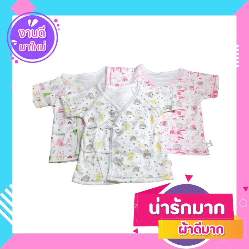 PA211/1 เสื้อเด็ก Little home baby ผ้าคอตตอนนิ่ม แบบผูกหน้า 0-3 เดือน