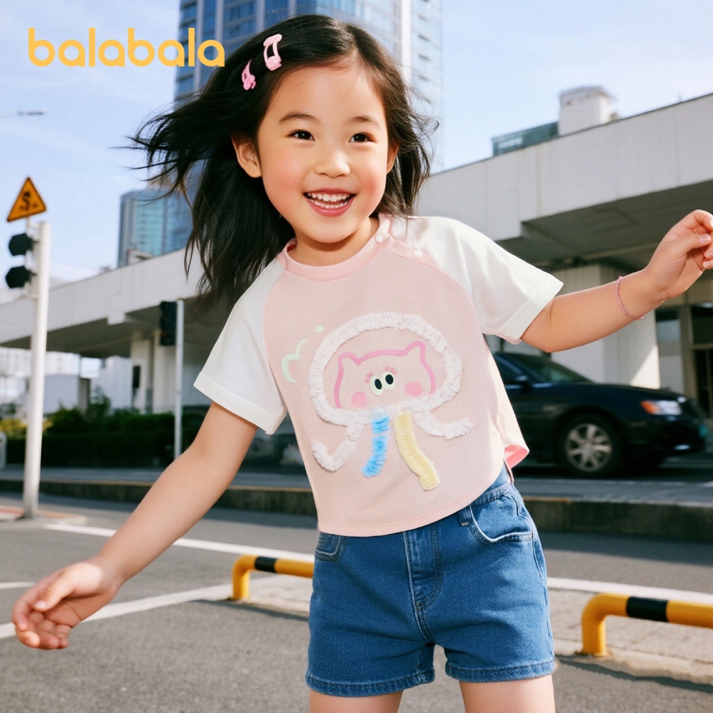 บาลาบาลา ทารกเสื้อยืดเด็กด้านบนสาวเสื้อผ้าเด็กแขนสั้น 2025 ฤดูร้อนใหม่อินเทรนด์เสื้อยืดน่ารัก