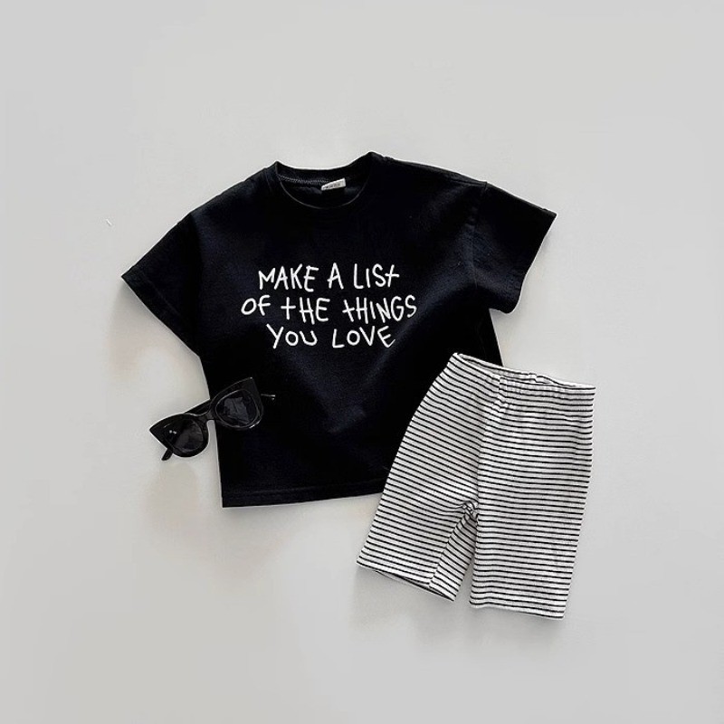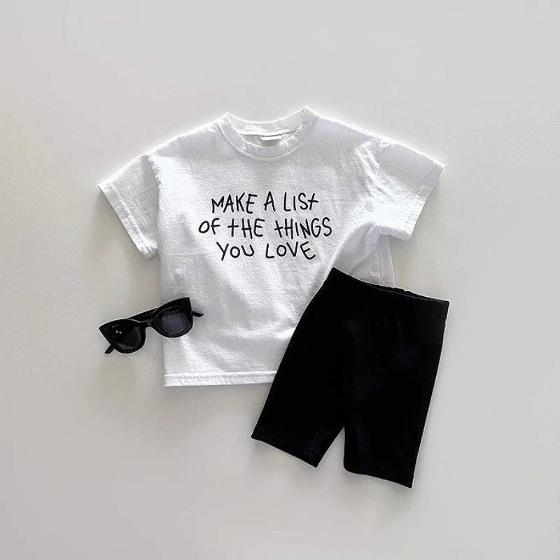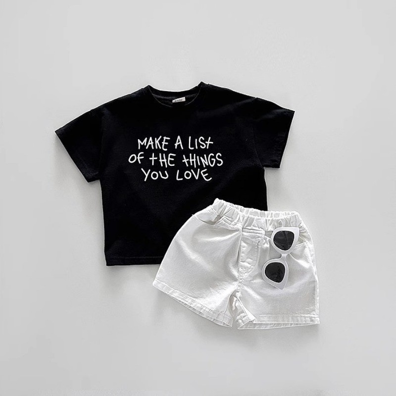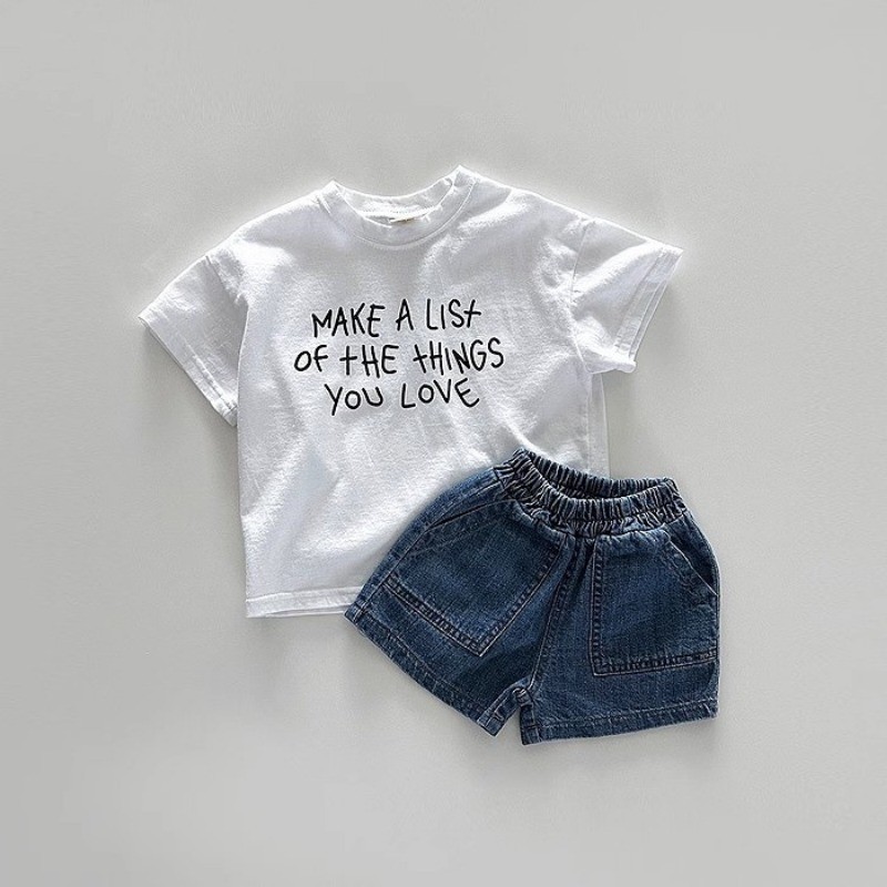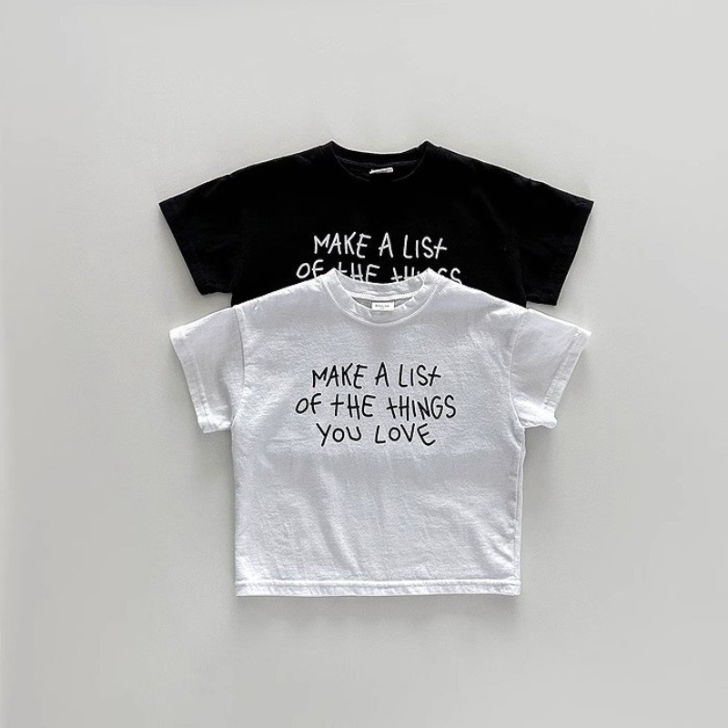 ฤดูร้อนเด็กชายและเด็กหญิงทารกจดหมายพิมพ์ที่เรียบง่ายผ้าฝ้ายแขนสั้นท็อปส์เสื้อยืด