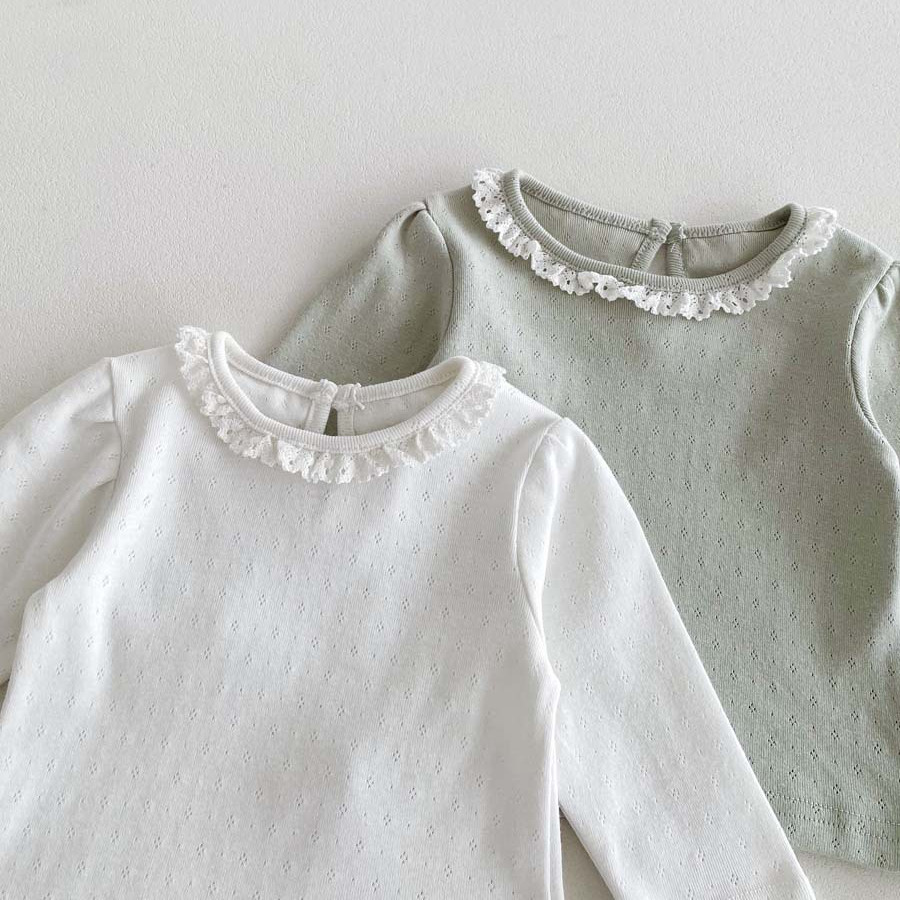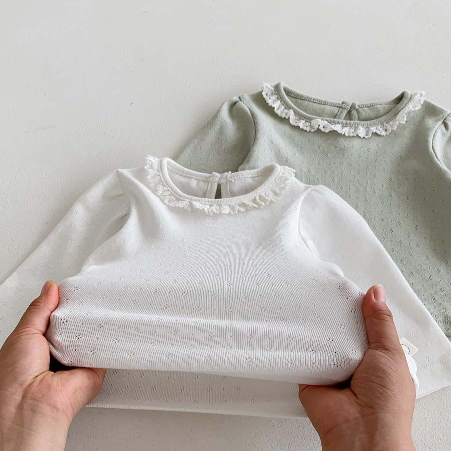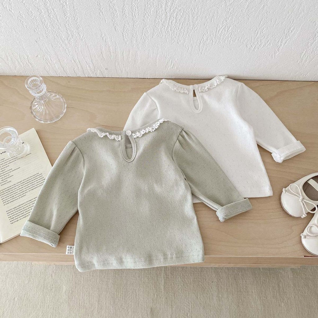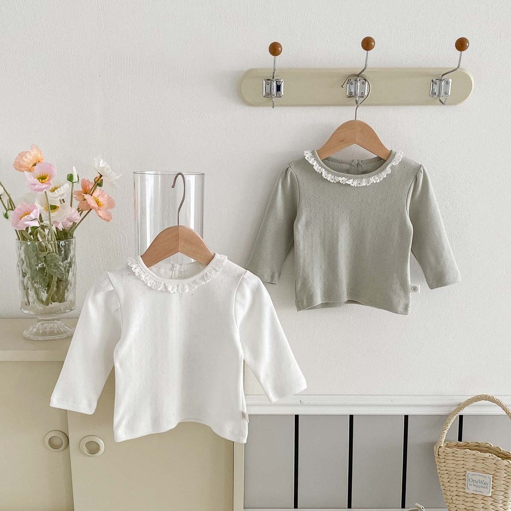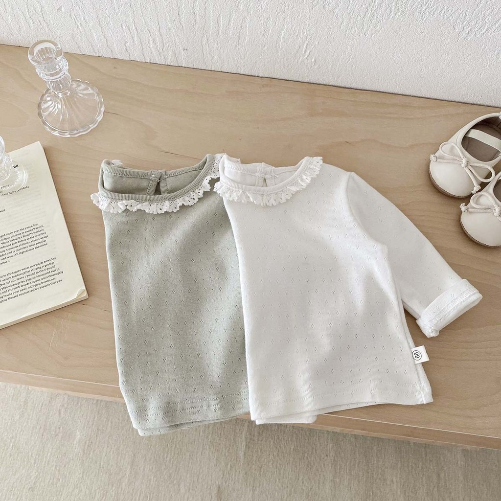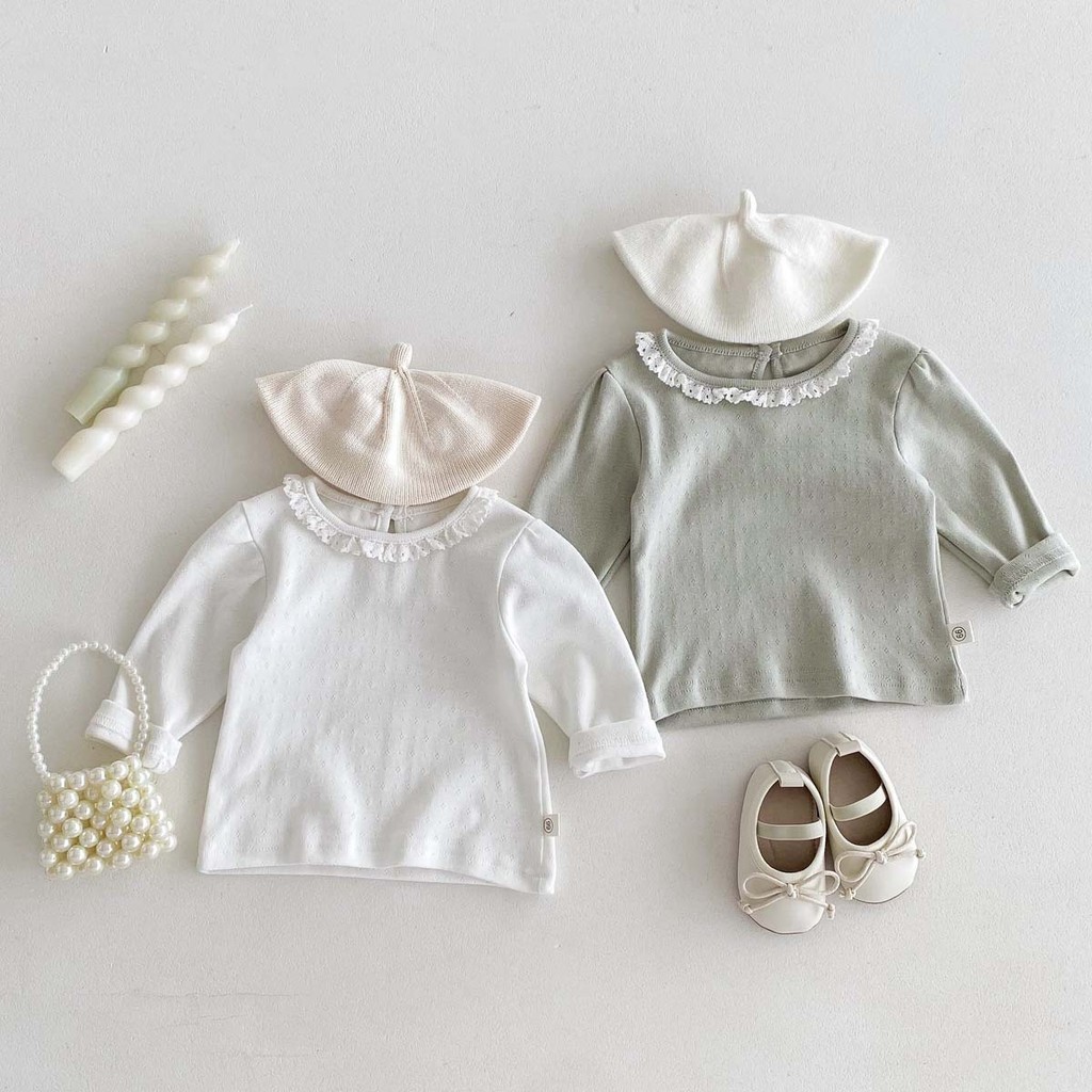 ฤดูใบไม้ร่วงทารกแรกเกิดเสื้อผ้าเด็กทารกท็อปส์ลูกไม้ธรรมดาปกแขนยาวทารกเสื้อ0-3ปี