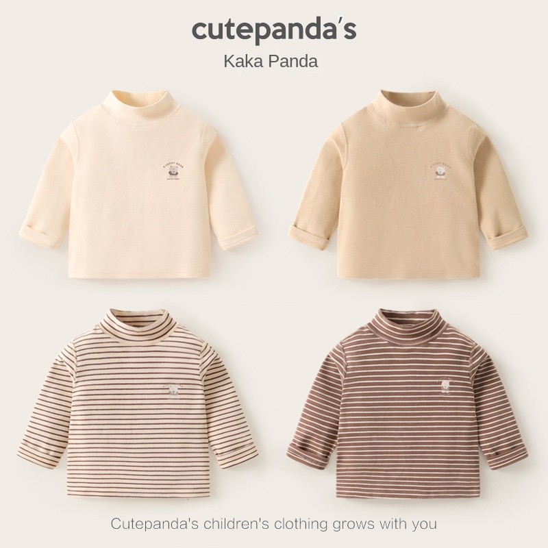 เด็กกึ่งคอเต่าเสื้อ จุดต่ําสุด ฤดูหนาวชายแขนยาวเสื้อยืดฤดูใบไม้ร่วงและฤดูหนาวหญิงเด็กทารกด้านบน -0926