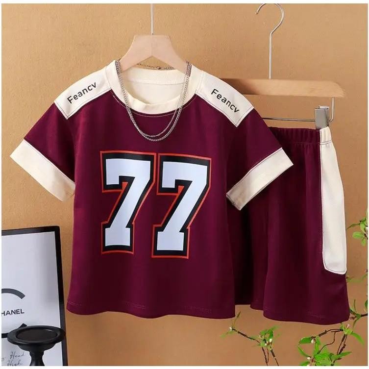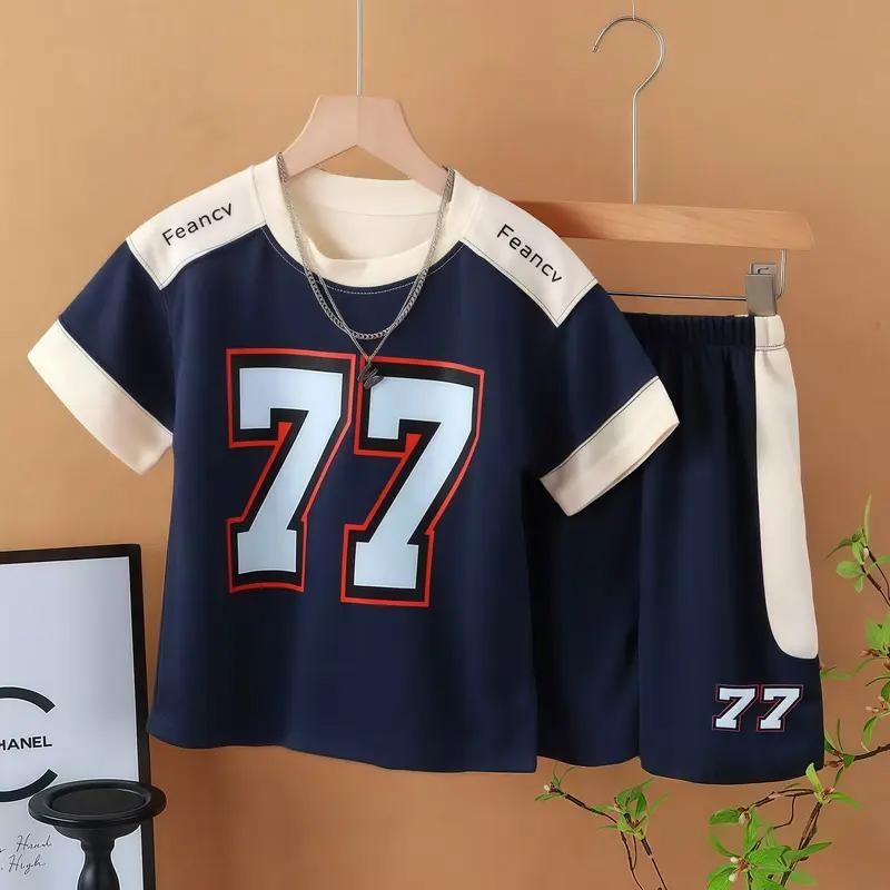 ชุดกีฬาเด็ก ชุดบอลเด็ก เซทเสือ+กางเกงขาสัน ผ้านุ้มสบายระบายอากาศได้ดี ไซส์ 90-160cm[DA-R]