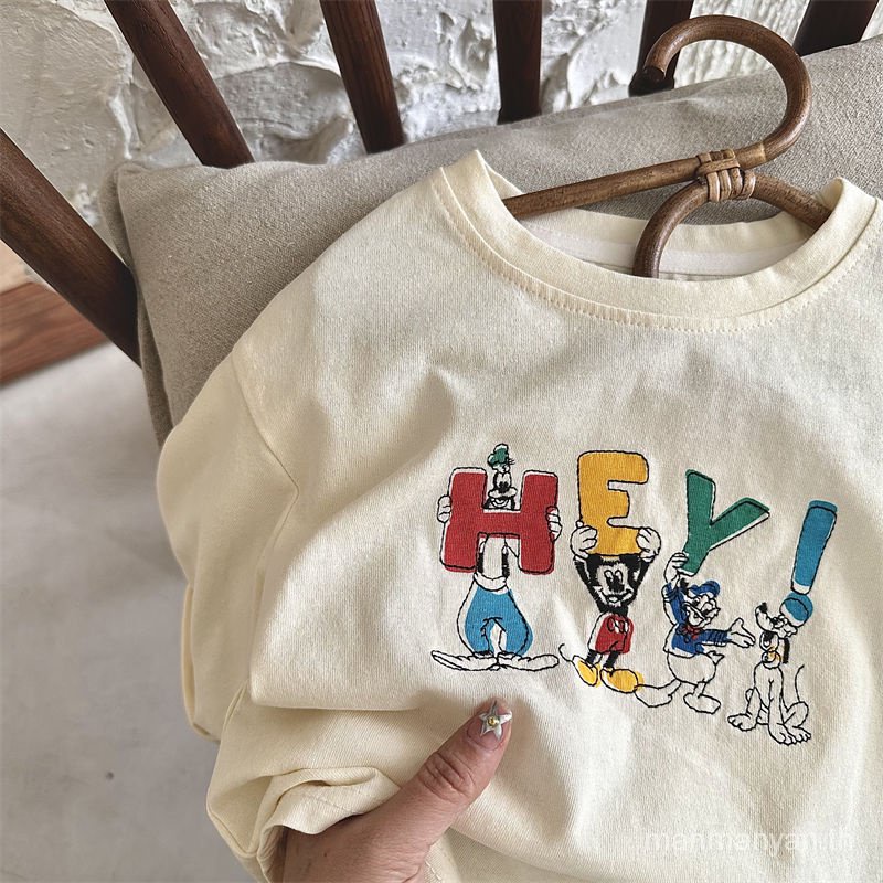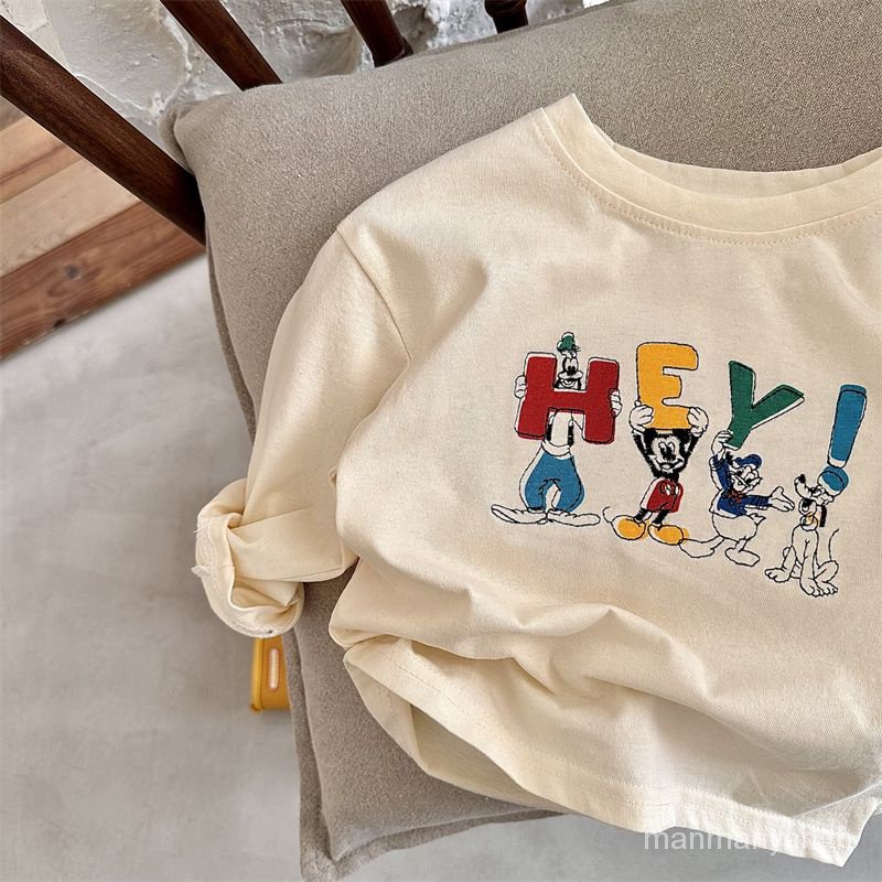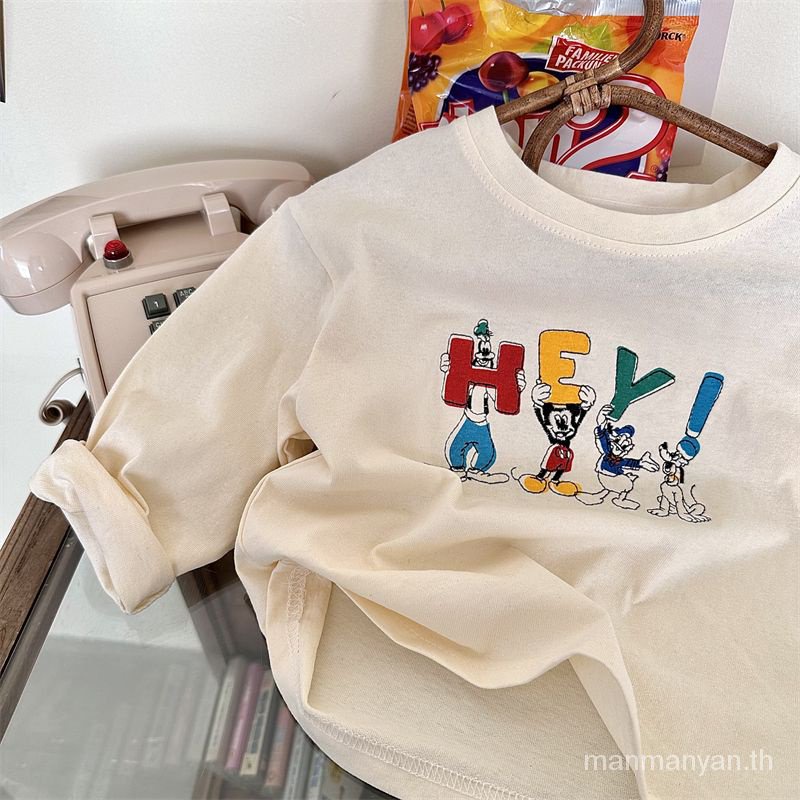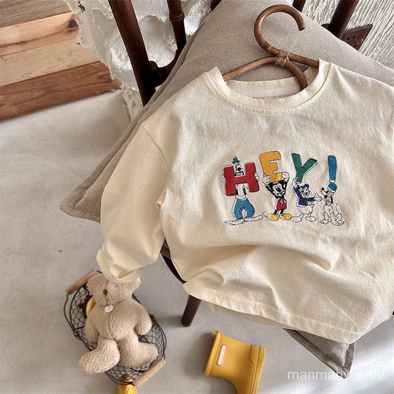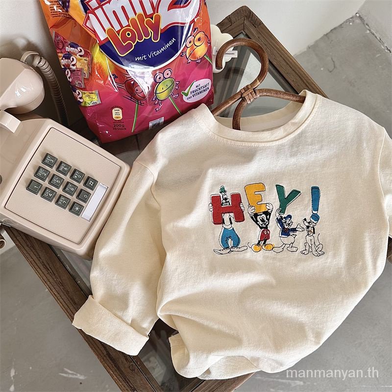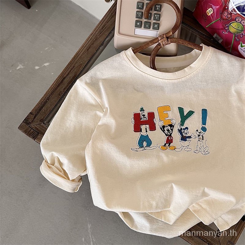 เสื้อยืดแขนยาว พิมพ์ลายการ์ตูน ขนาดเล็ก แฟชั่นฤดูใบไม้ผลิ และฤดูใบไม้ร่วง สําหรับเด็กผู้ชาย และเด็กผู้หญิง 2023