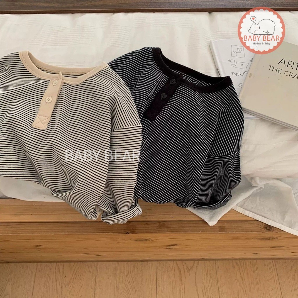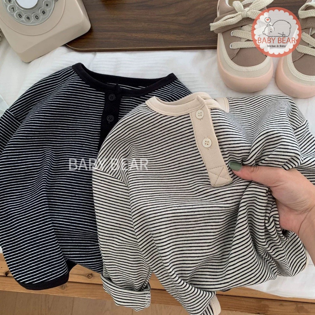 เสื้อยืดแขนยาวเด็ก เสื้อแขนยาวลายทาง ผ้ายืดๆนิ่มๆ สไตล์เกาหลี ใส่ได้ทั้งลูกชายลูกสาว