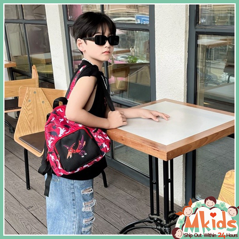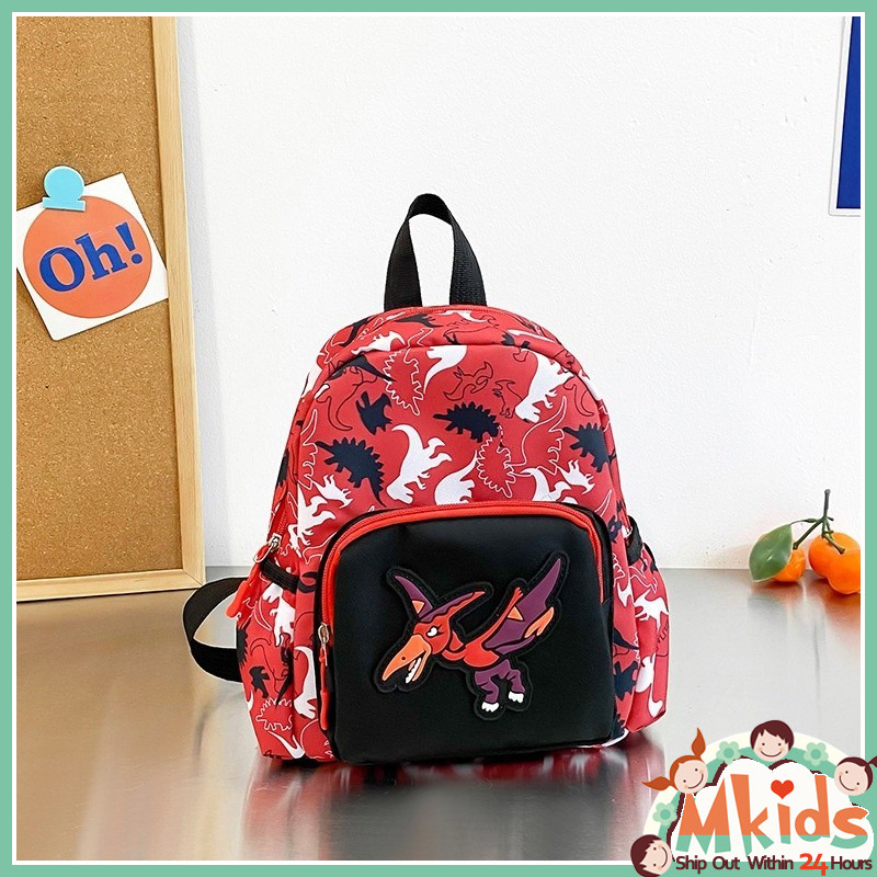 [ส่งจากในประเทศ?] กระเป๋าเป้เด็กอนุบาล ความจุสูงกันน้ำ ลายการ์ตูนไดโนเสาร์ สีแดง รูปปีกนก เด็กผู้ชาย