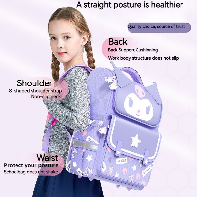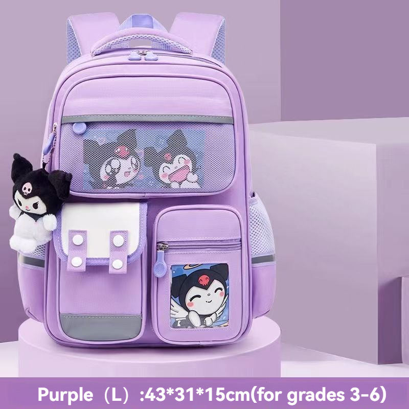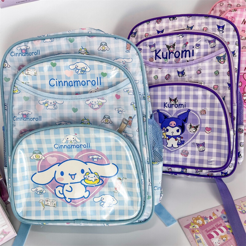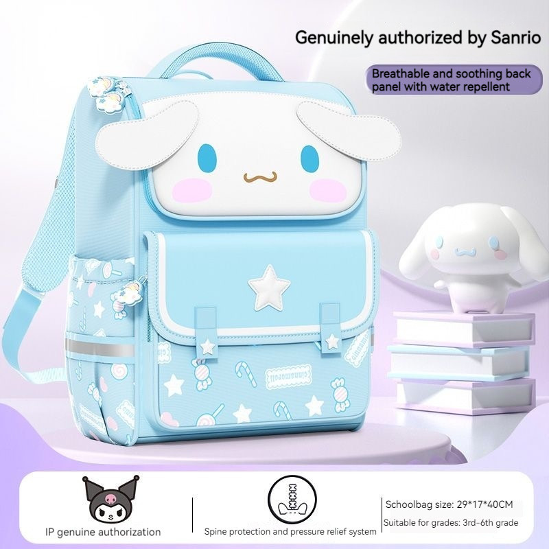 ?ซานริโอ ที่ได้รับอนุญาตของแท้ สไตล์ใหม่ คุโรมิ ซินนามอนสุนัข ทํานอง เคที แมวสไตล์ 1-3-6 เกรดนักเรียนชั้นประถมศึกษาหญิงน่ารักกันน้ําทนต่อการสึ กระเป๋านักเรียนหญิง,กระเป๋า,ของขวัญปีใหม่สำหรับเด็ก