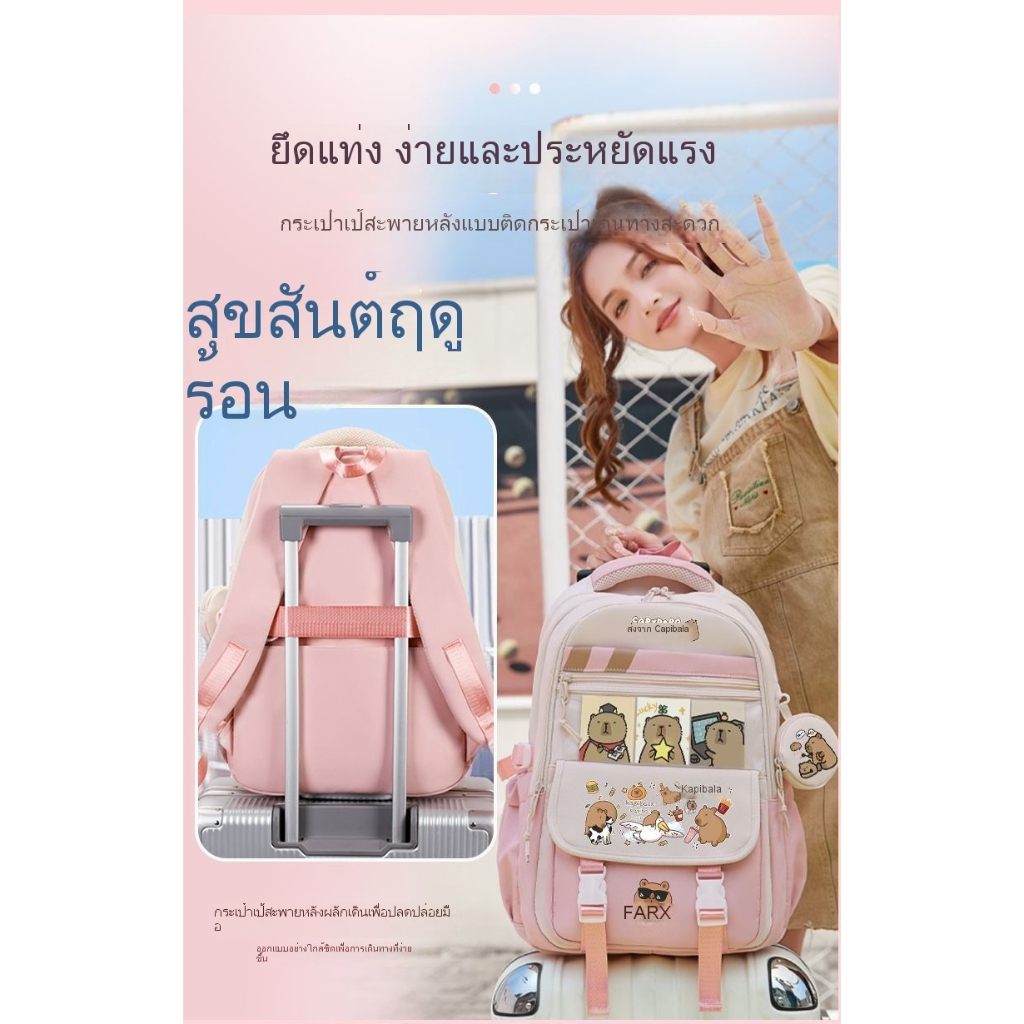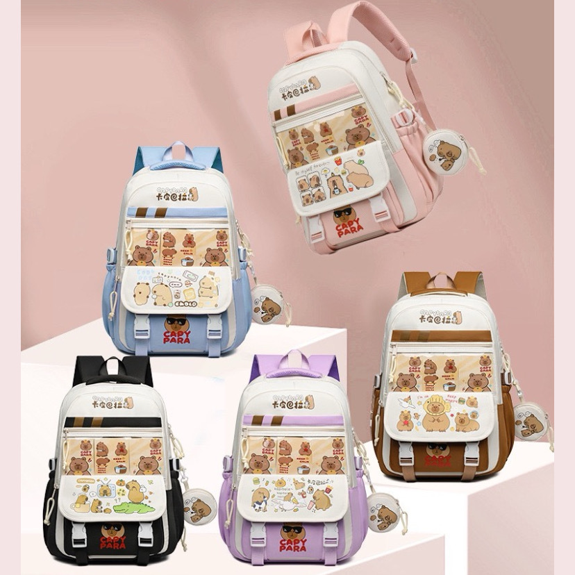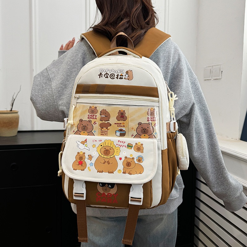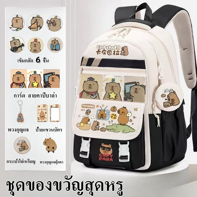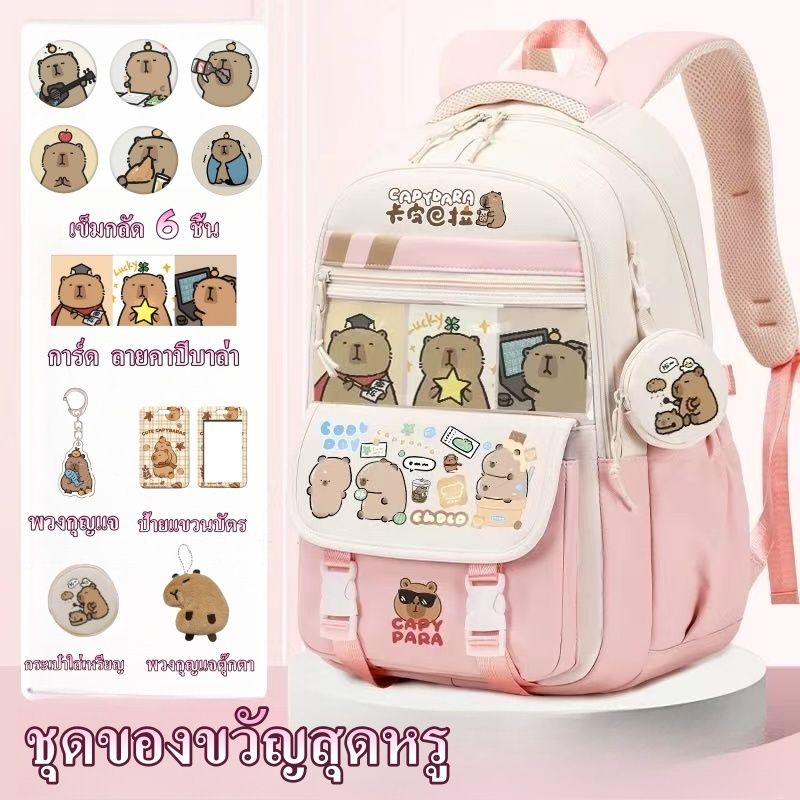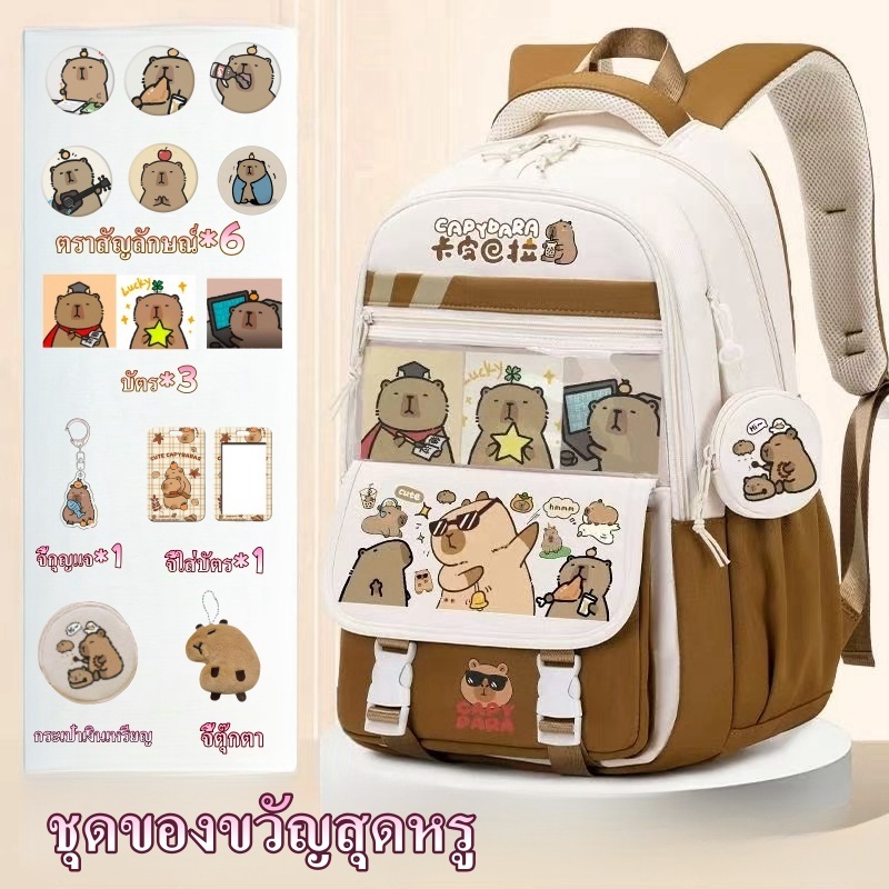 (RS6012) กระเป๋านักเรียนขนาดใหญ่ 17 นิ้ว ลายคาปิบาร่า ของตกแต่ง13ชิ้น สไตล์เกาหลี พร้อมส่งในไทย