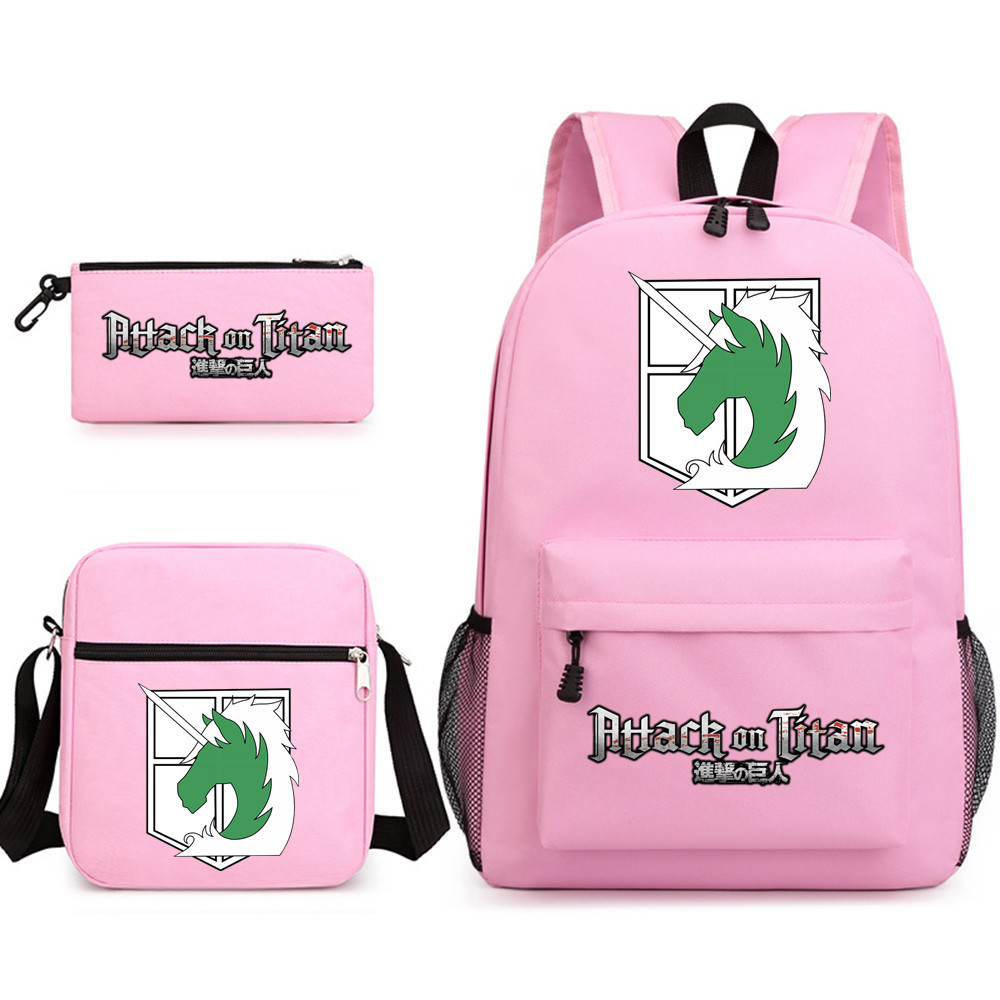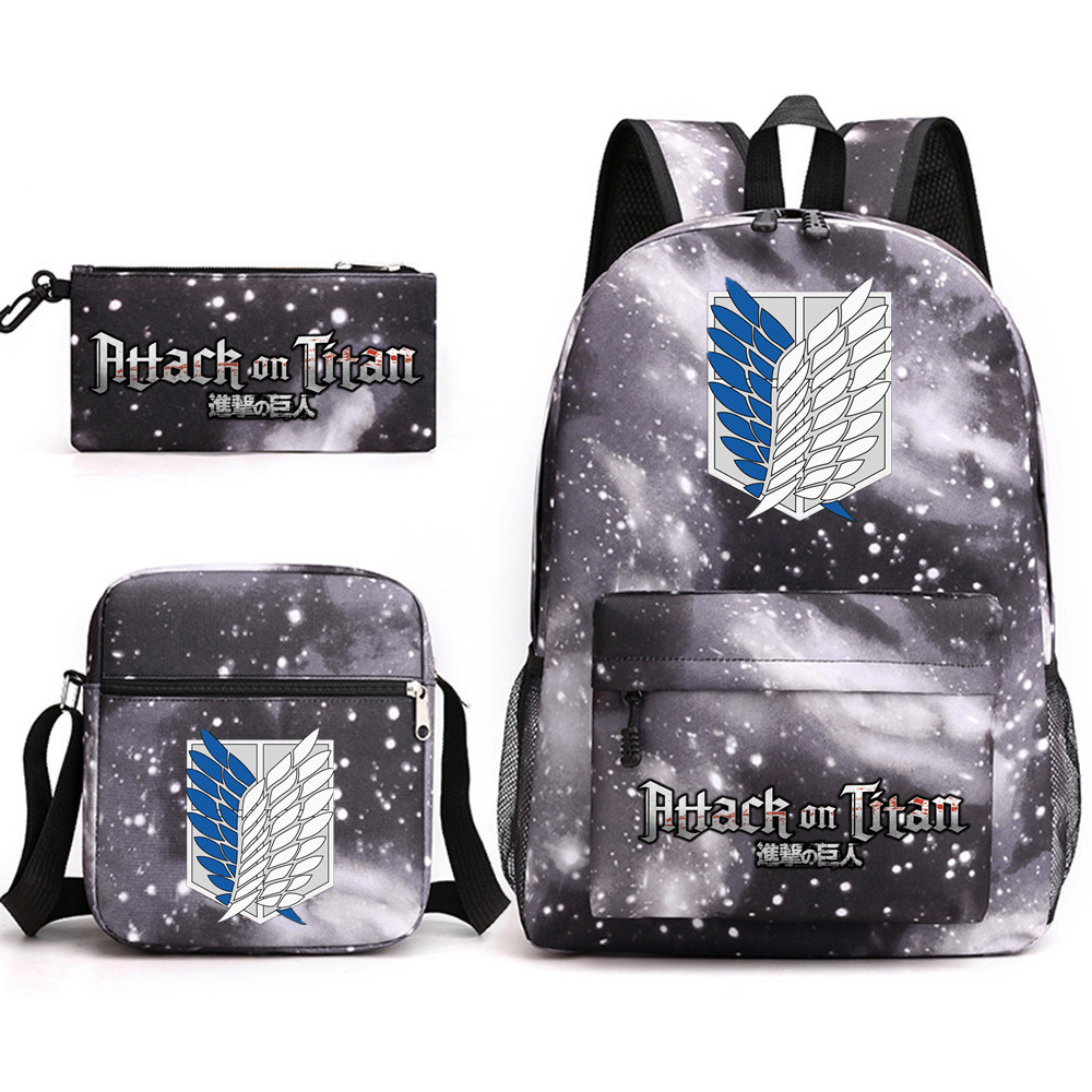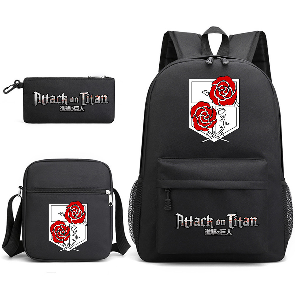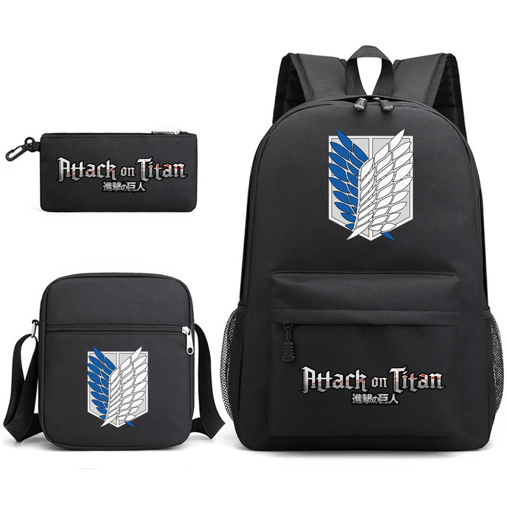 3pcs Attack on Titan EREN MIKASA กระเป๋าเป้สะพายหลังน้ําหนักเบาแล็ปท็อปกระเป๋านักเรียนไหล่กระเป๋าดินสอของขวัญสําหรับเด็กนักเรียน Mochilas 002