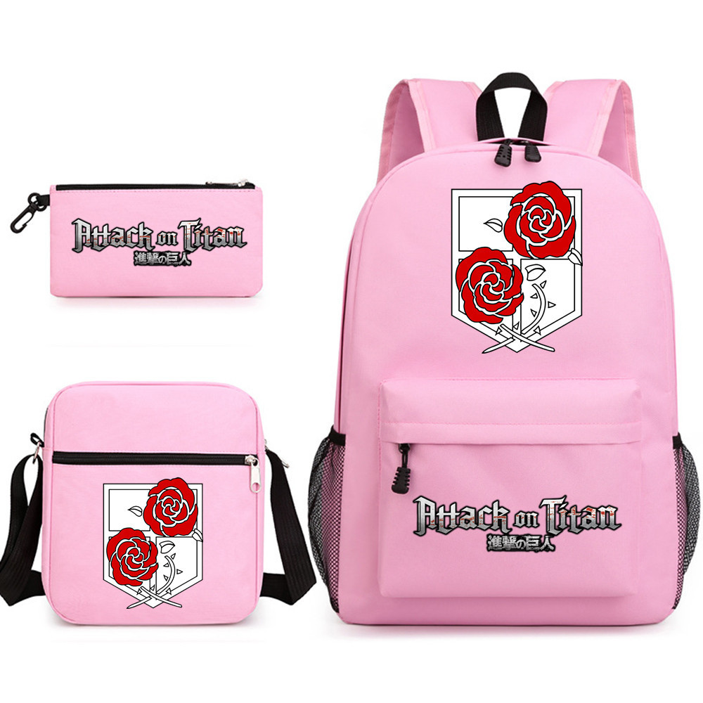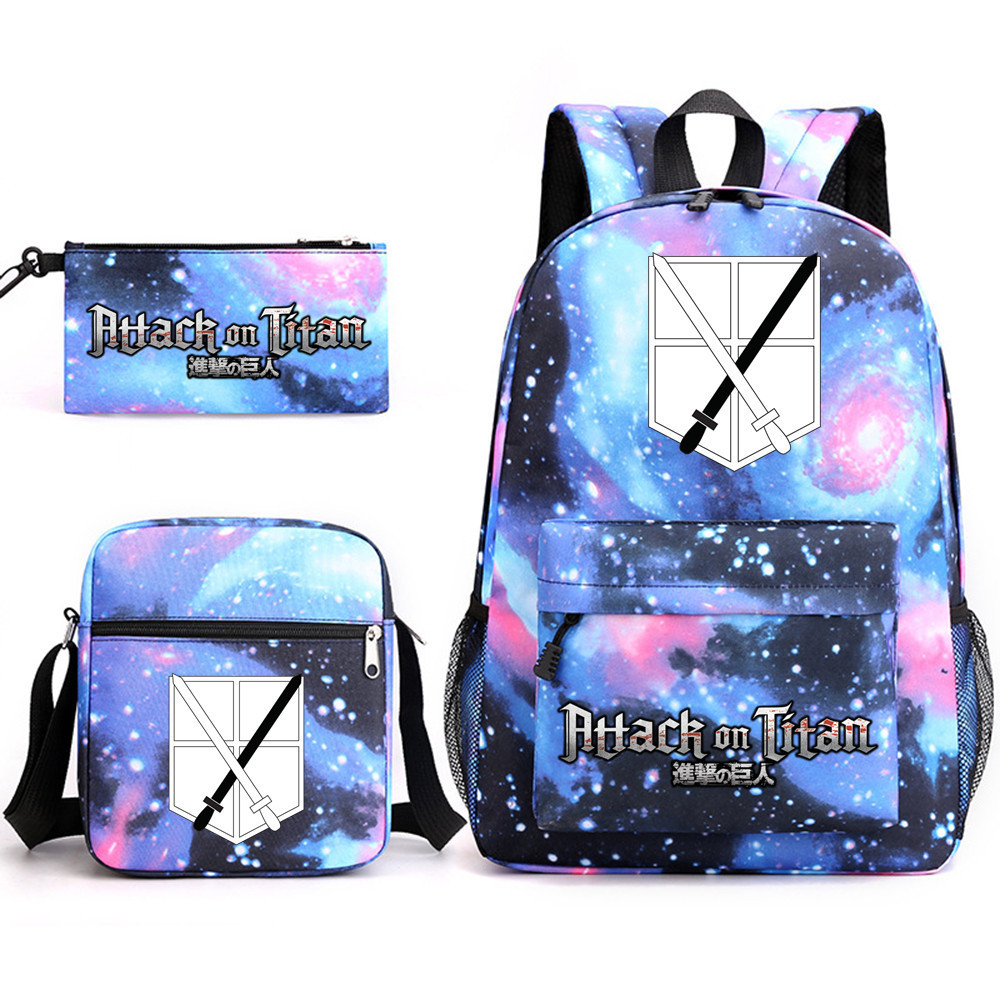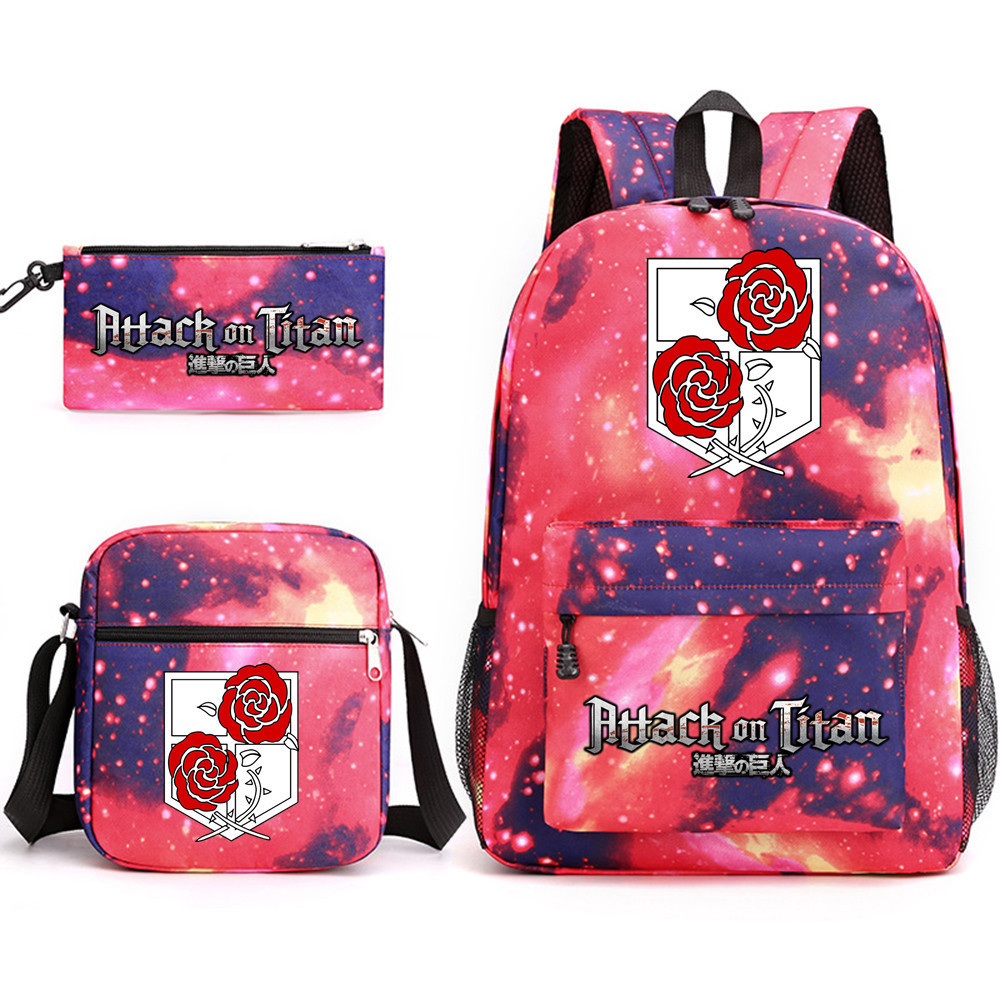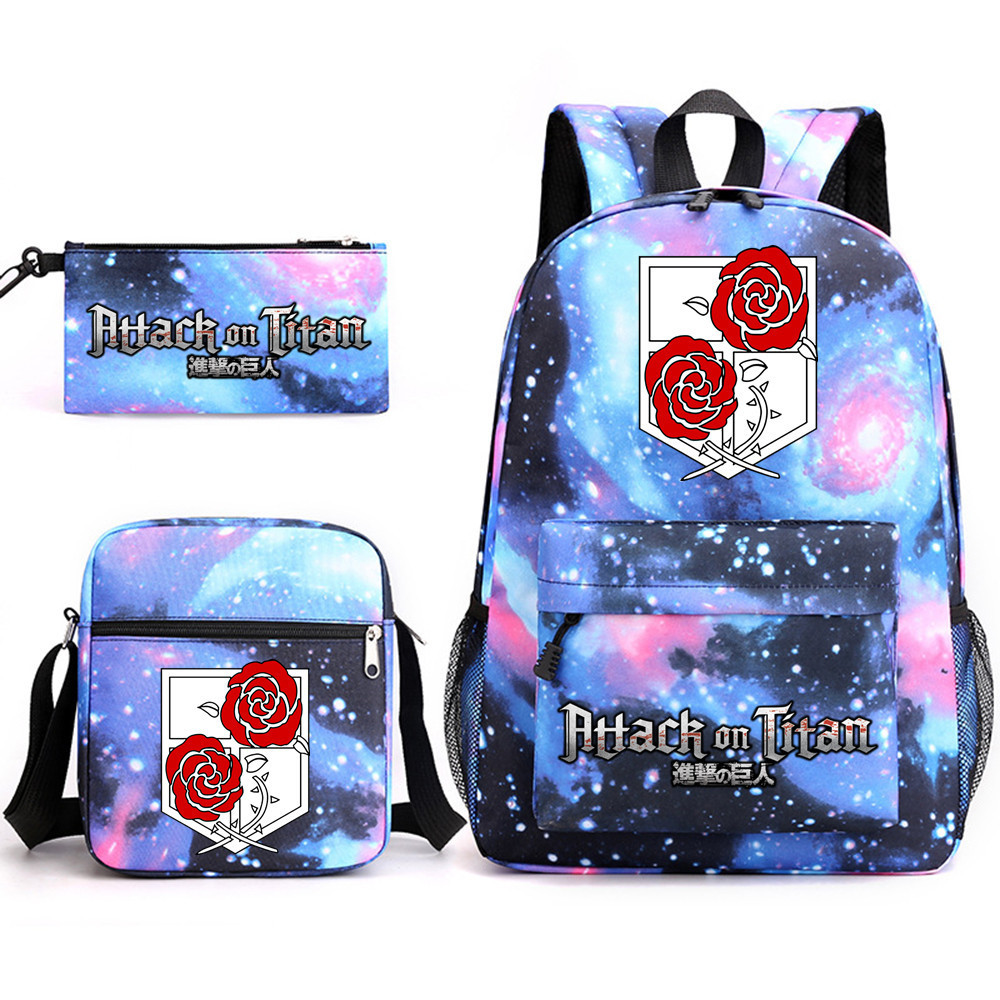 3pcs Attack on Titan EREN MIKASA กระเป๋าเป้สะพายหลังน้ําหนักเบาแล็ปท็อปกระเป๋านักเรียนไหล่กระเป๋าดินสอของขวัญสําหรับเด็กนักเรียน Mochilas 002