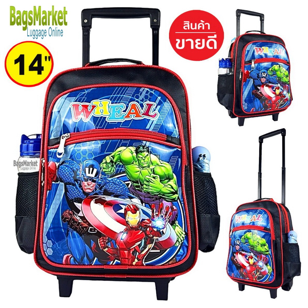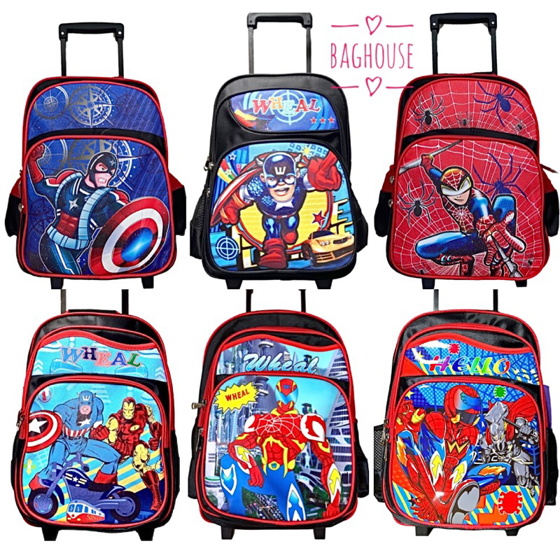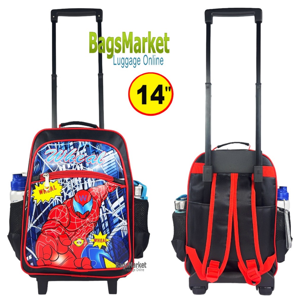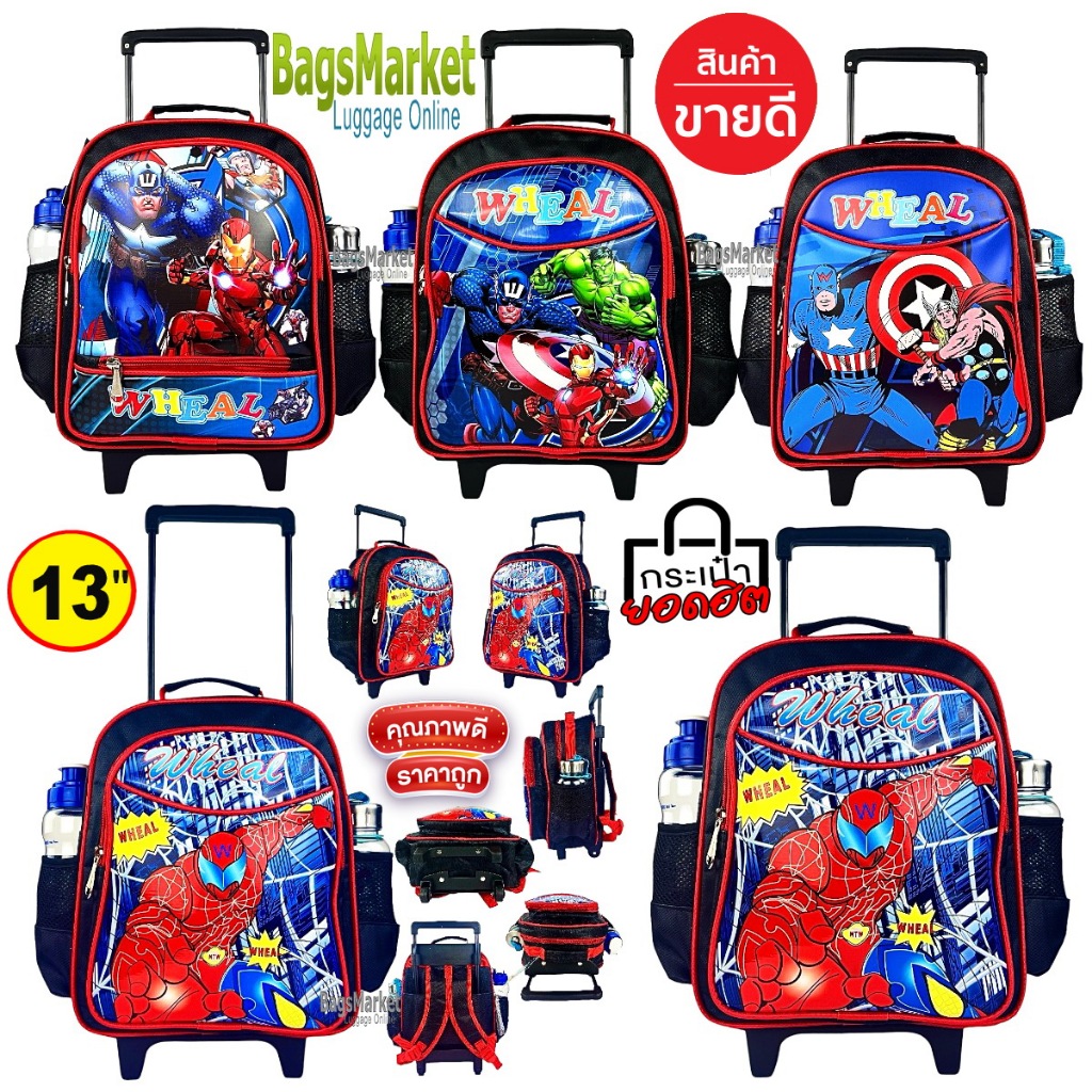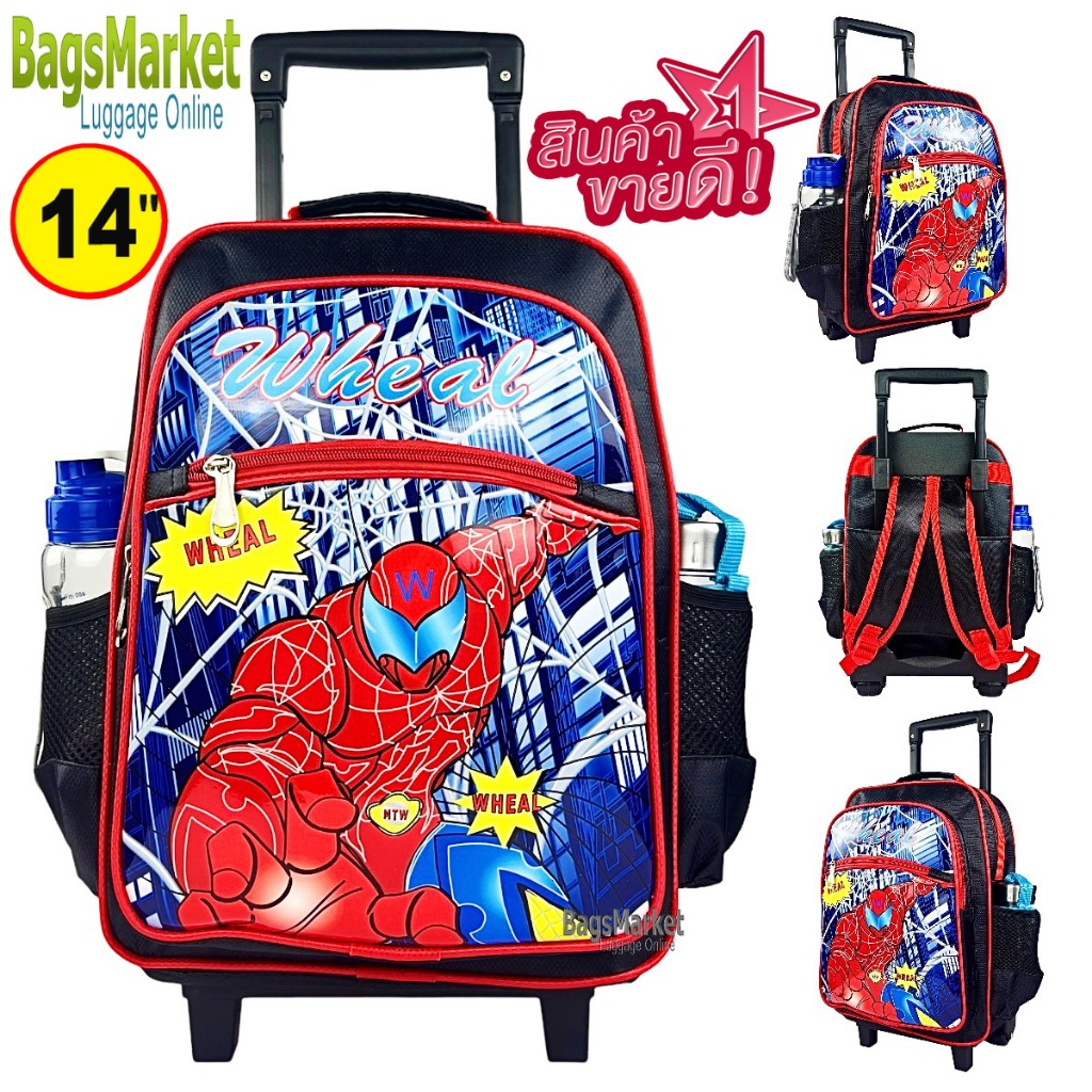 9889shop??กระเป๋าเด็กชาย 13″-14″-16″ Wheal กระเป๋าเป้มีล้อลากสำหรับเด็ก กระเป๋านักเรียน ลายกัปตัน-สไปเดอร์แมน