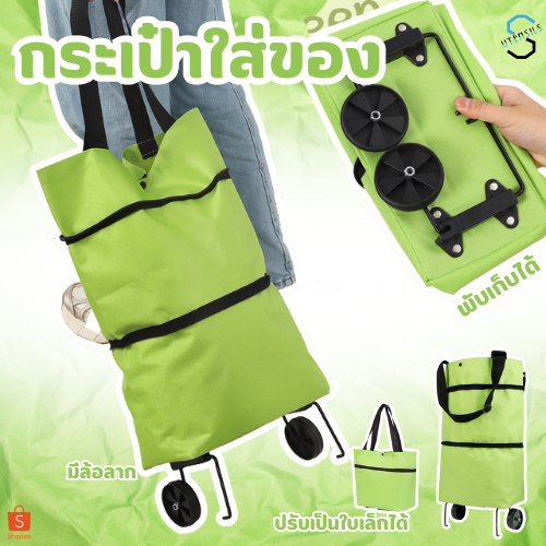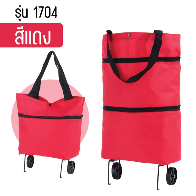 1704 กระเป๋าล้อลาก 2in1 ปรับสะพายได้ จ่ายตลาด มีล้อ ถุงผ้าแฟชั่น
