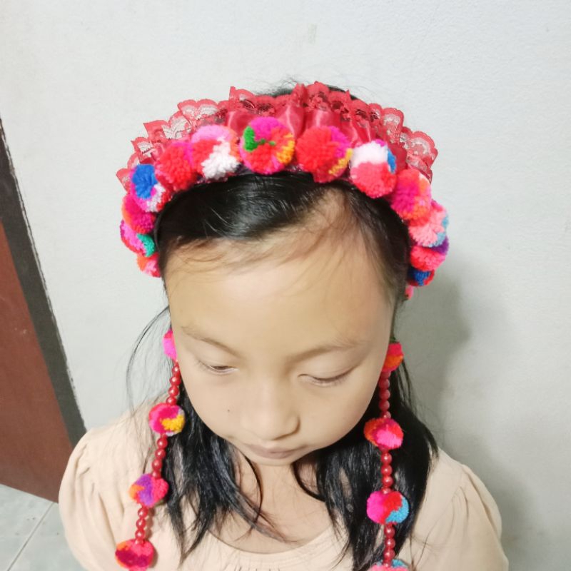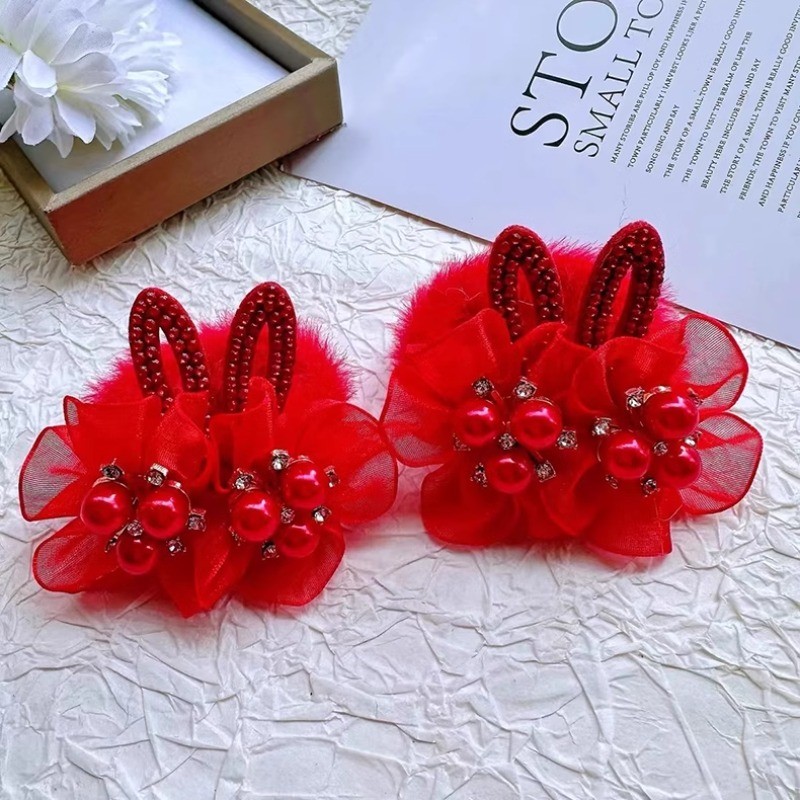 ปีใหม่สีแดงเด็กเด็กดอกไม้จีน หมวก เครื่องประดับผม