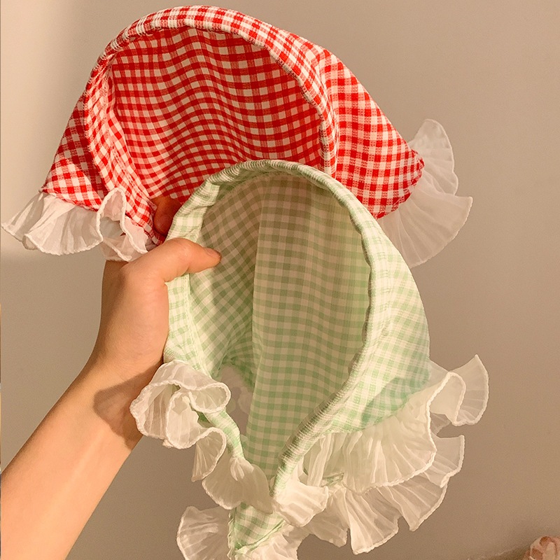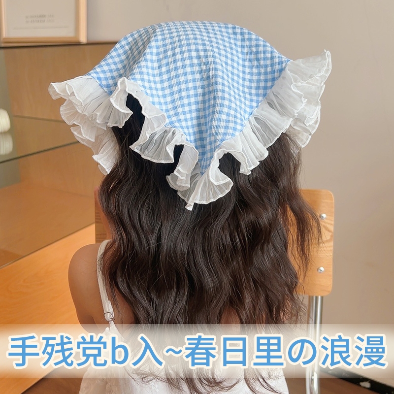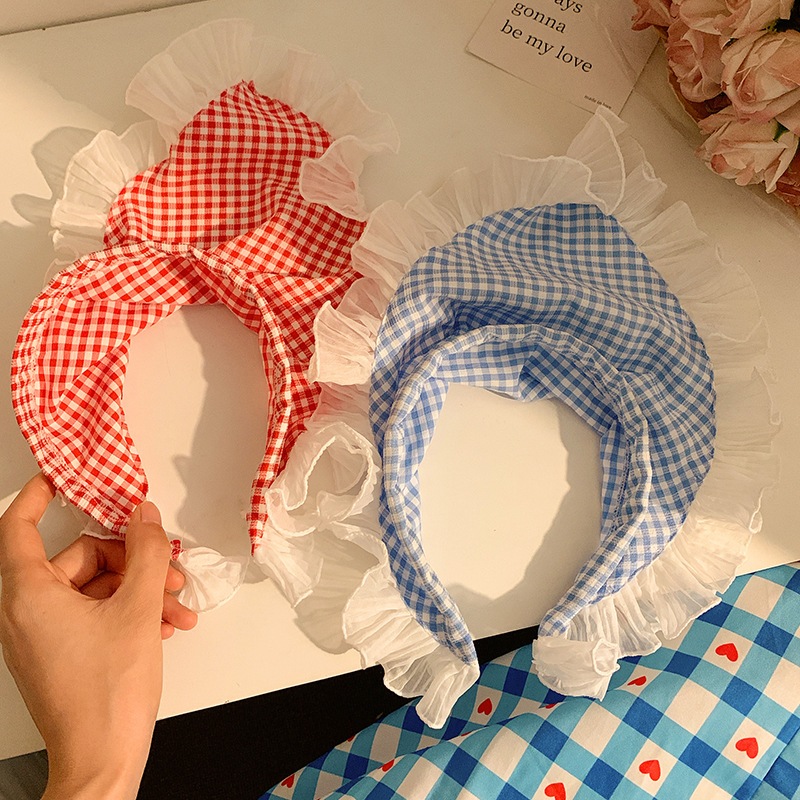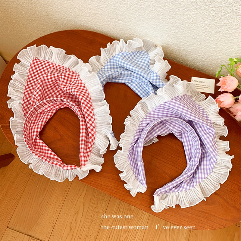 เด ็ กที ่ มีสีสัน Checkered แถบคาดศีรษะ Anti slip ผม Hoop สไตล ์ ชนบทลูกไม ้ ขอบสามเหลี ่ ยมผ ้ าพันคอสาวเด ็ กแถบคาดศีรษะคลิปผม