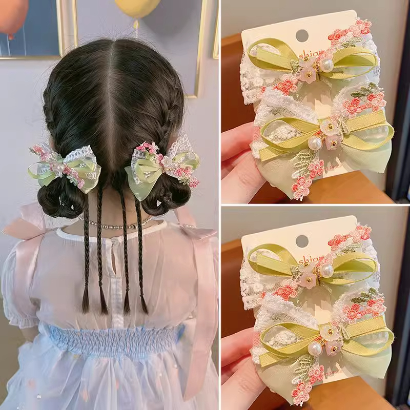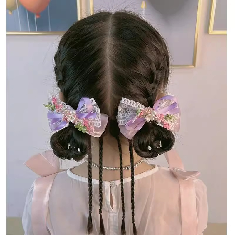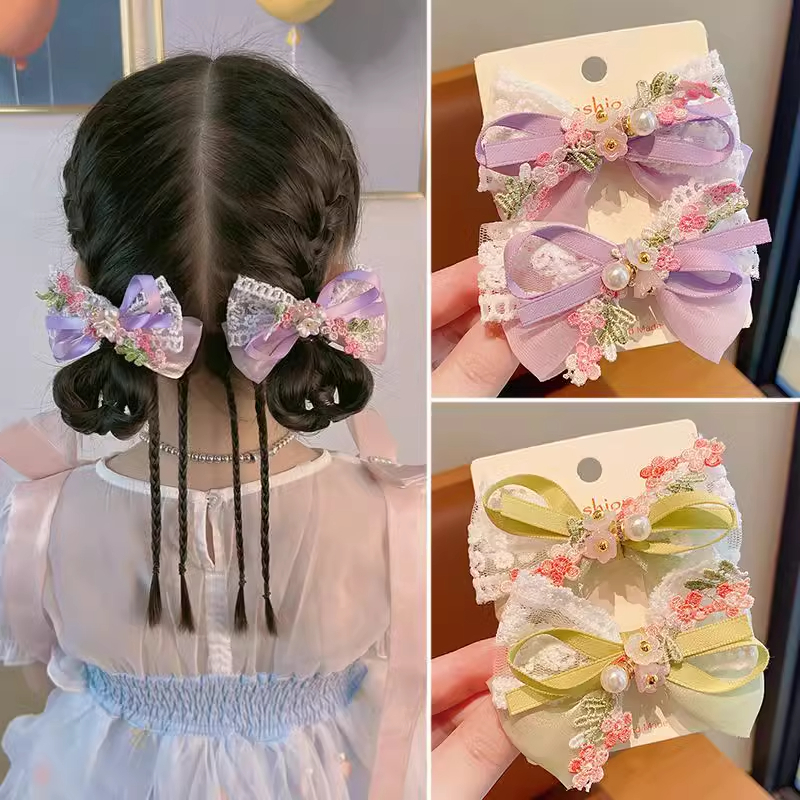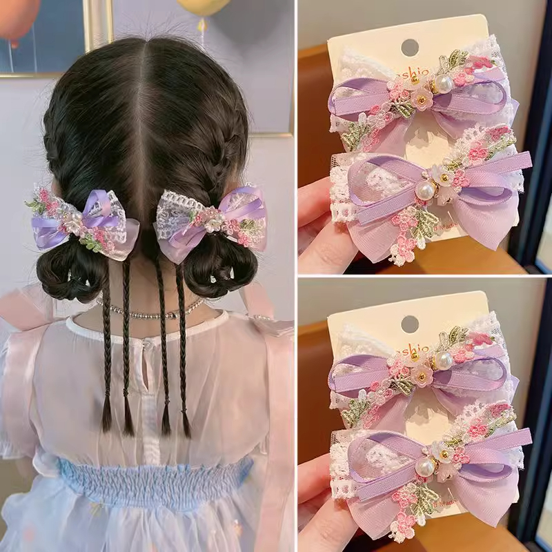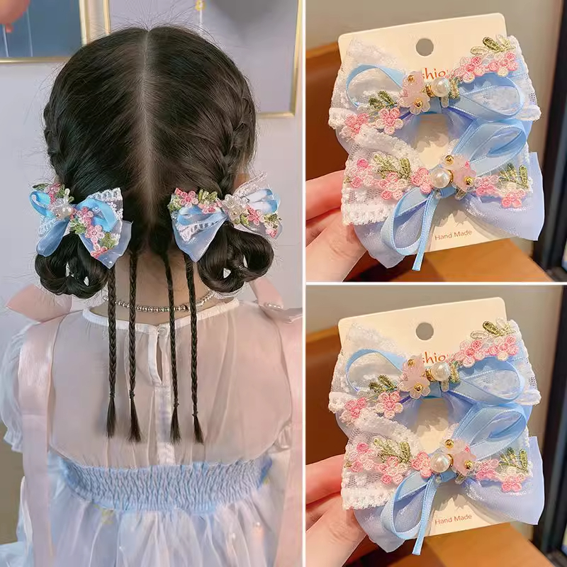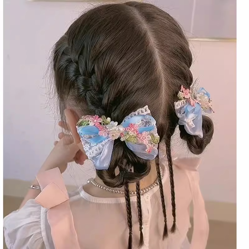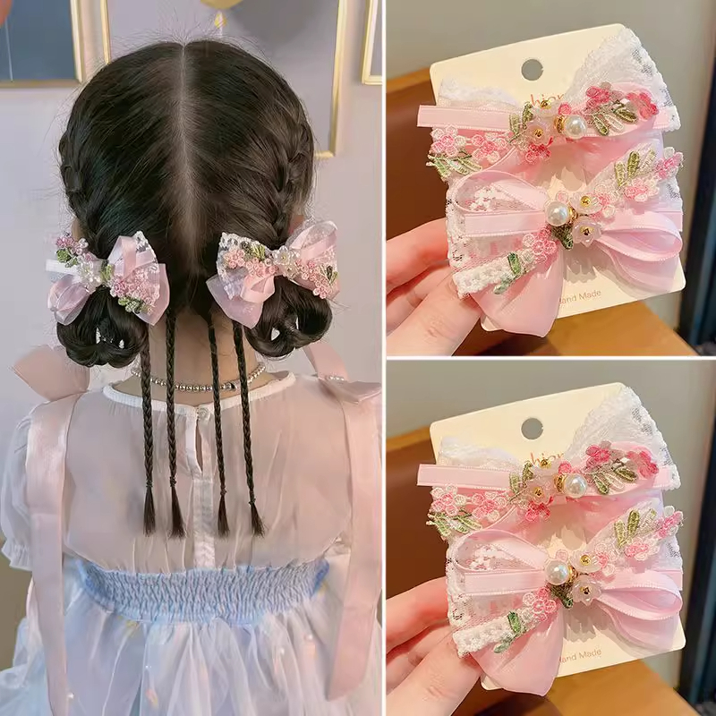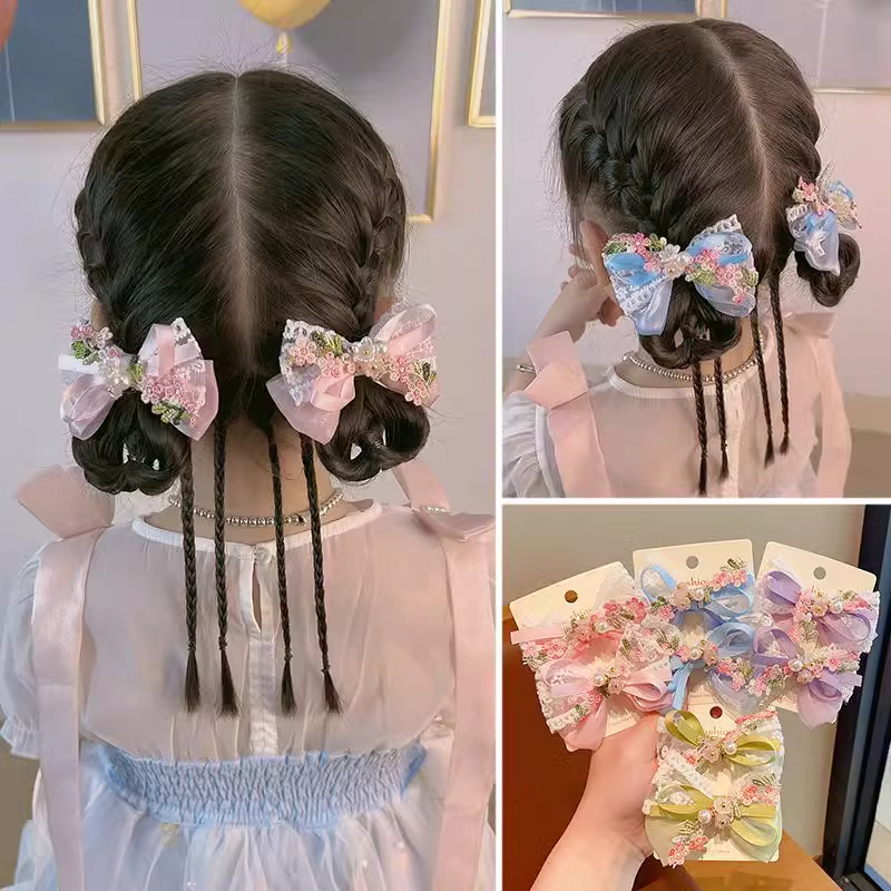 เด็กประณีตปักดอกไม้ริบบิ้นโบว์กิ๊บติดผม