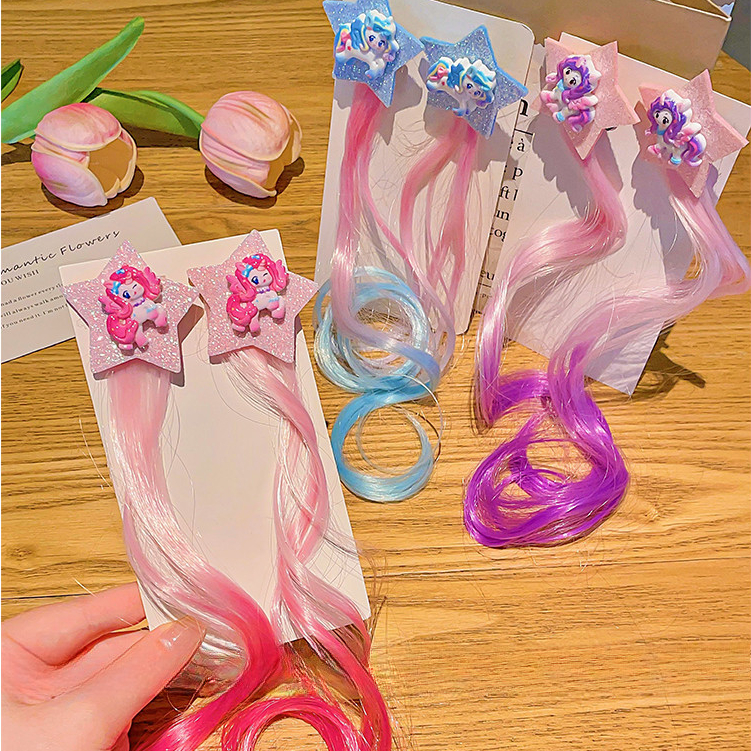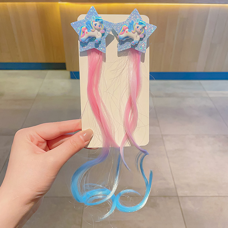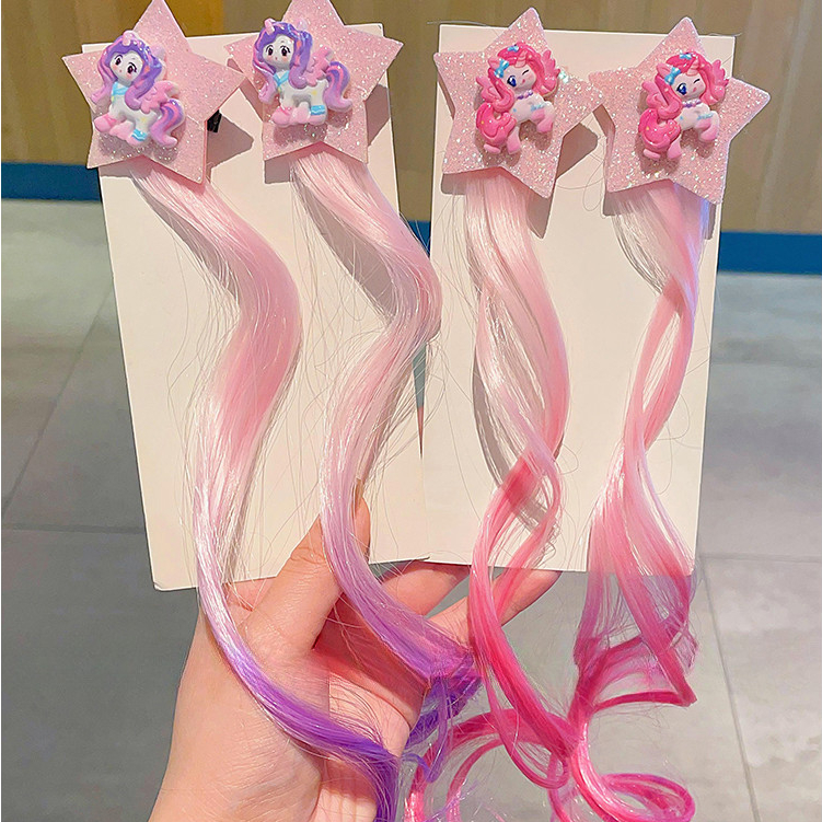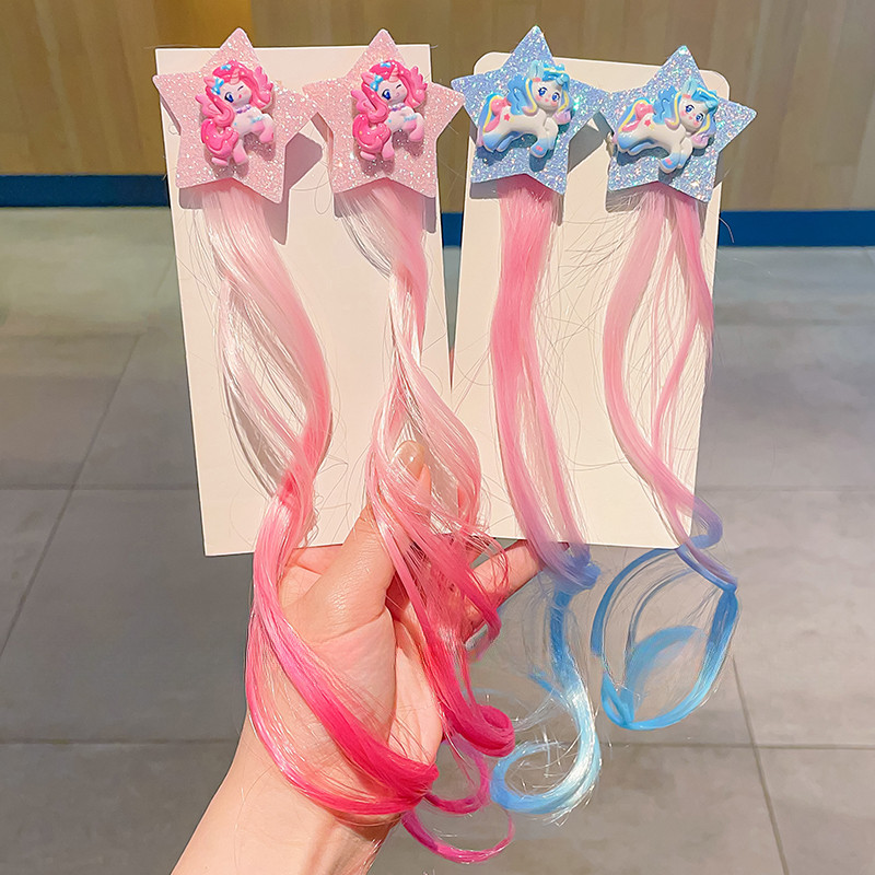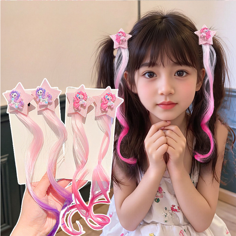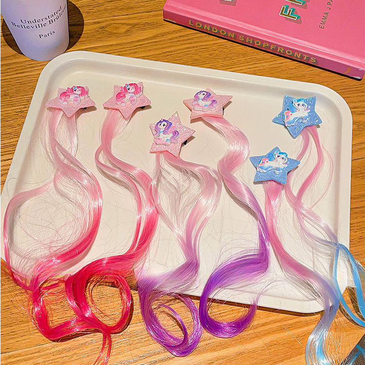 เด็ก My Little Pony Pony วิกผมไล่โทนสี Braid กิ๊บติดผมถักเครื่องประดับผม