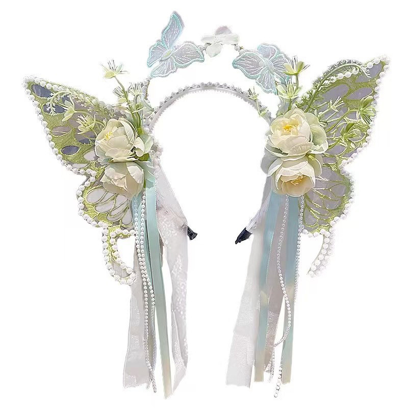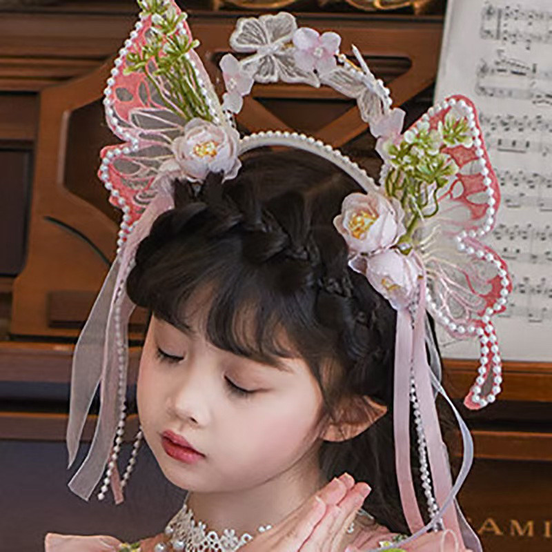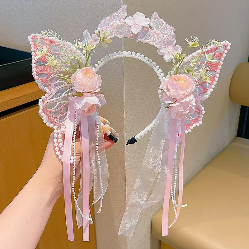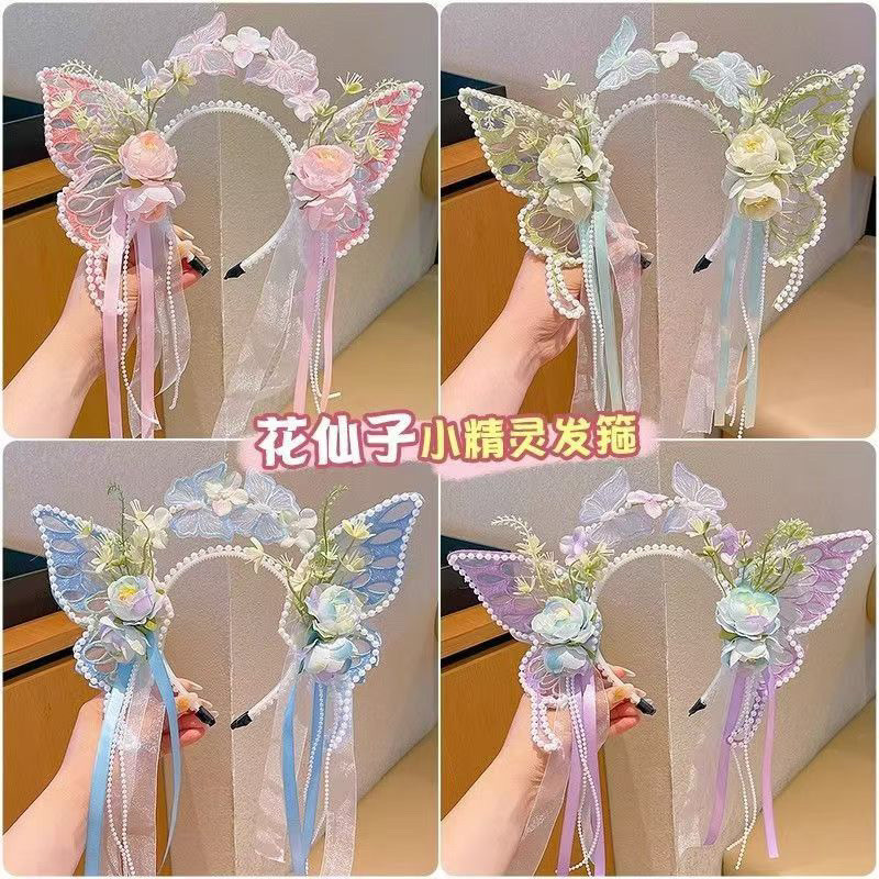 เครื่องประดับผมอัลเลนขายร้อนผมตรงเด็กผีเสื้อคาดศีรษะสไตล์เจ้าหญิงดอกไม้นางฟ้า ชม. หูฟัง เอลฟ์ ชม. หูฟัง สุด ๆ นางฟ้า