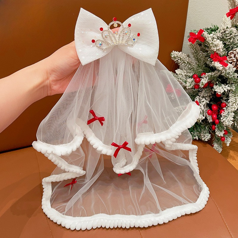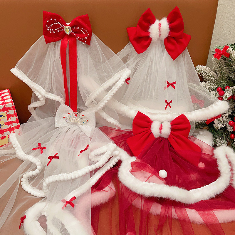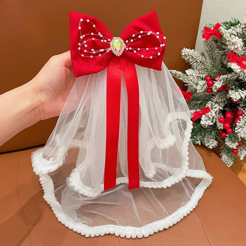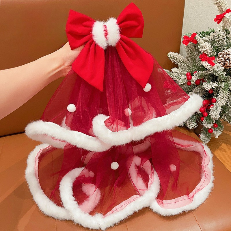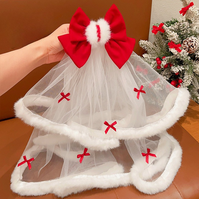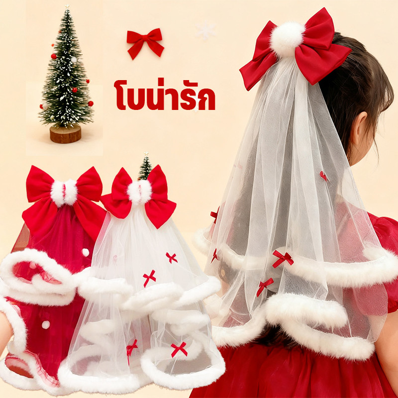 เครื่องประดับผมคริสต์มาส ที่คาดผมเด็ก ผ้าคลุมหัวโบ แฟชั่นน่ารั ของขวัญปีใหม่ ใส่ไปงานเลี้ยง ถ่ายรูปสวย