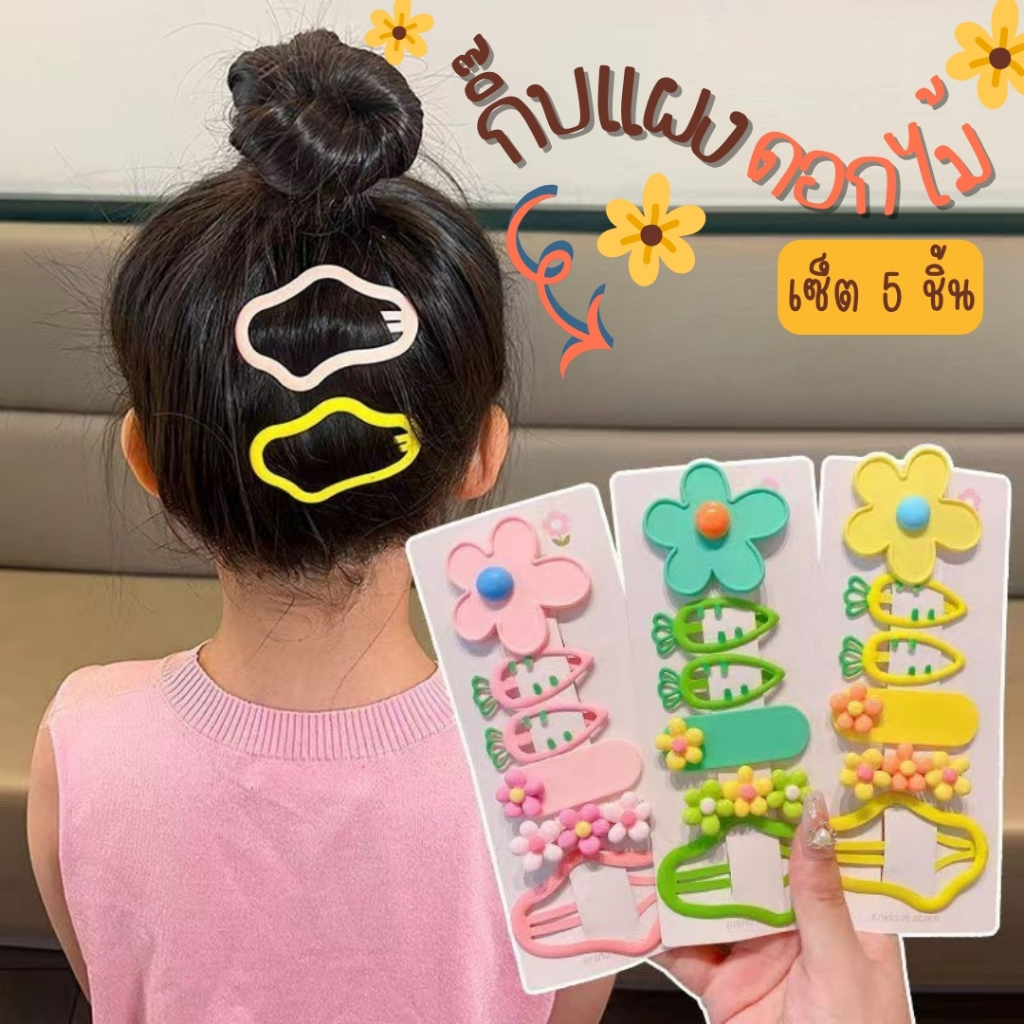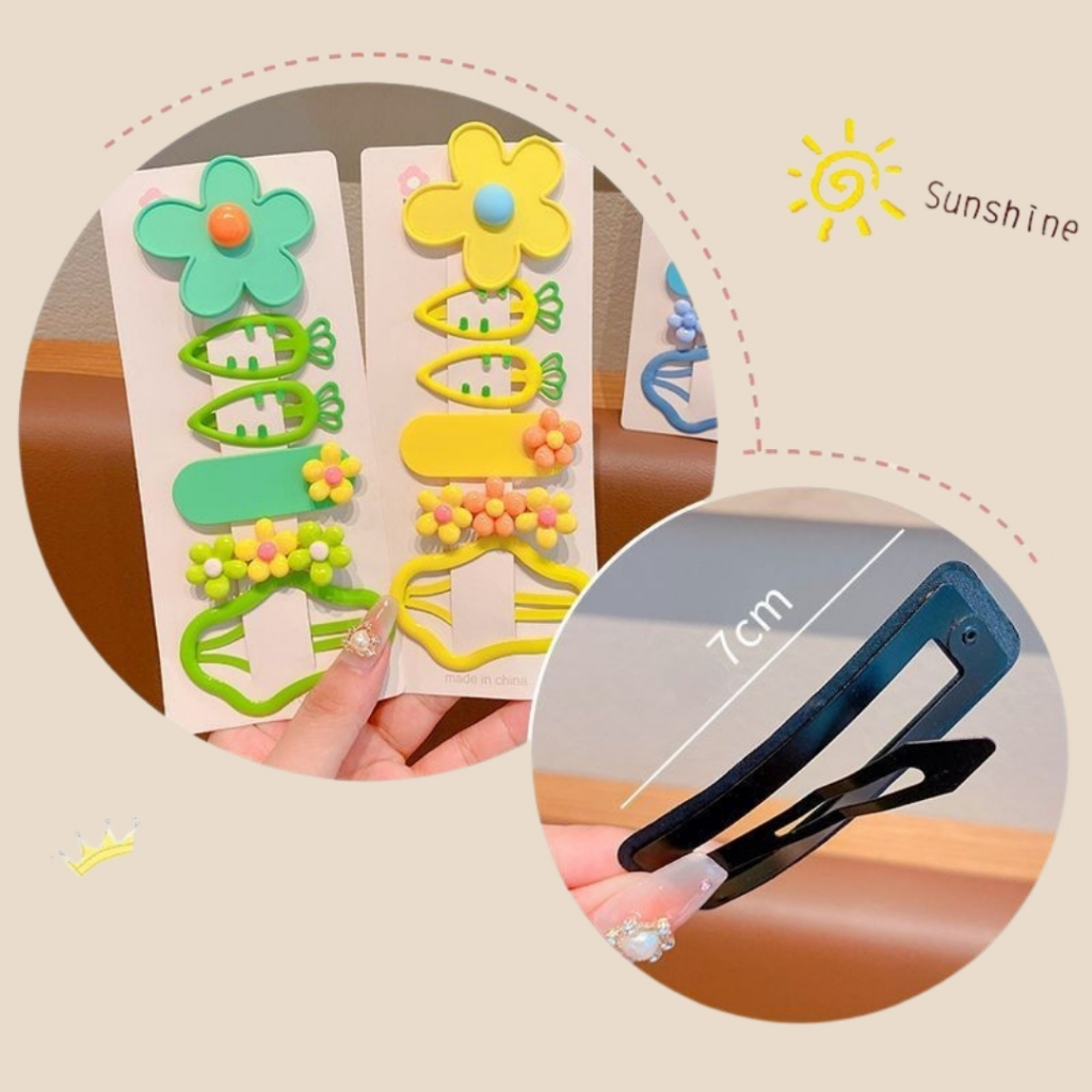 เซตกิ๊บติดผมเด็ก 6 ชิ้น ลายน่ารัก ดอกไม้ แครอท หัวใจ สีพาสเทลหวาน CLP-FLR-6PC