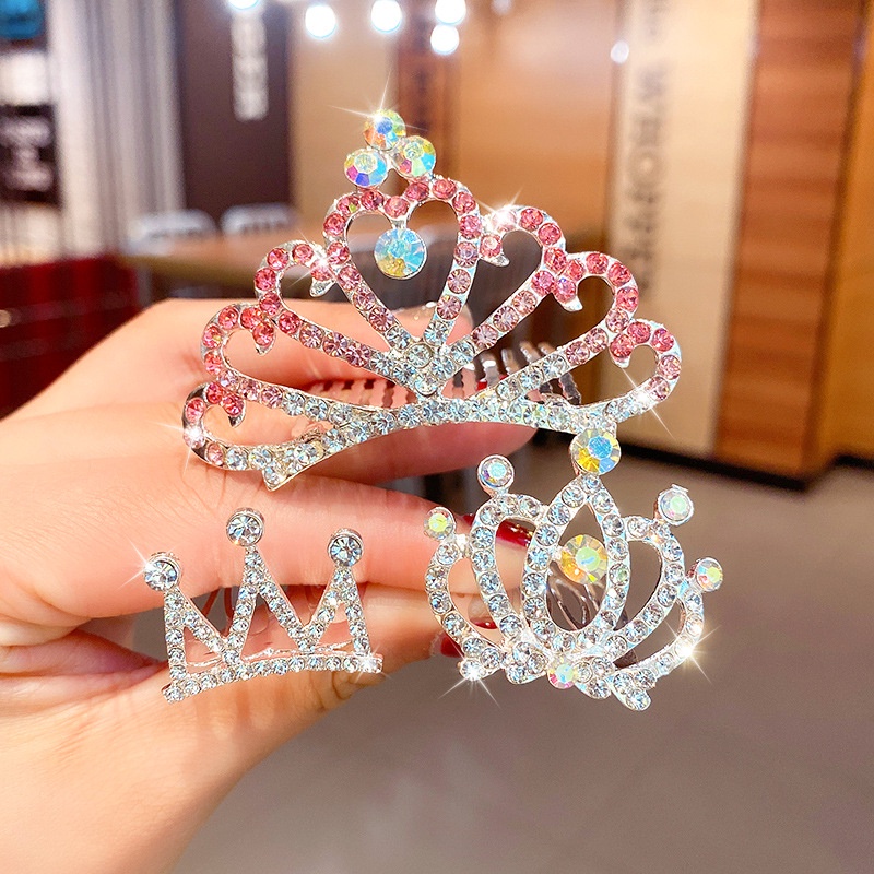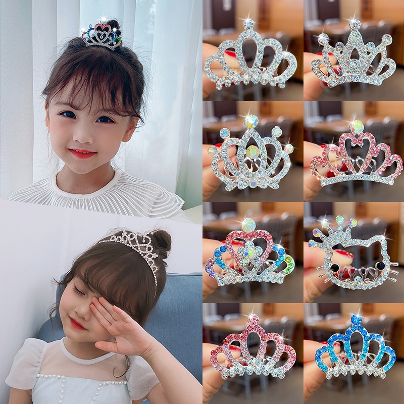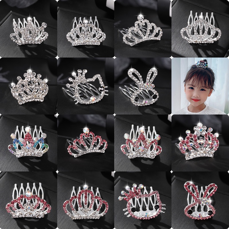 เด็กเจ้าหญิงมงกุฎหวีผมกิ๊บ ชม. หูฟัง สาวเด็กขั้นสูงน้ําเพชรแทรกหวีสาวน้อยวันเกิดมงกุฎกิ๊บ