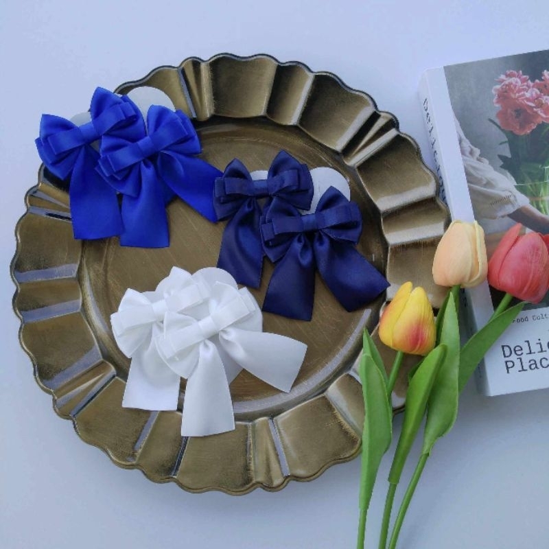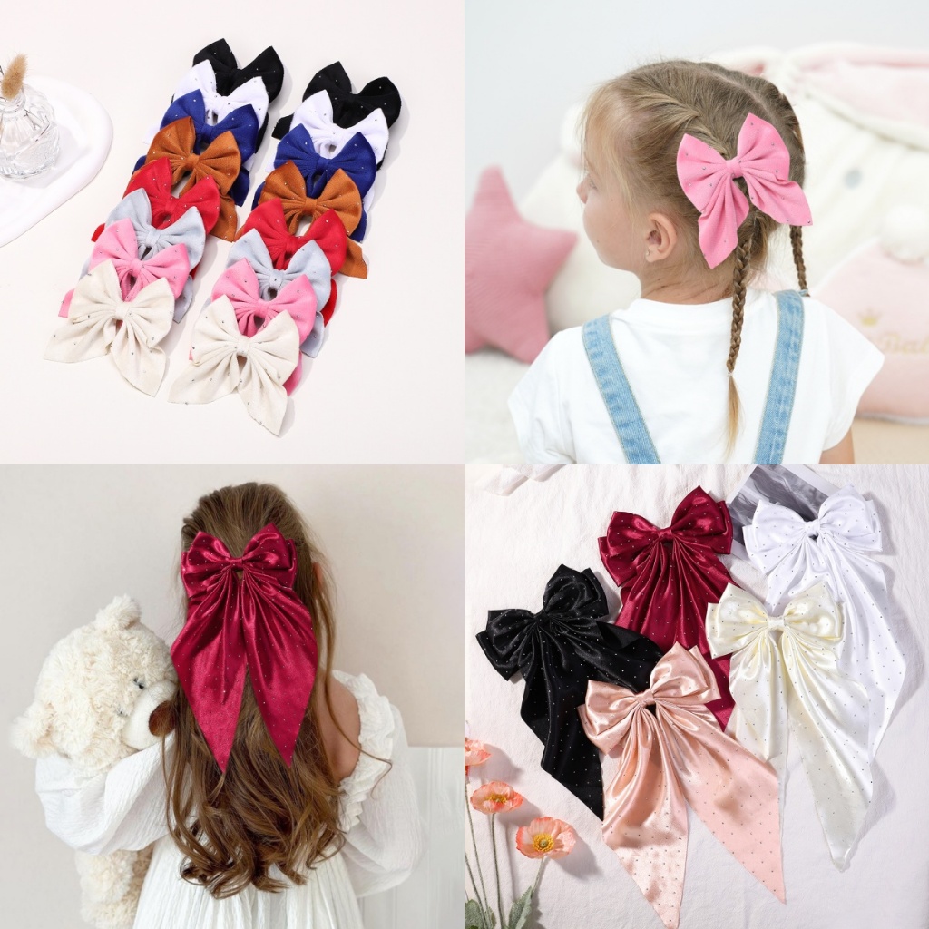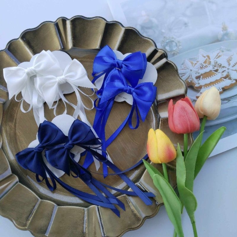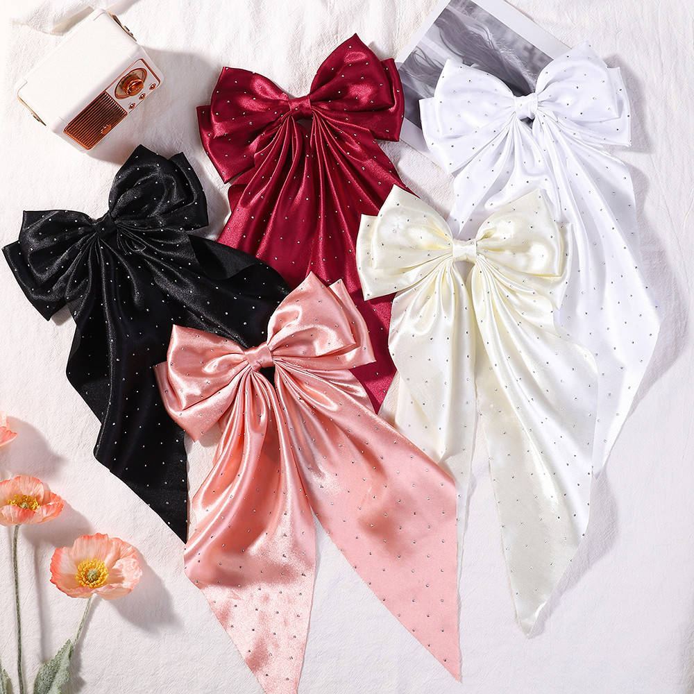 แฟชั่นสีทึบโบว์ยาวขนาดใหญ่ซาตินกิ๊บยาวอารมณ์อุปกรณ์ผมที่สง่างามขายส่ง