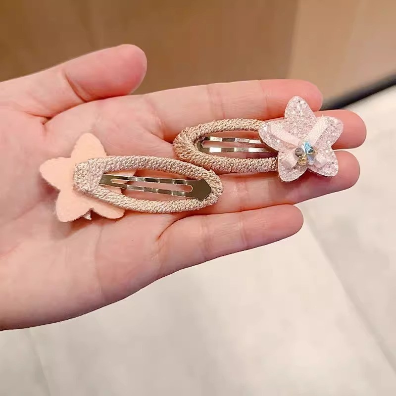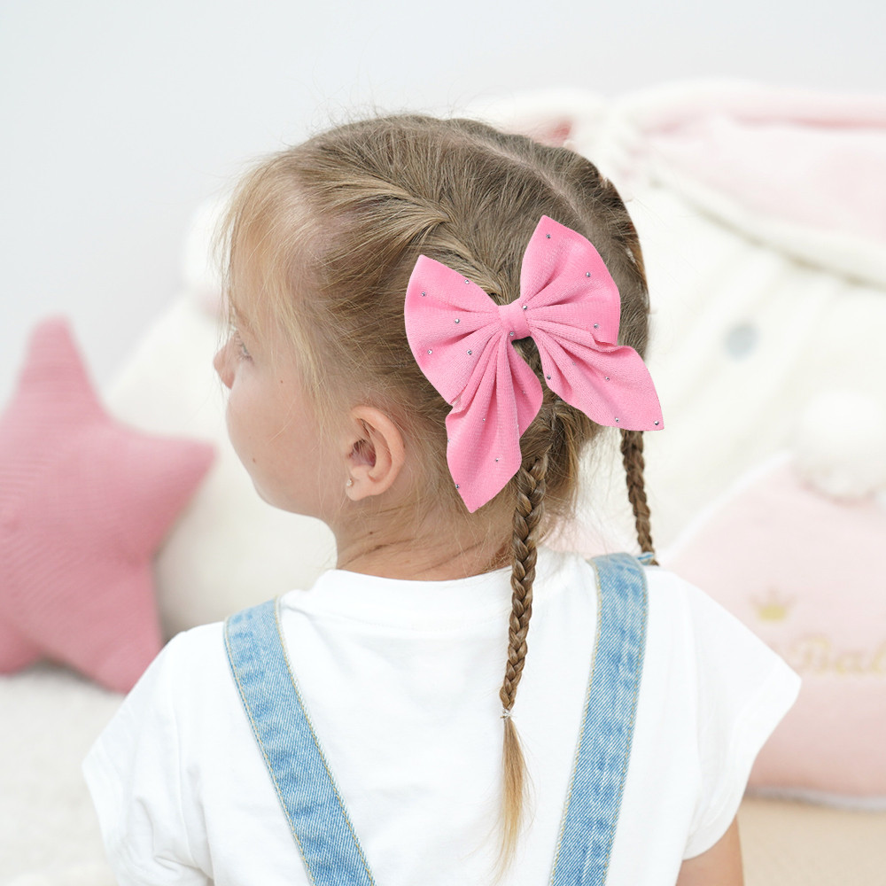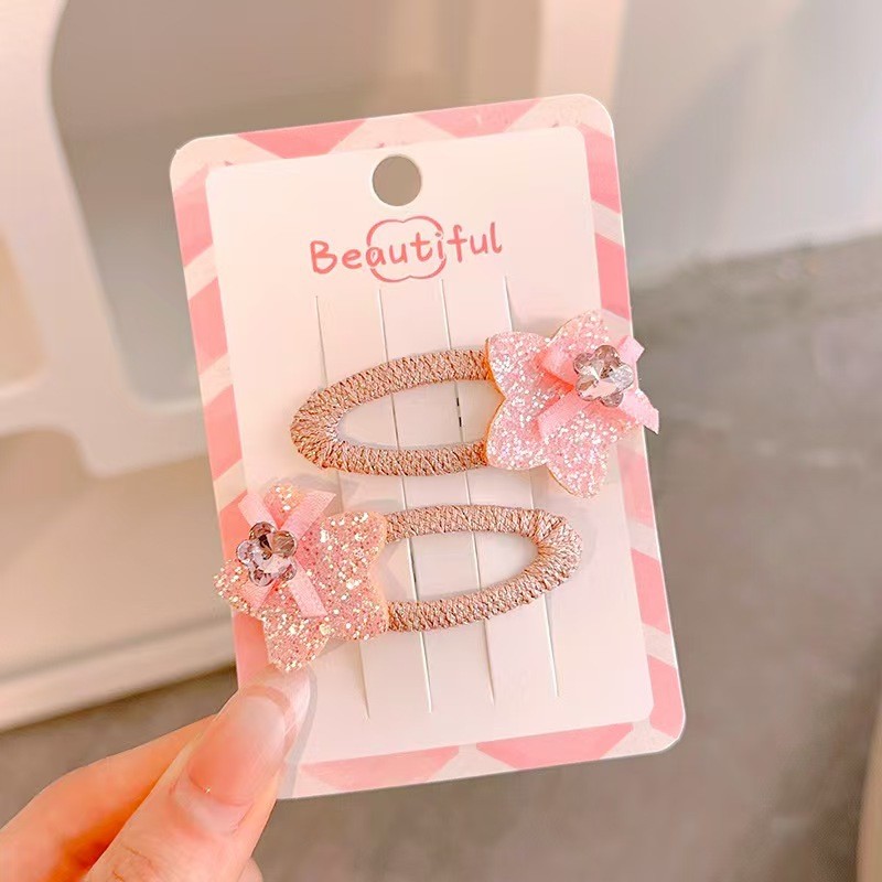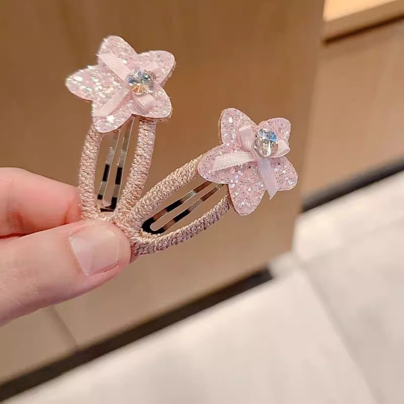 เด็กสีชมพูกระพริบเพชรประดับด้วยเลื่อมดาวกิ๊บBBคลิป
