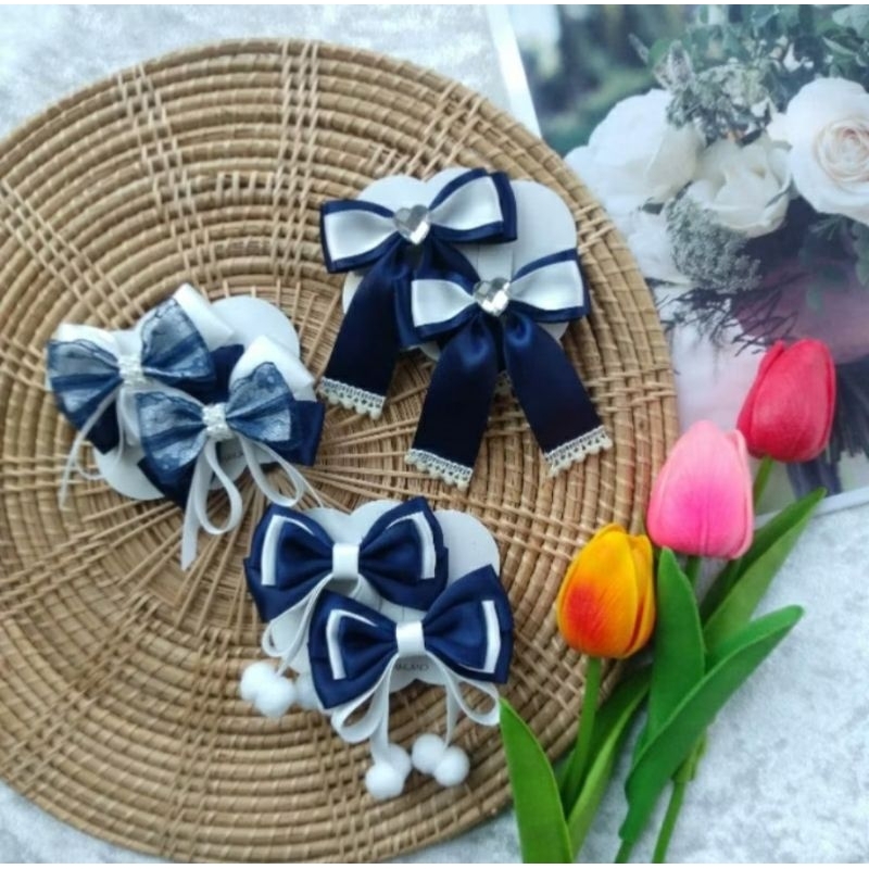 แฟชั่นผ้าผมโบว์กิ๊บติดผมสําหรับผู้หญิงสาวริบบิ้นสีดําสีขาวโบว์ด้านบนคลิปผมหางม้ากิ๊บอุปกรณ์ผมหญิง