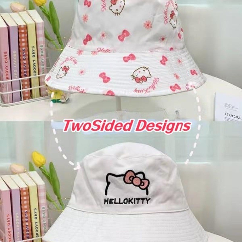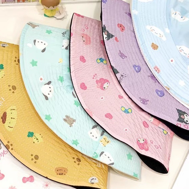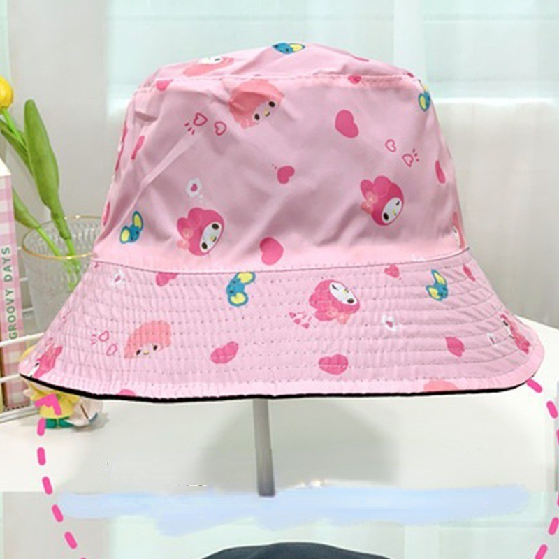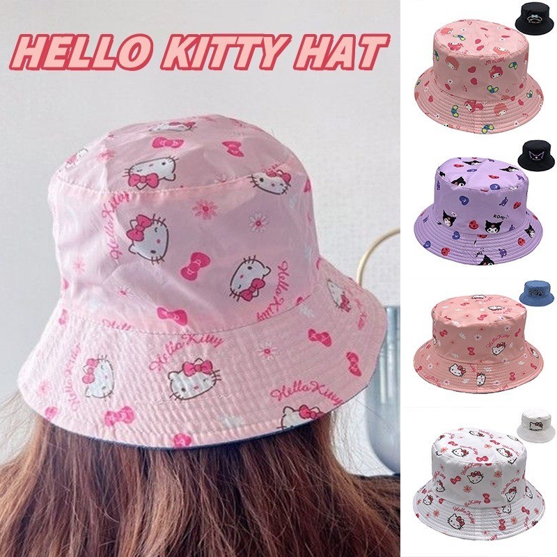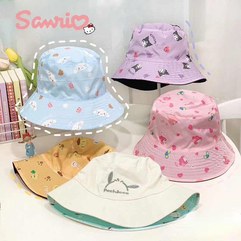 หมวกสองด้าน Kawaii อะนิเมะ Kuromi น่ารักการ์ตูน Girly Heart Bucket หมวกสําหรับเด็กผู้หญิง