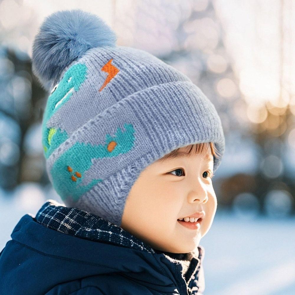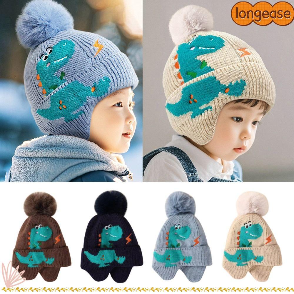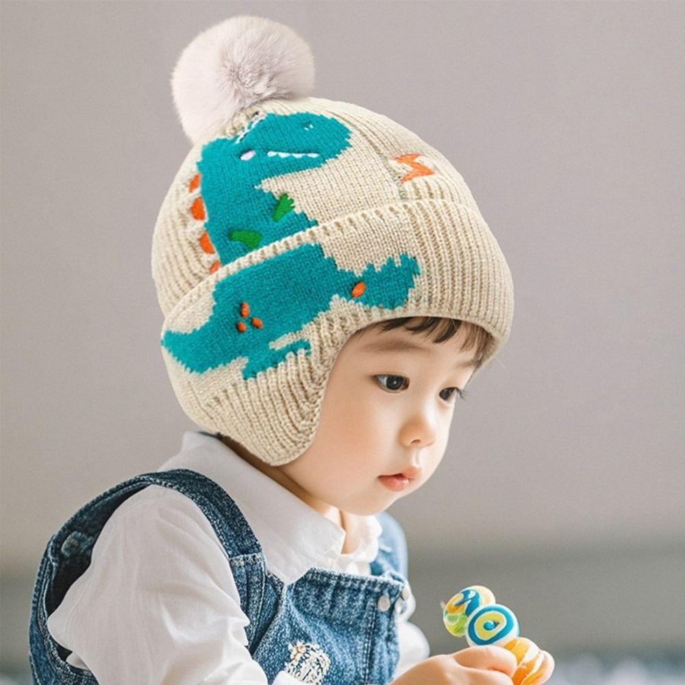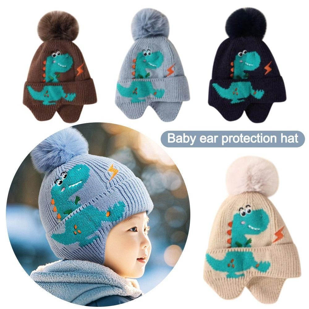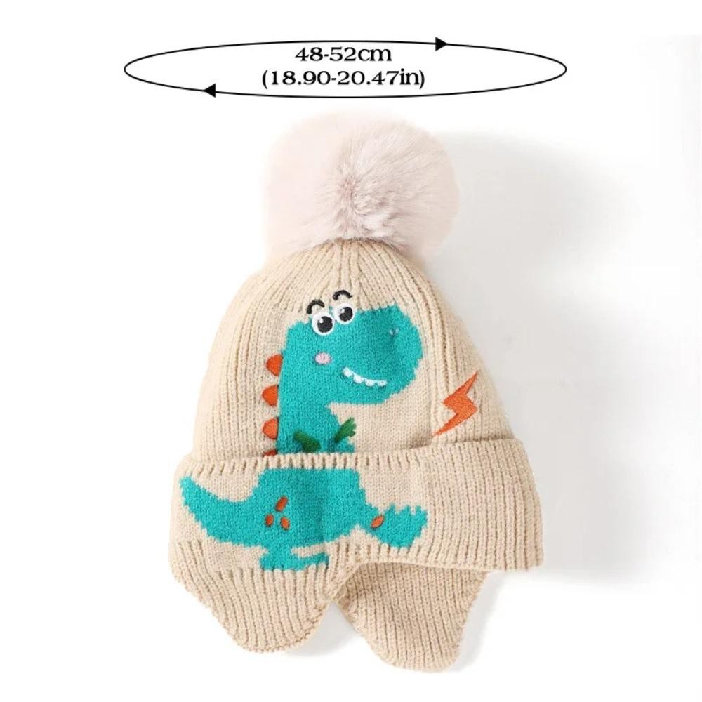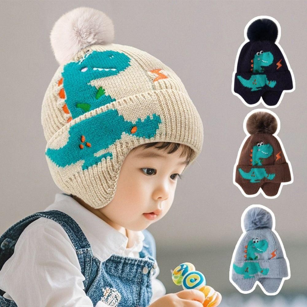 หมวกปิดหูถักสำหรับเด็กหญิงวัย 2-8 ปี ออกแบบเป็นการ์ตูนไดโนเสาร์ ให้อบอุ่นในอากาศหนาว