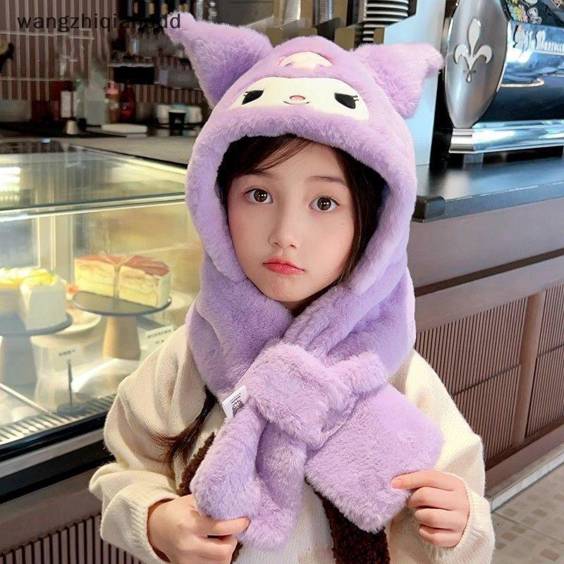 หมวกพร้อมผ้าพันคอสำหรับเด็ก แบบนุ่มๆ สไตล์คูโรมิ ป้องกันลมหนาวได้ดี