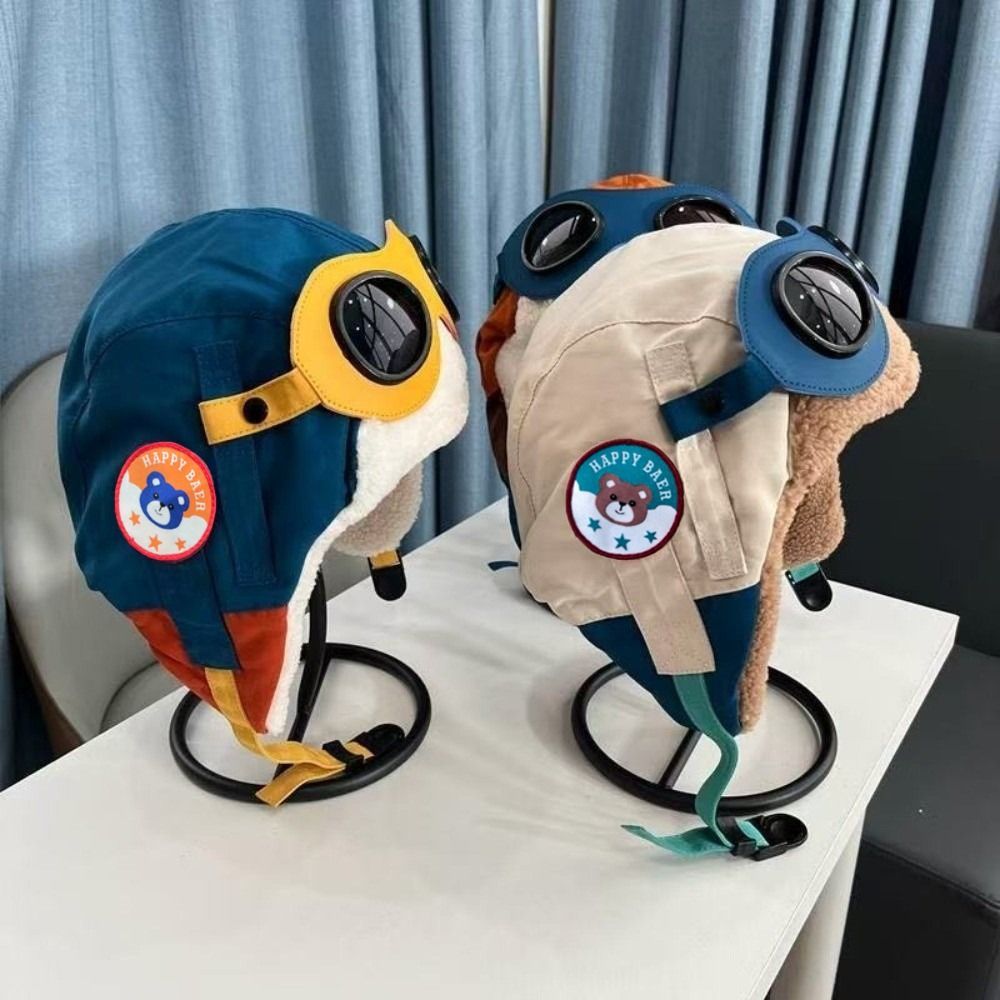 หมวกป้องกันลมสำหรับหูแบบนักบิน, สไตล์การ์ตูนน่ารัก, หมวกหนานุ่ม เหมาะสำหรับใส่พร้อมแว่นตา และให้ความอบอุ่นแก่เด็ก