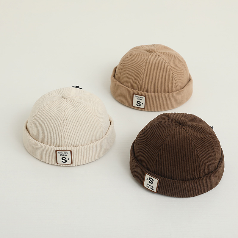 หมวกผ้าลูกฟูก พิมพ์ลายตัวอักษร สไตล์เกาหลี ปรับได้ ให้ความอบอุ่น เหมาะกับฤดูหนาว สําหรับเด็กวัยหัดเดิน