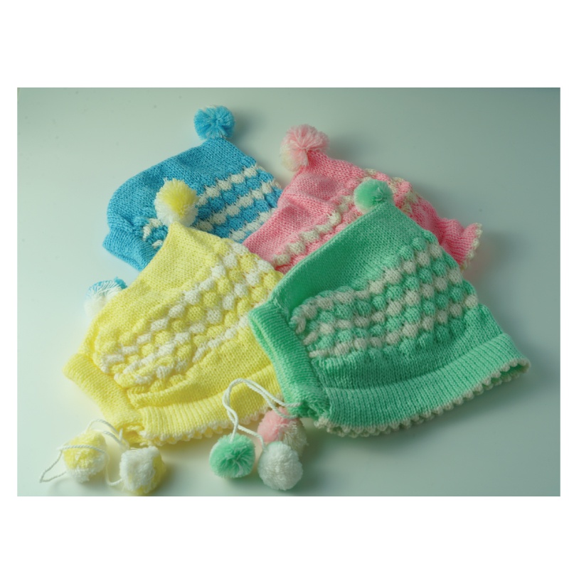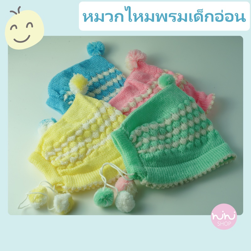 หมวกไหมพรมเด็กอ่อน ทอลายน้อยหน่า3จุก