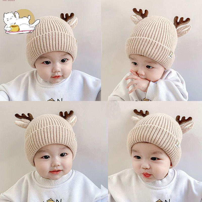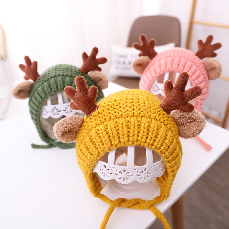 หมวกถักเด็กเด็กวัยหัดเดินหมวกฤดูหนาวน่ารักกวางเรนเดียร์เขากวางโครเชต์หมวกหมวกคริสต์มาสหมวกอบอุ่นเด็กชายและเด็กหญิงหมวกขนสัตว์เด็