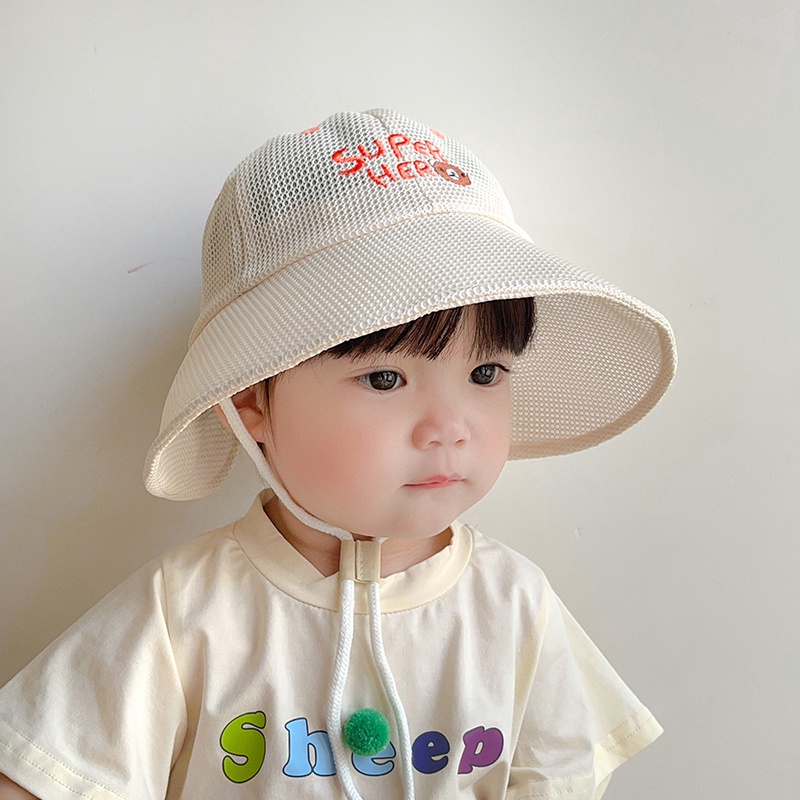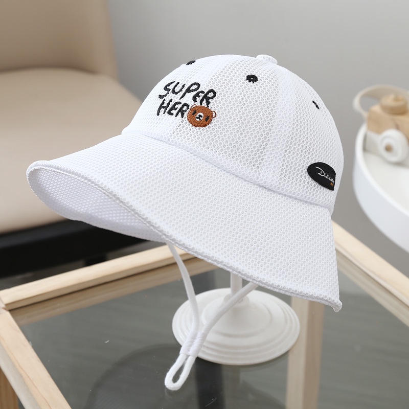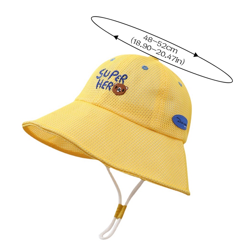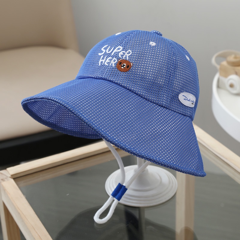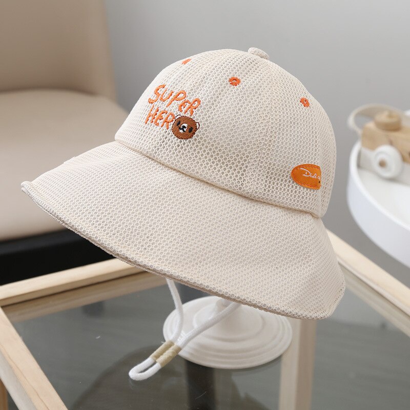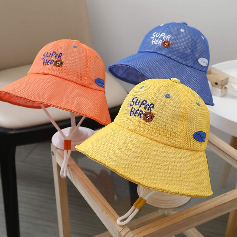 หมวกบักเก็ต ผ้าตาข่าย ลายการ์ตูนหมี กันแดด ระบายอากาศ สําหรับเด็กผู้ชาย ผู้หญิง 2-5 ปี